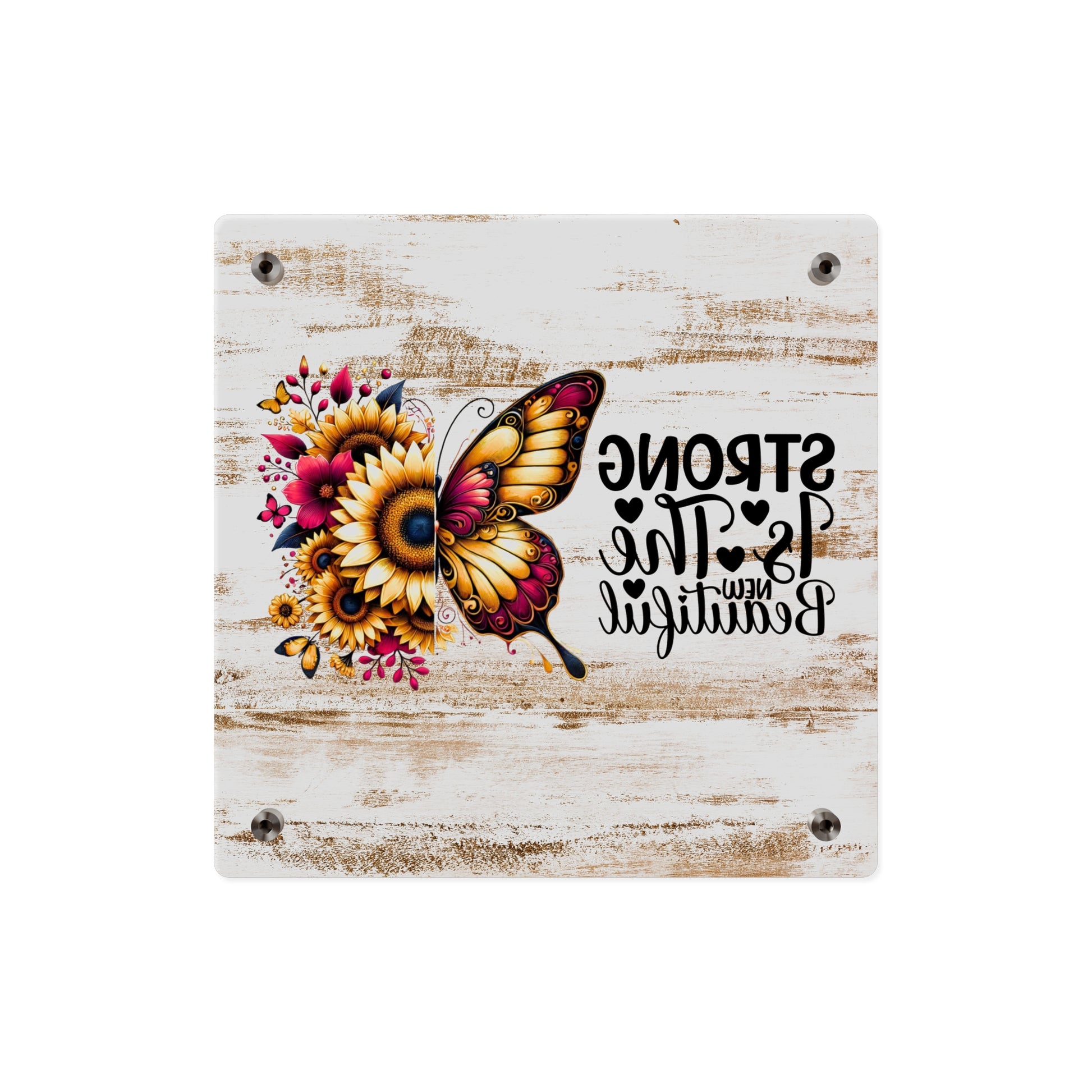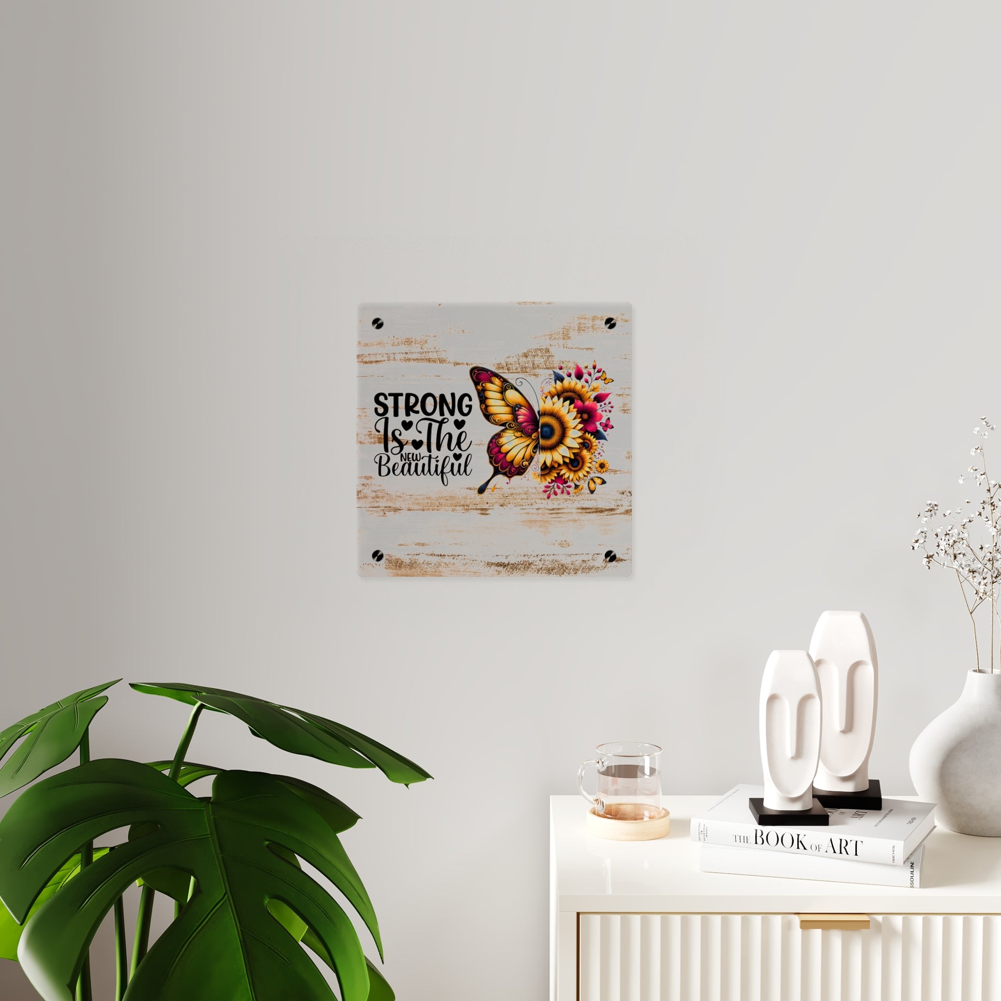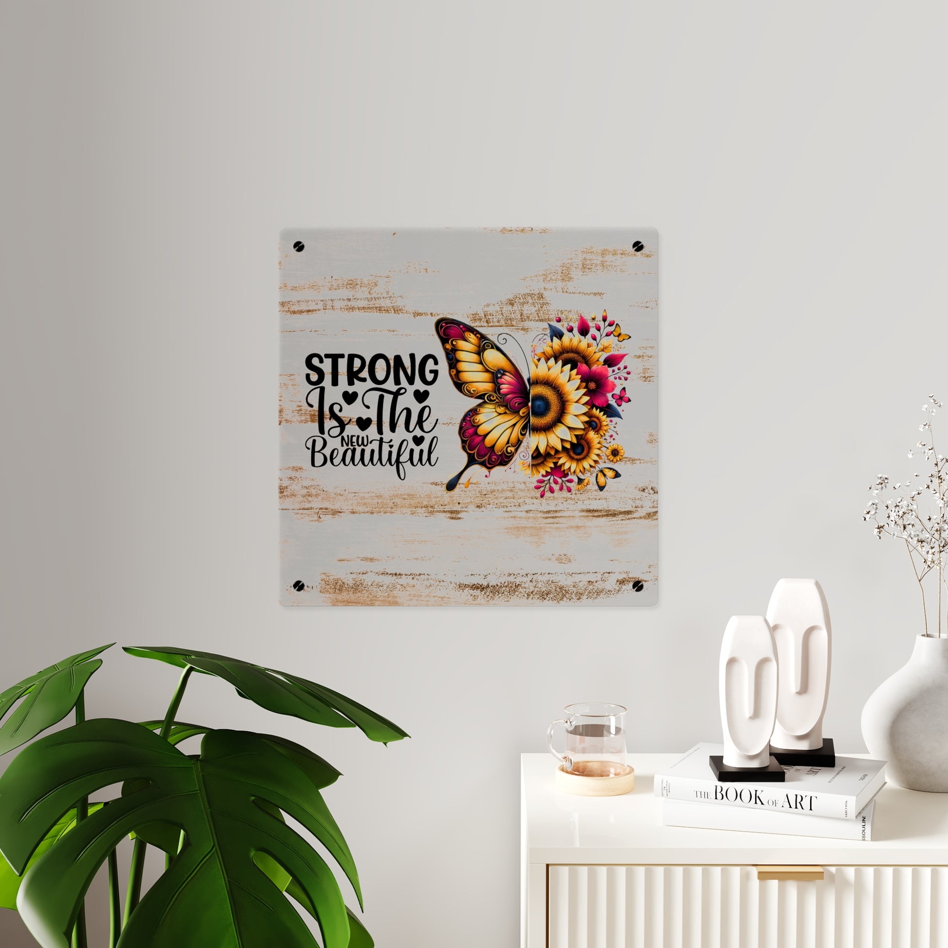 Acrylic Wall Art Panel - Inspirational Quote "Strong is the New Beautiful" Wall Decor