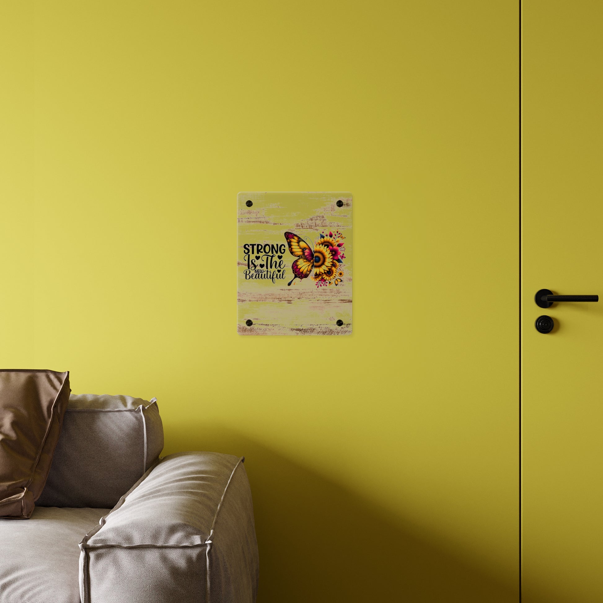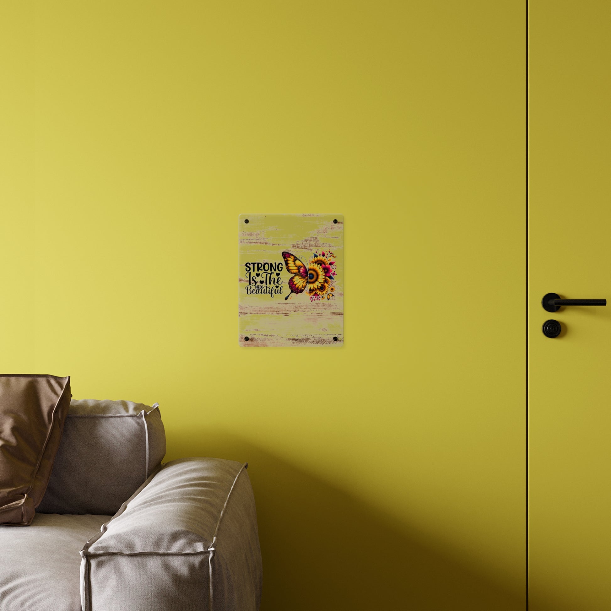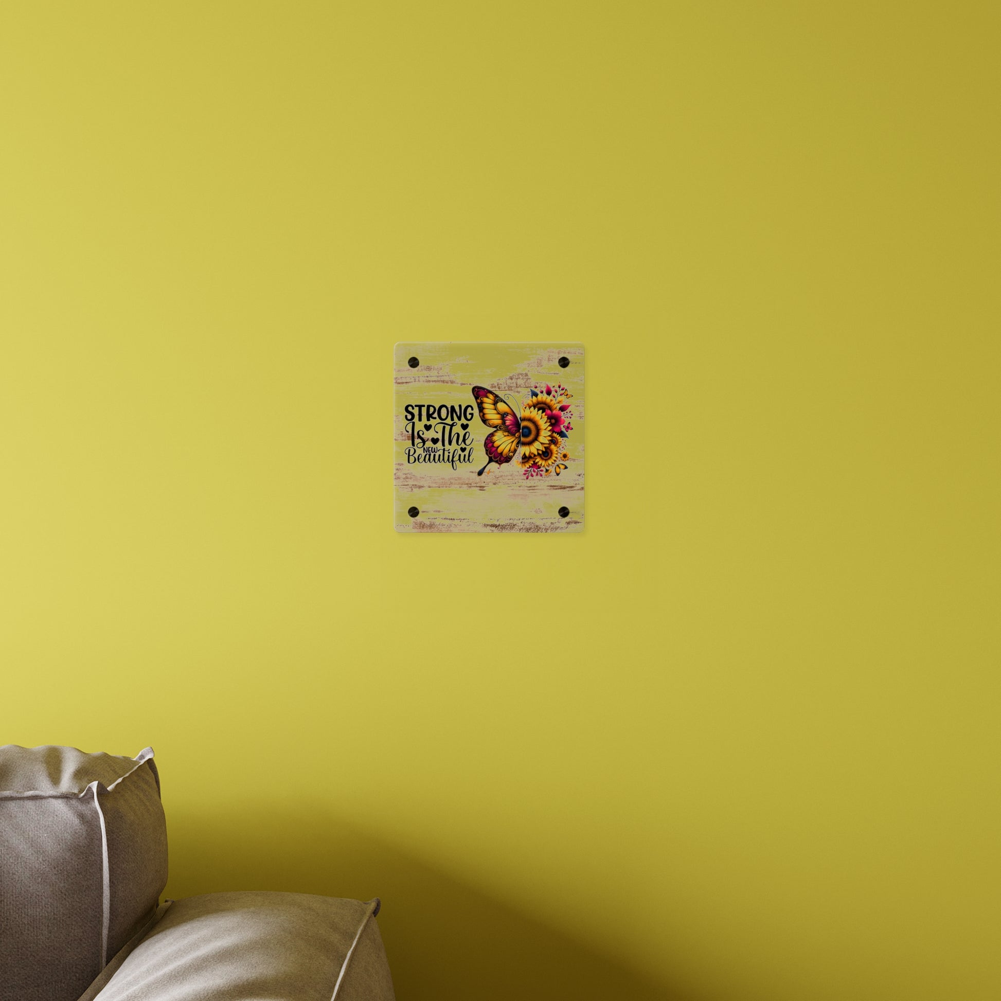 Acrylic Wall Art Panel - Inspirational Quote "Strong is the New Beautiful" Wall Decor