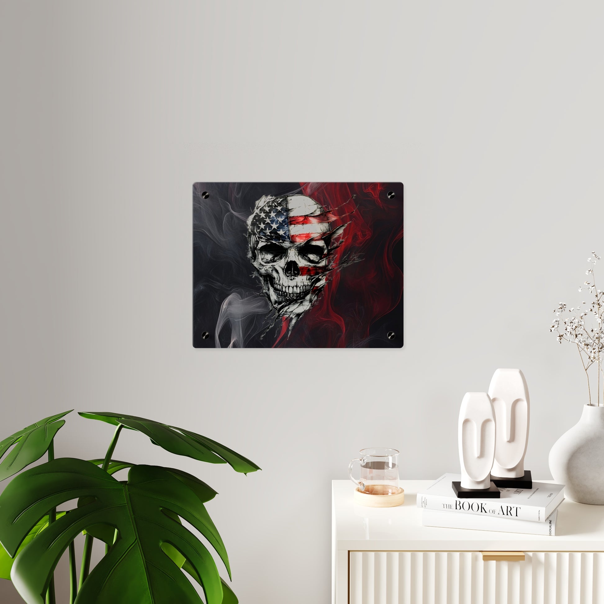 American Skull Acrylic Wall Art Panels - Edgy Decor for Rebels & Patriotic Souls