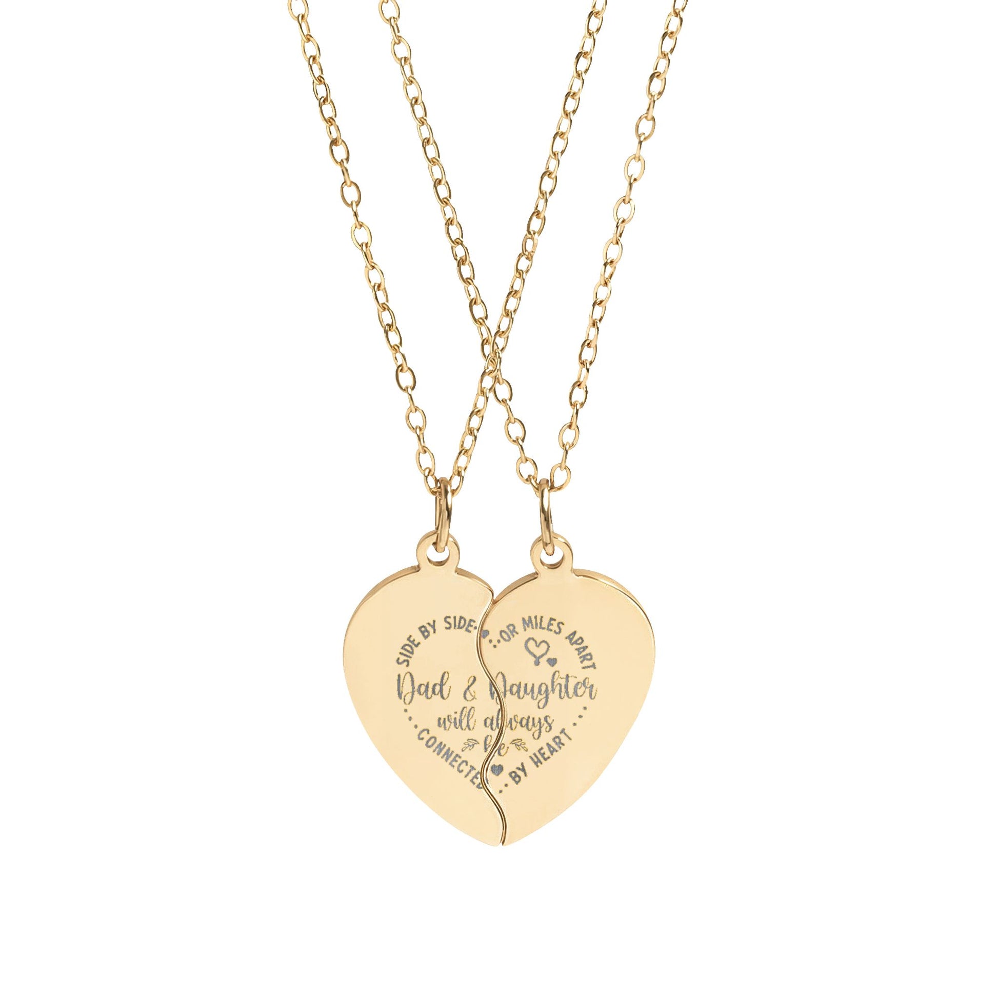 Dad & Daughter Heart Split Pendant Necklace Set | Engravable | 18K Gold & Stainless Steel