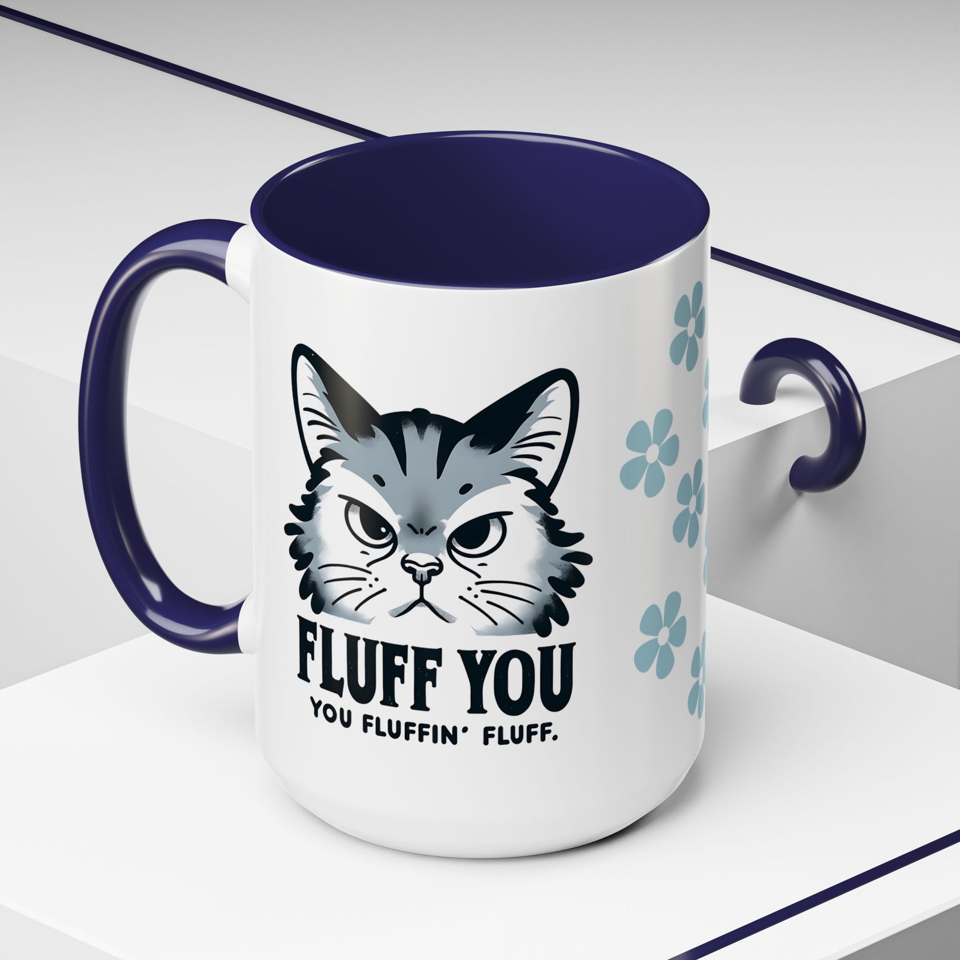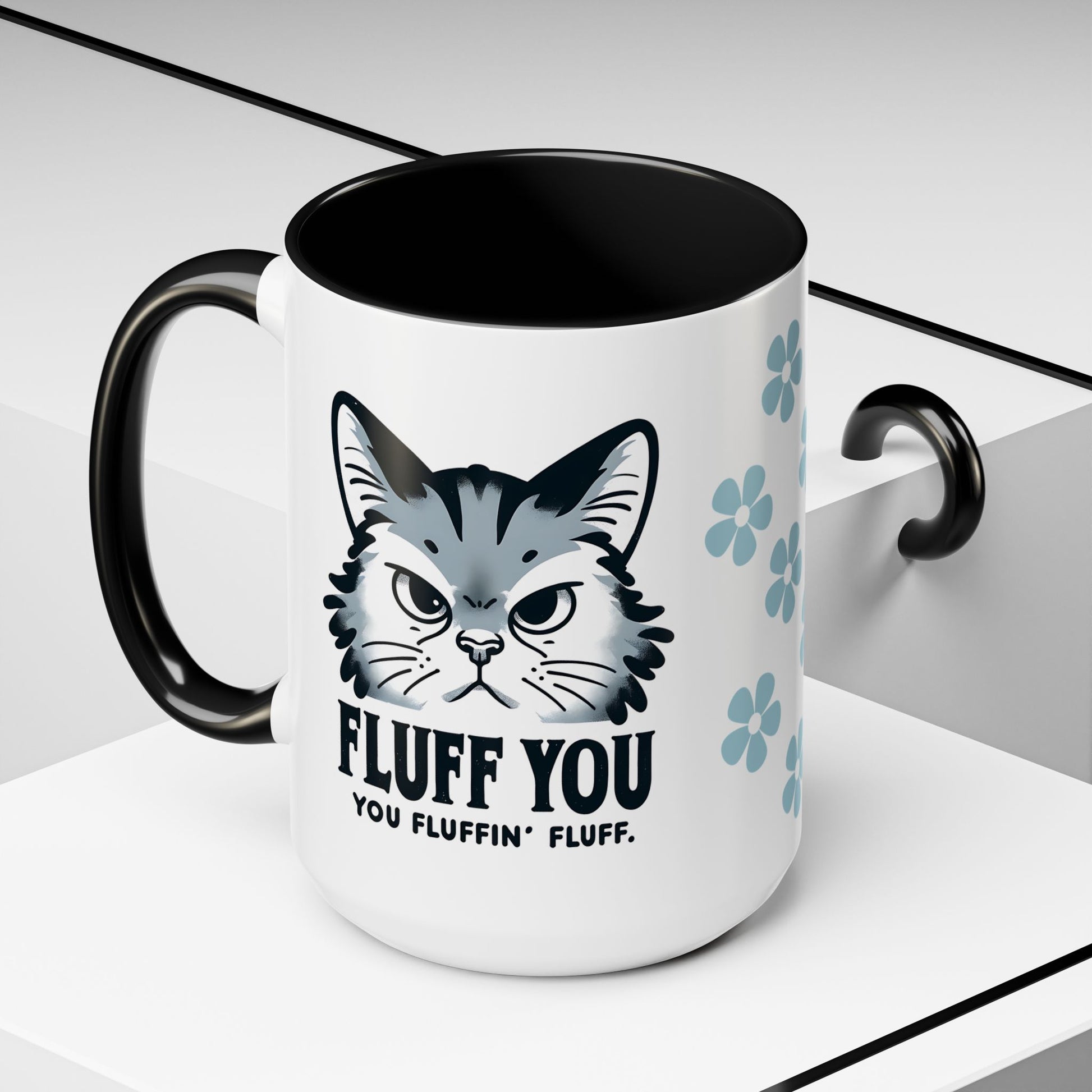 This humorous Cat Design coffee mug features a cat with a funny facial expression and a funny cat saying. Perfect for cat lovers who enjoy a good laugh with their morning coffee, hot chocolate or tea. Ideal for gifting during birthdays, holidays, or just to bring a smile to someone's face. Product features - 11oz or 15oz sizes available - Safe for microwave and dishwasher use - Vibrant colors that don't fade - White ceramic with colored interior and handle - Lead and BPA-free - Ceramic mug is breakable Care instructions - Clean in dishwasher or wash by hand with warm water and dish soap