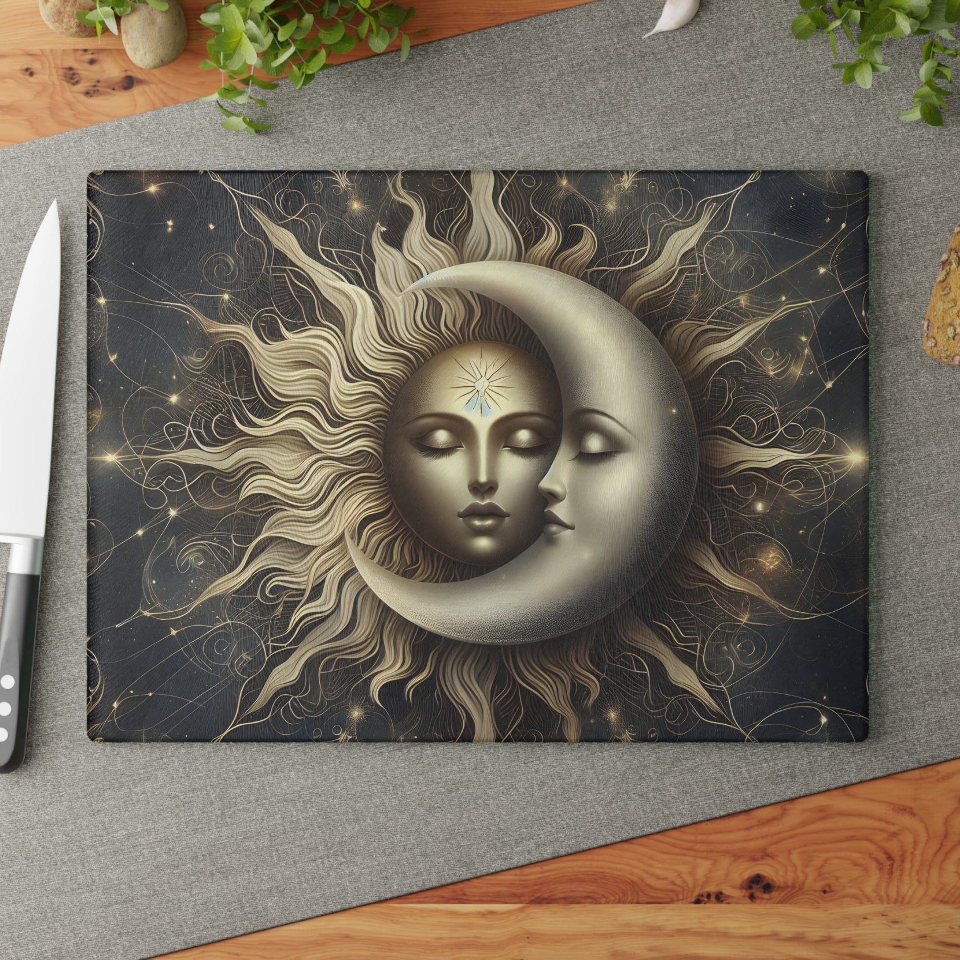 Celestial Sun and Moon Glass Cutting Board