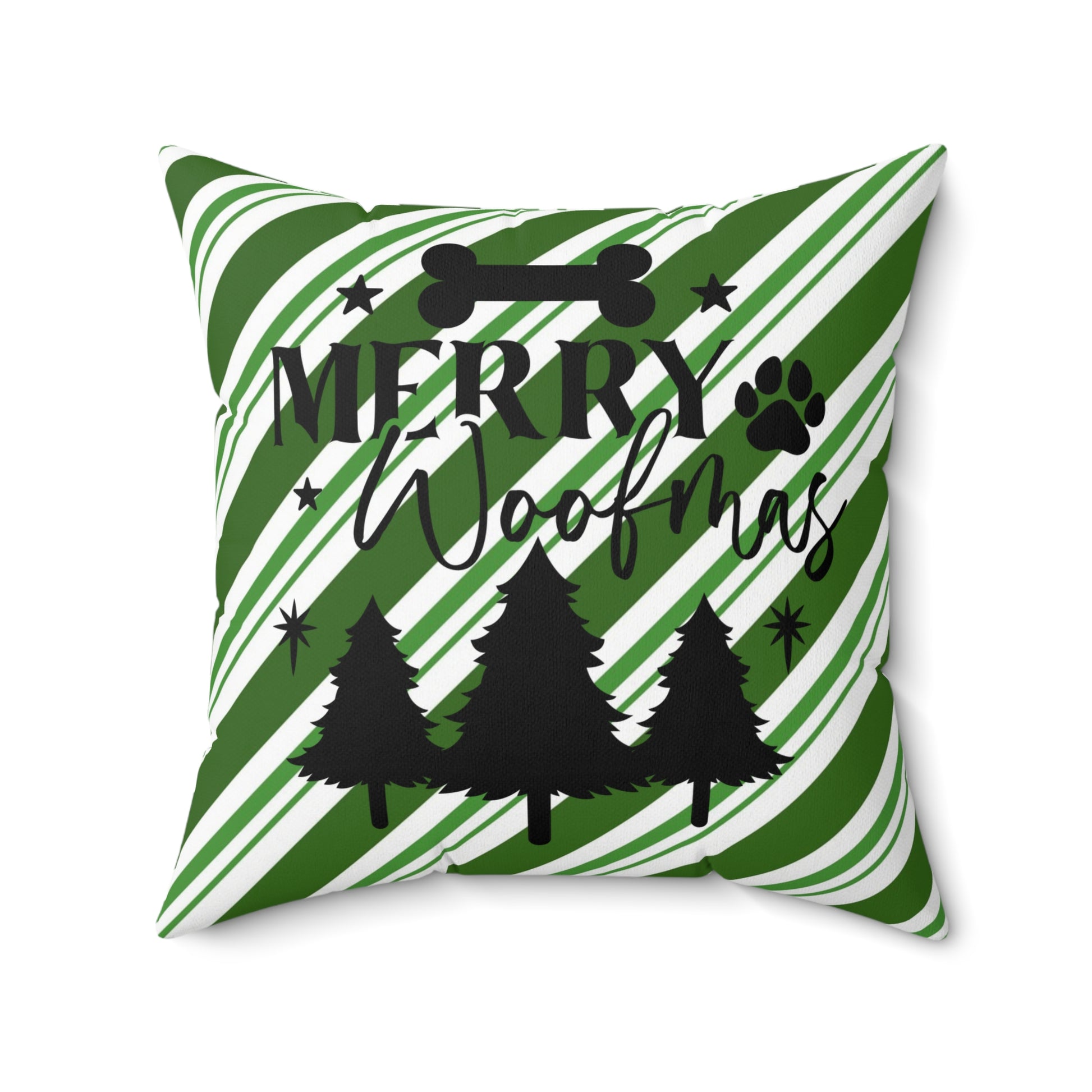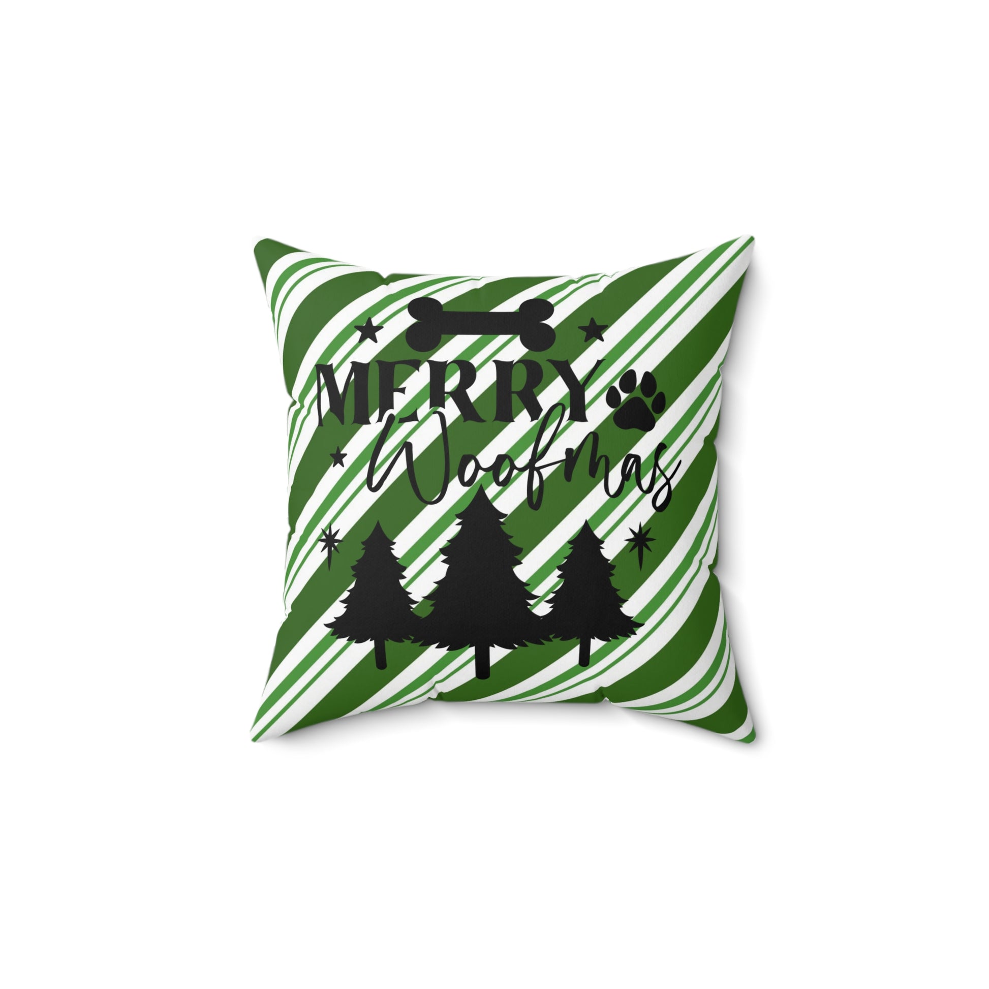 Christmas Theme Spun Polyester Square Pillow, Dog Lover's Holiday Decor for Home or Office, Dog Lovers Holiday Accent for Any Room