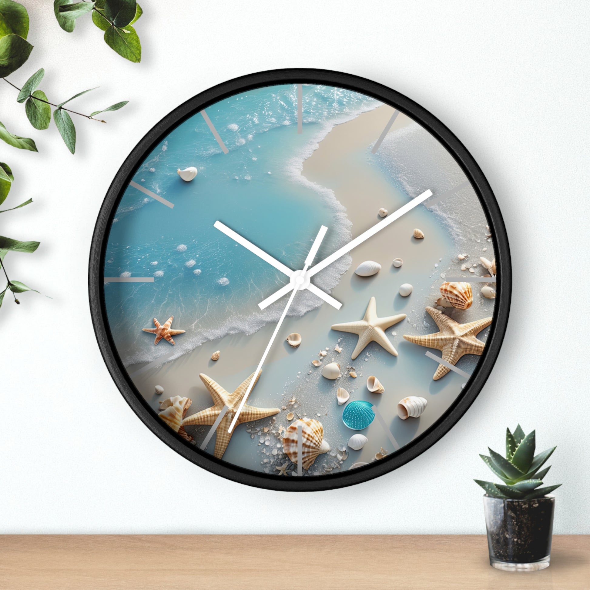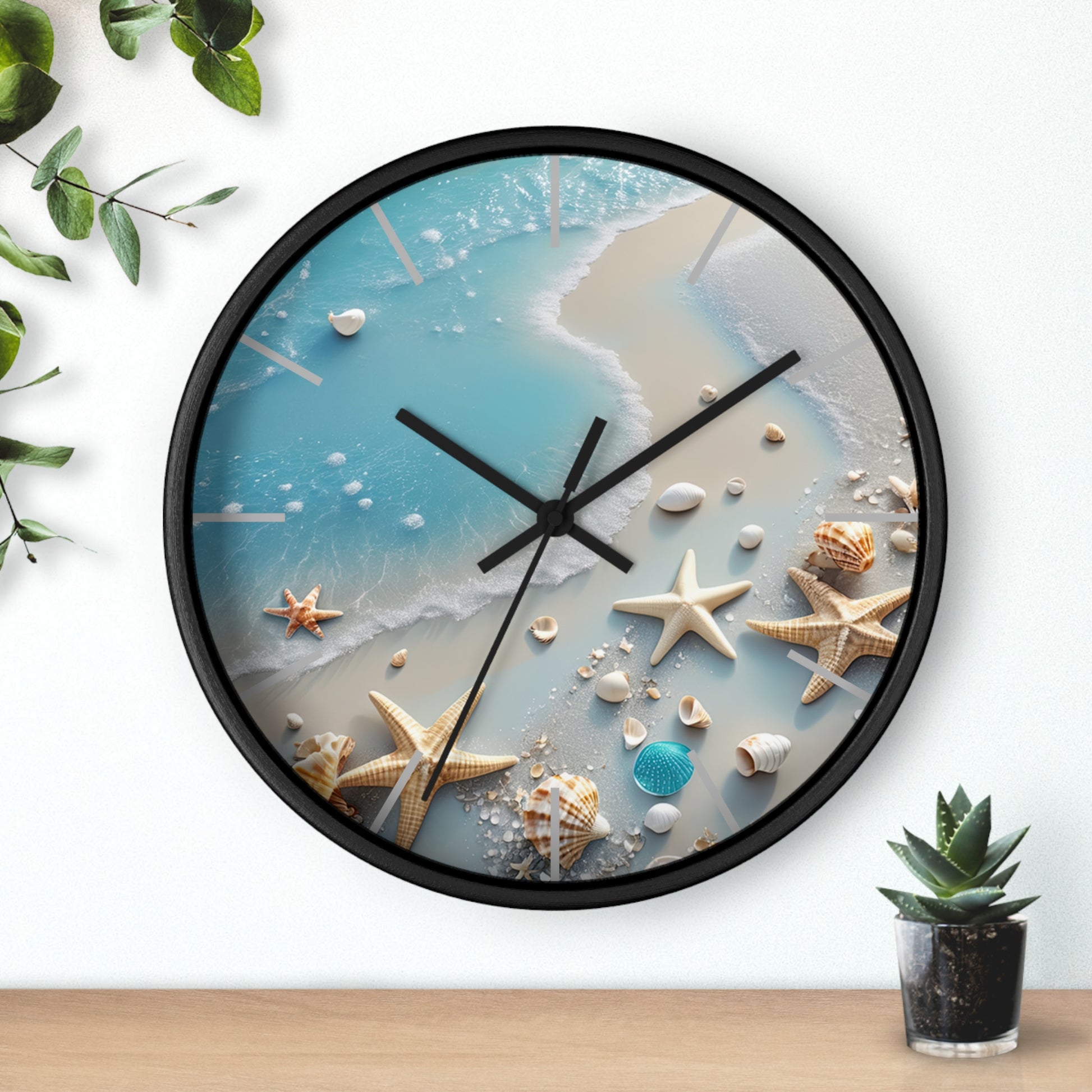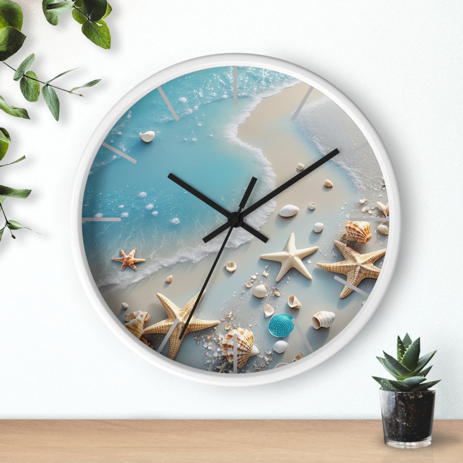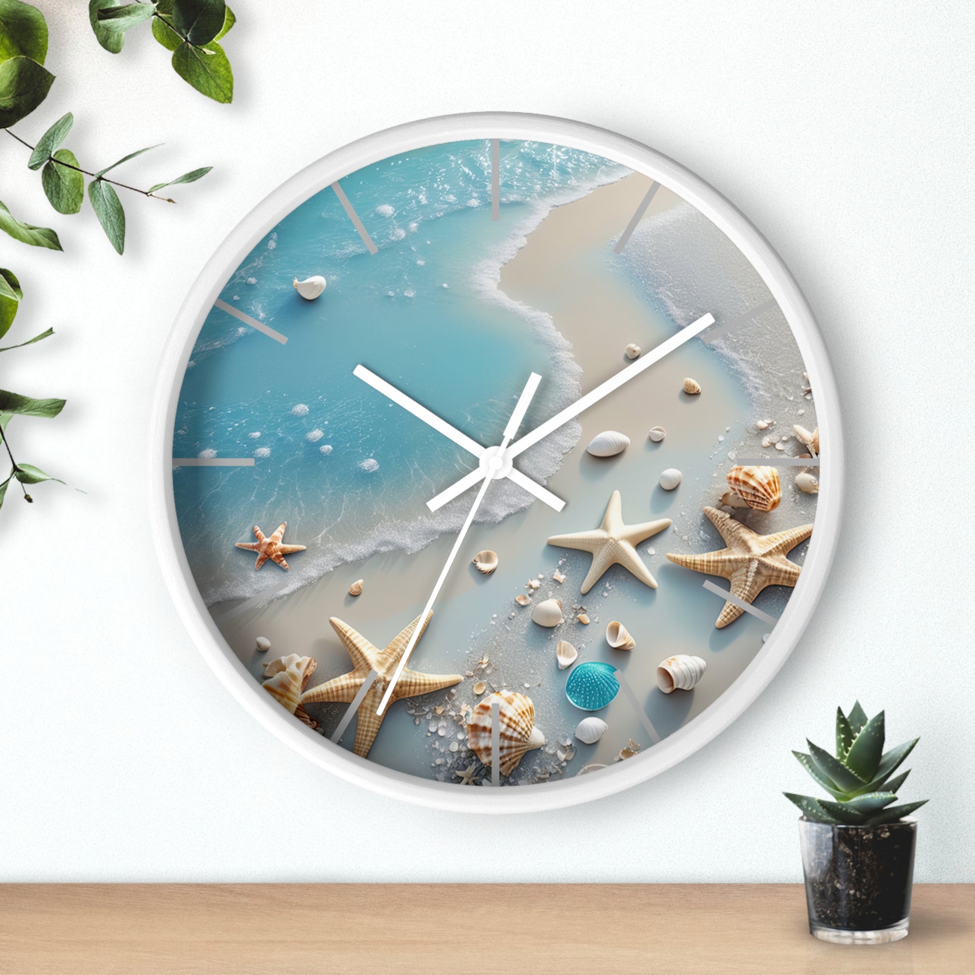 Coastal Serenity Wall Clock - Beach Inspired Home Decor with Seashells