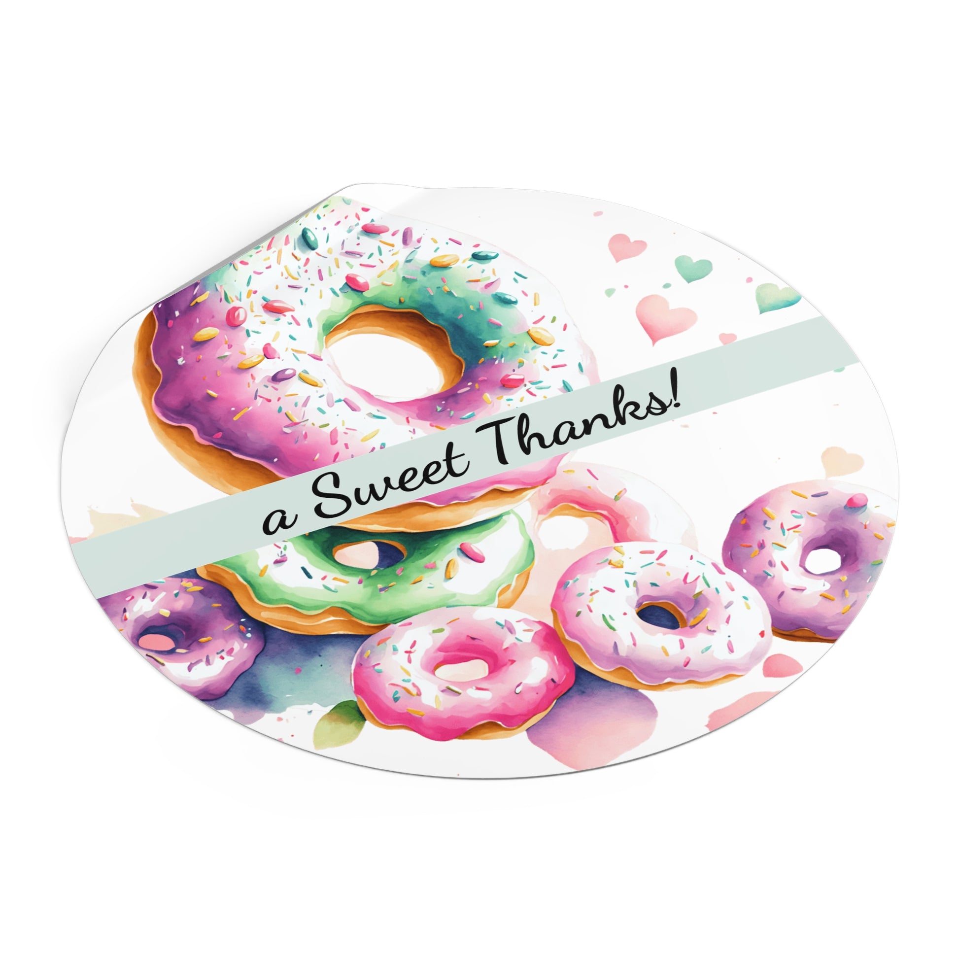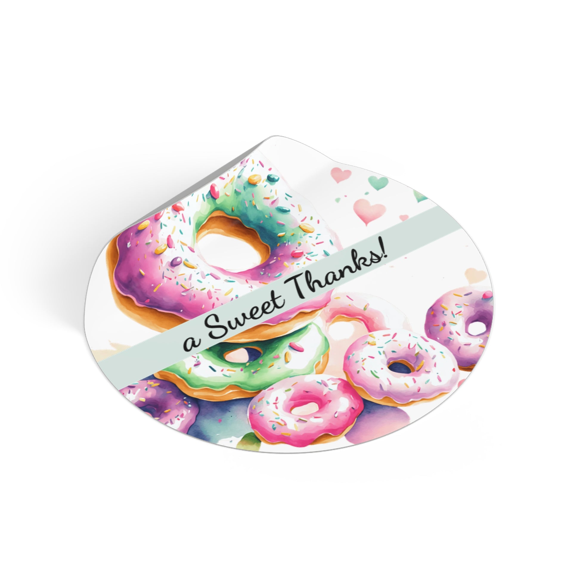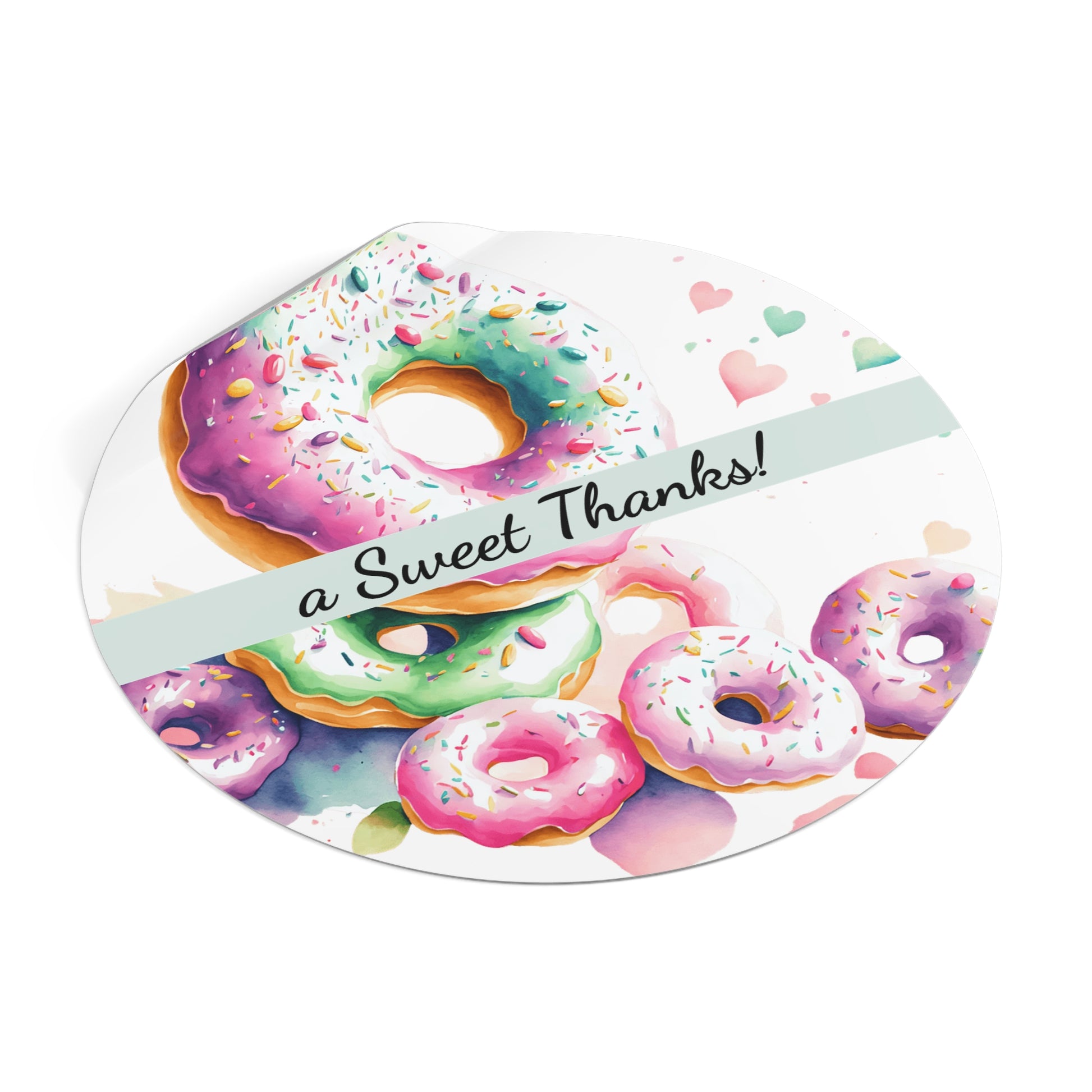 Custom Donut Round Vinyl Stickers | Sweet Thanks, Gift Labels, Party Favors, Wedding Decor, Custom Stickers