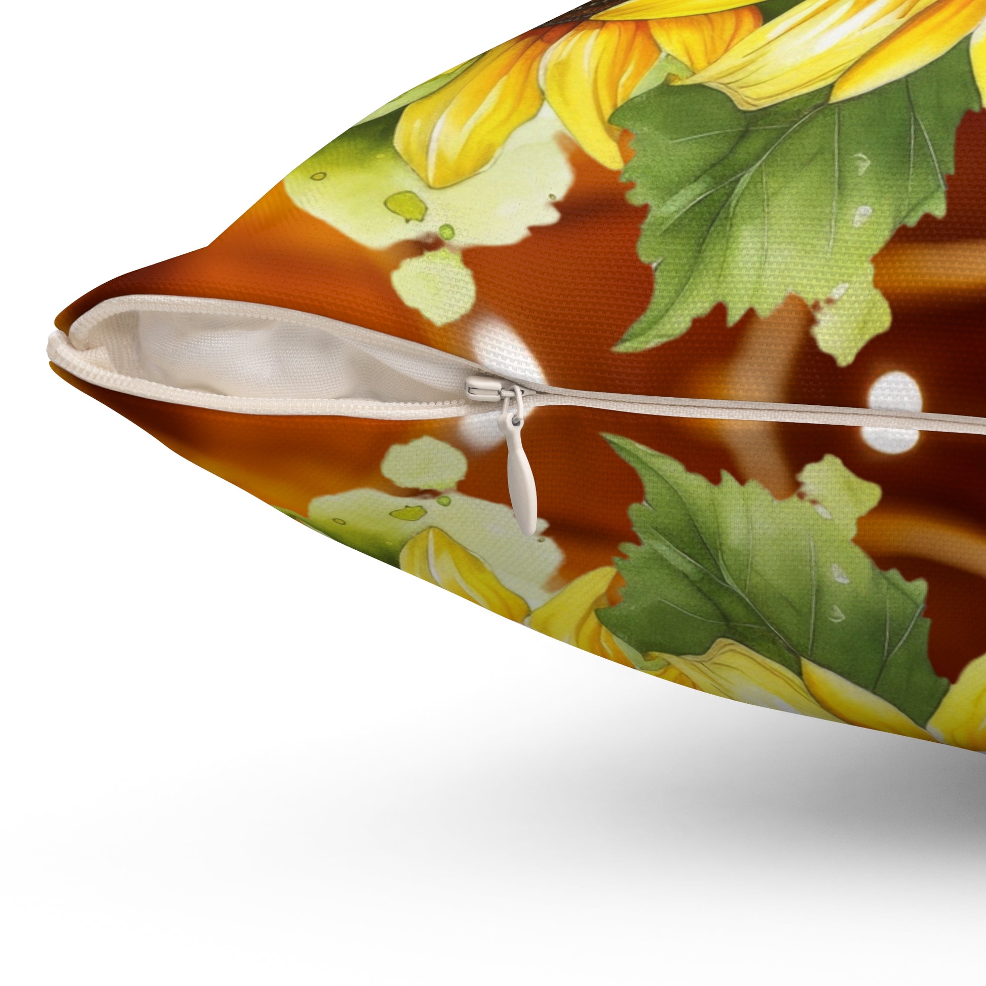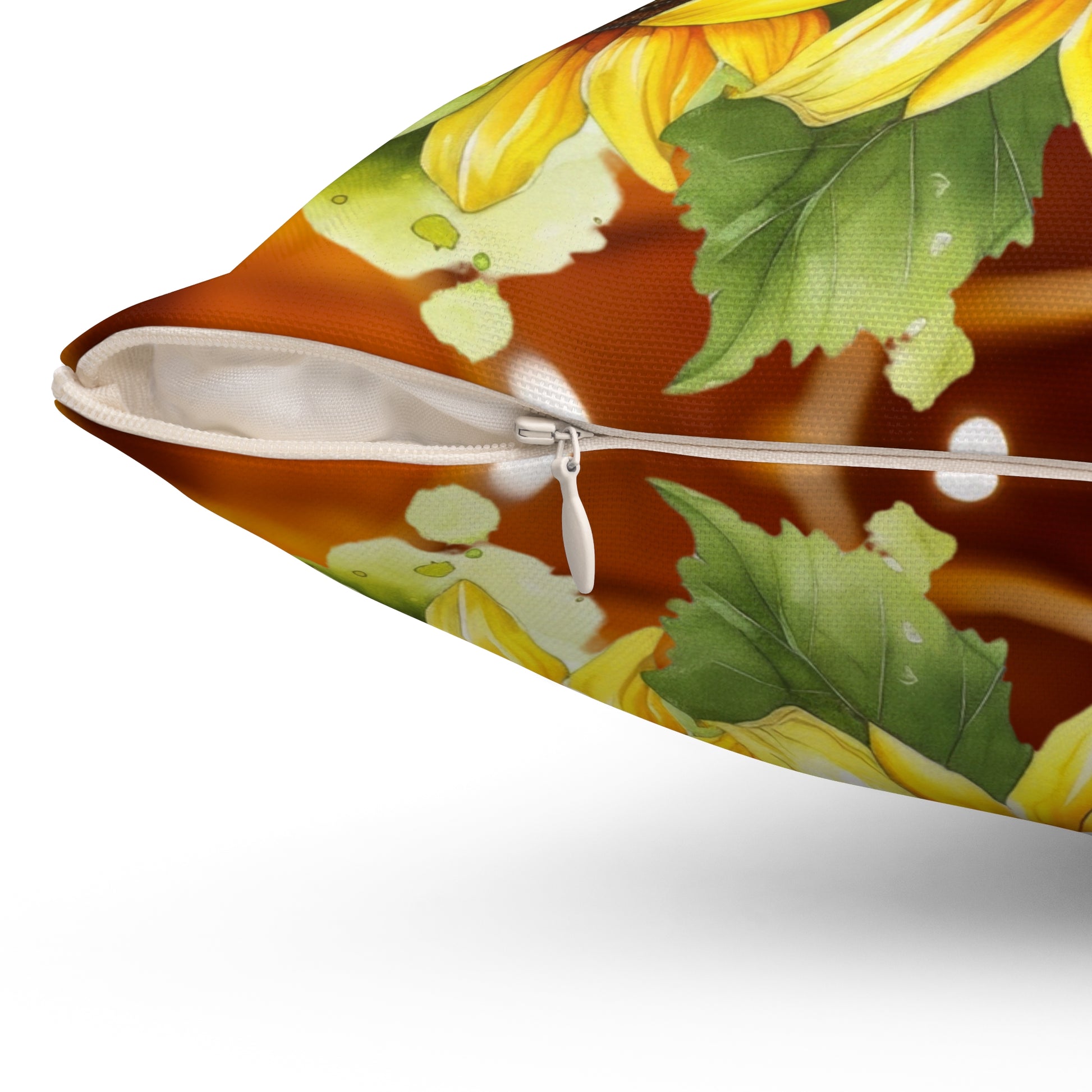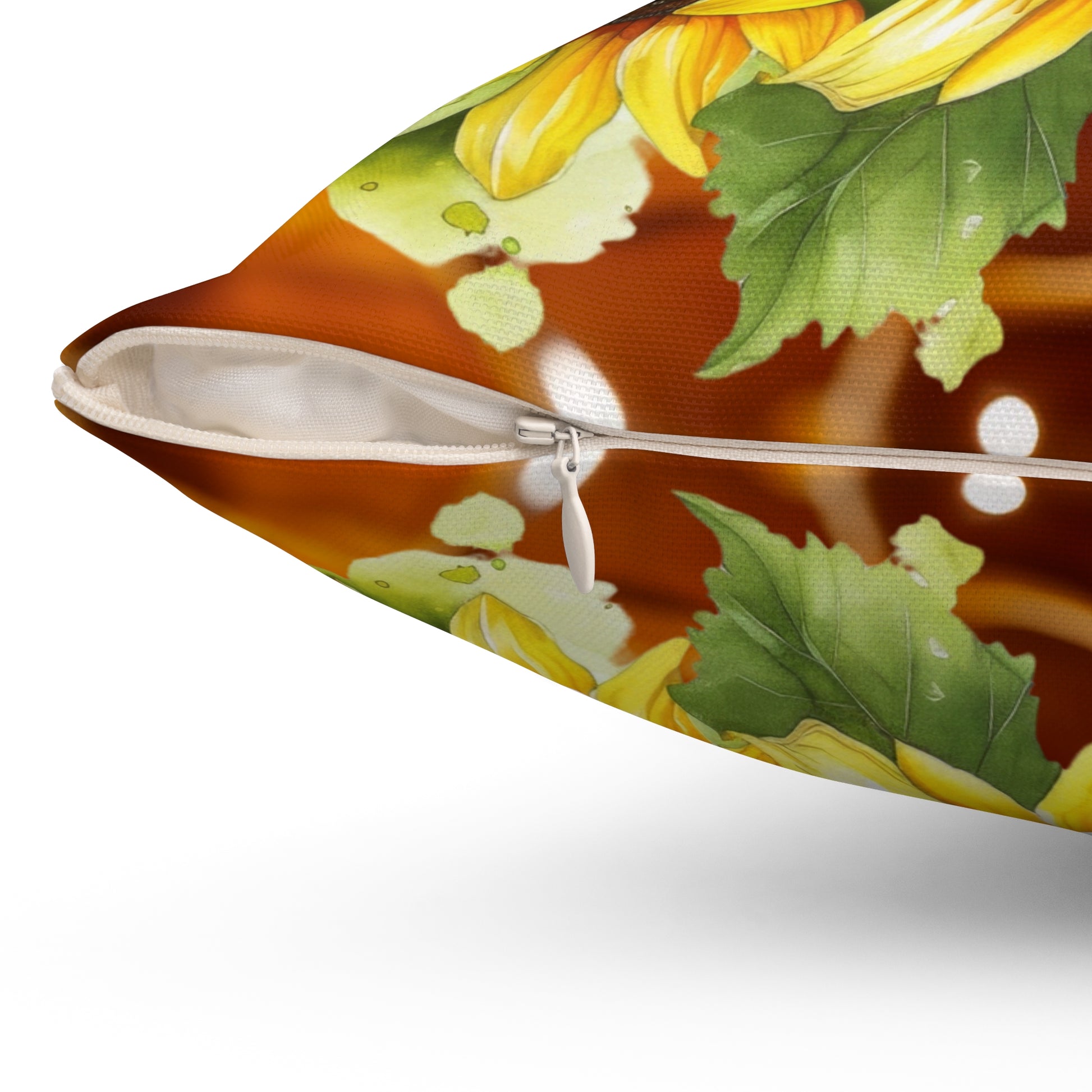 Decorative Spun Polyester Square Pillow, Honeybees and Sunflowers Accent for Any Room, Honeybees and Sunflower Lovers Home or Office Decor