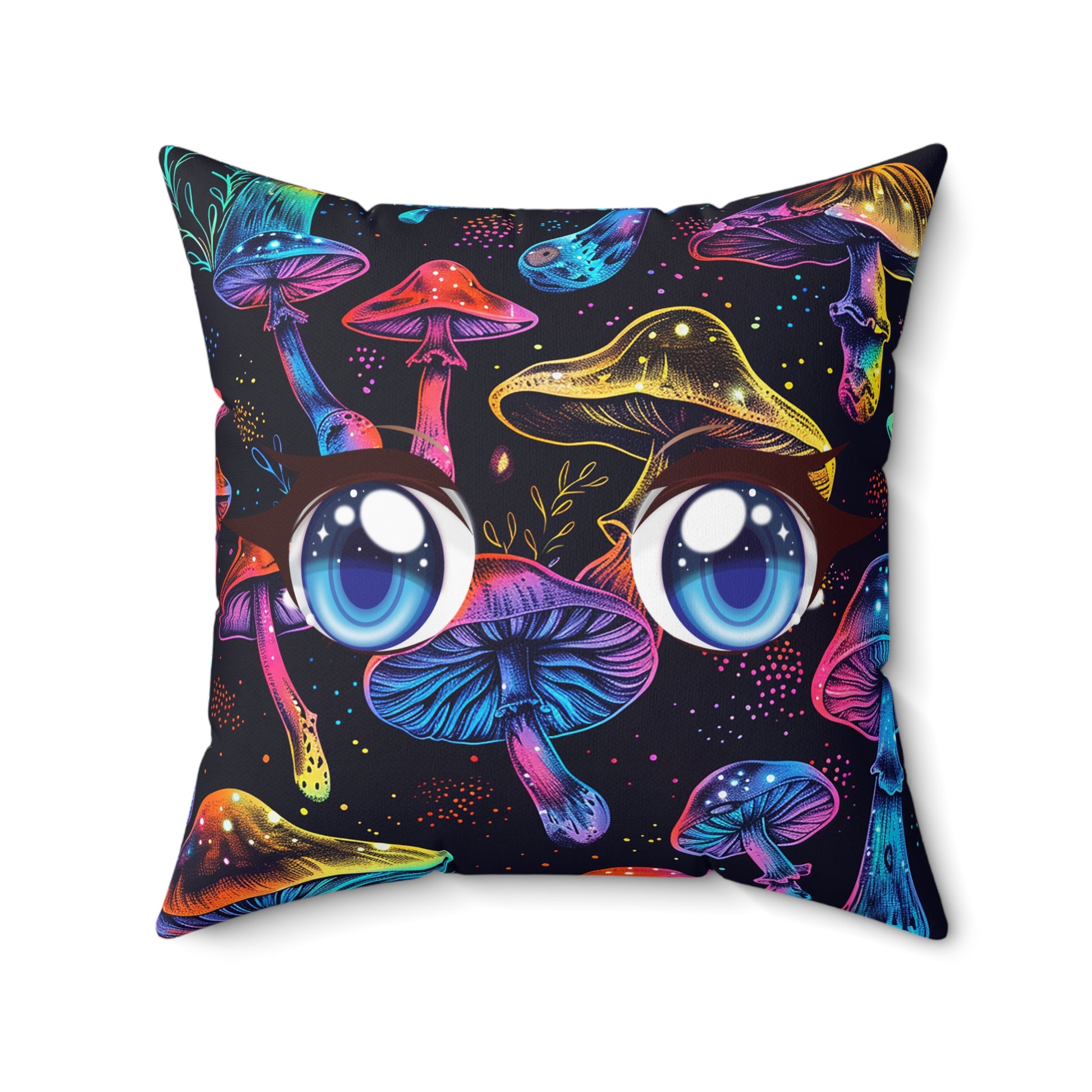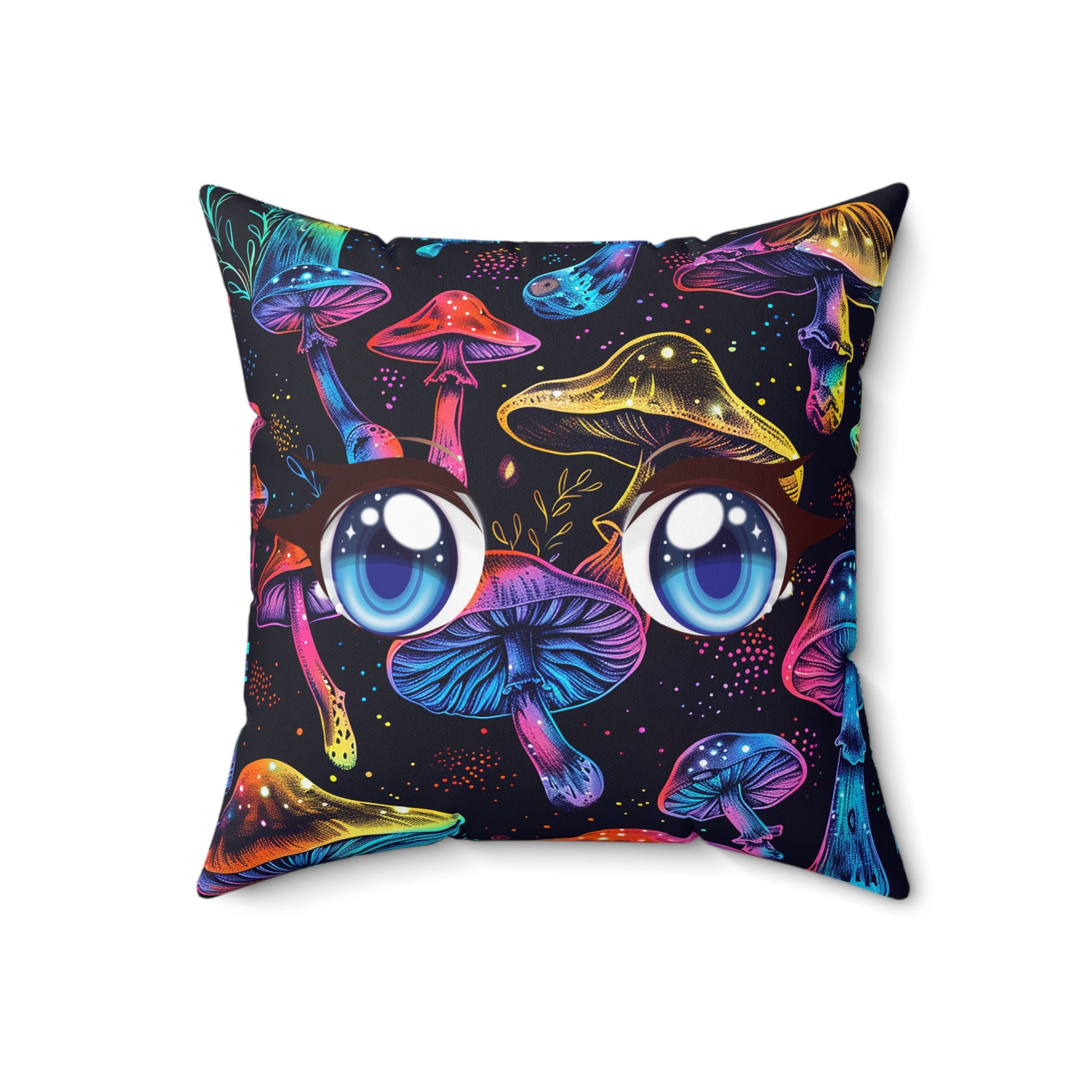 Decorative Spun Polyester Square Pillow, Stylish Mushroom Pattern with Eyes Decor for Home or Office, Gift Idea for Any Occasion for Anyone
