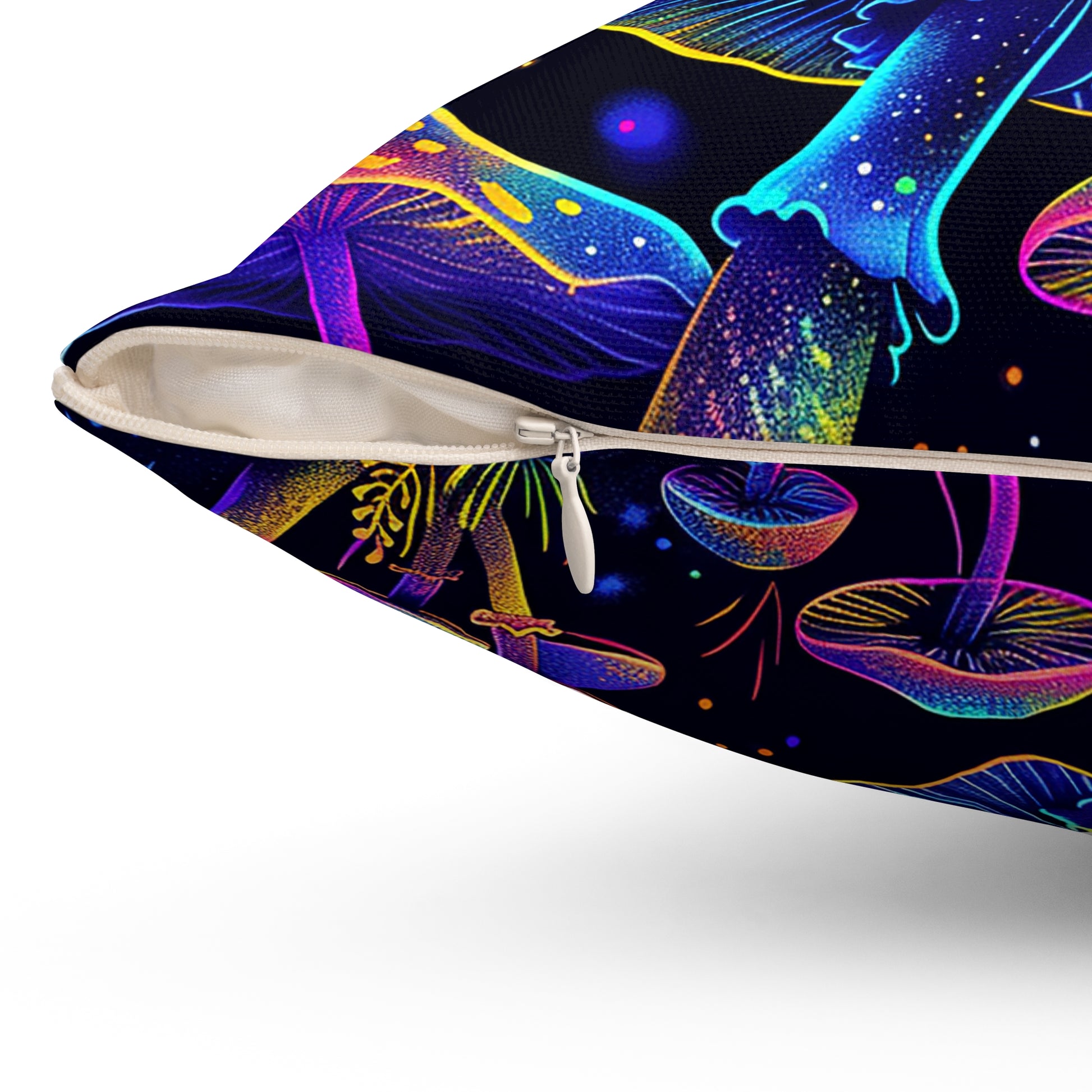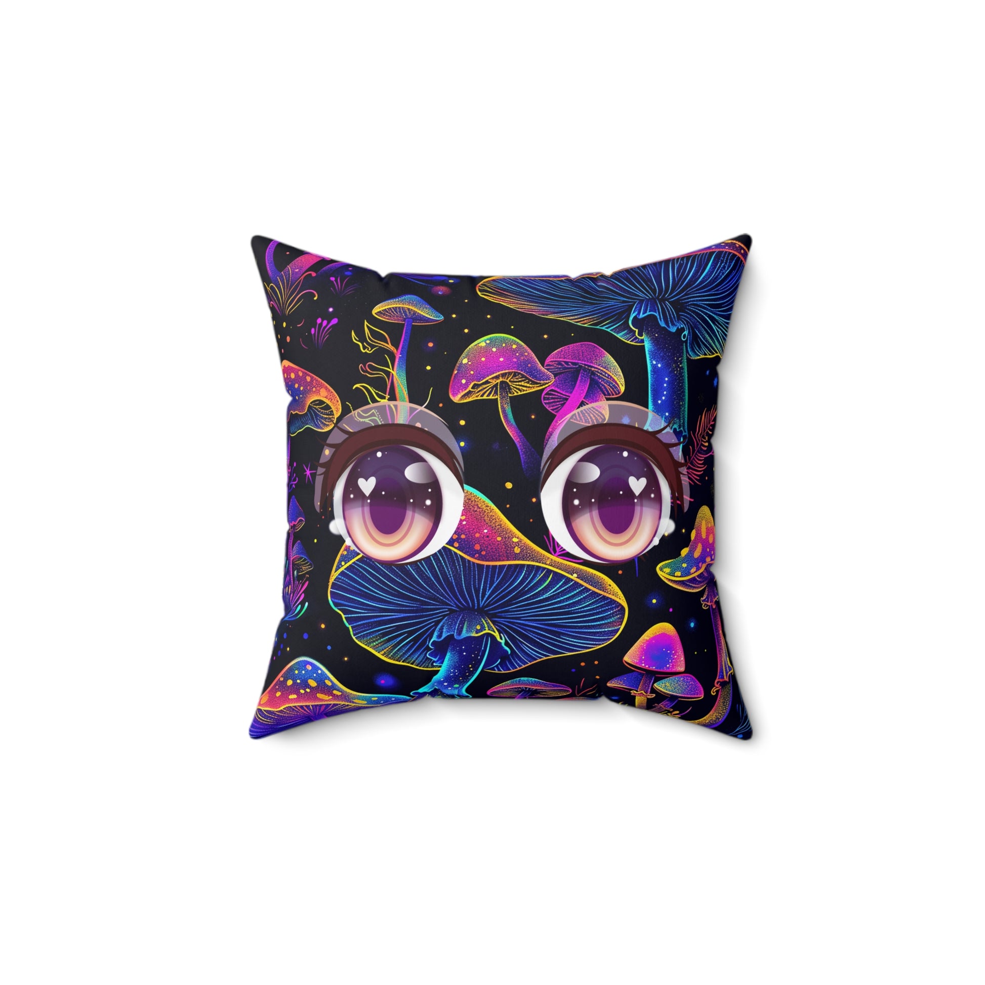 Decorative Spun Polyester Square Pillow, Stylish Mushroom Pattern with Eyes Decor for Home or Office, Great Gift Idea for Any Occasion for Anyone