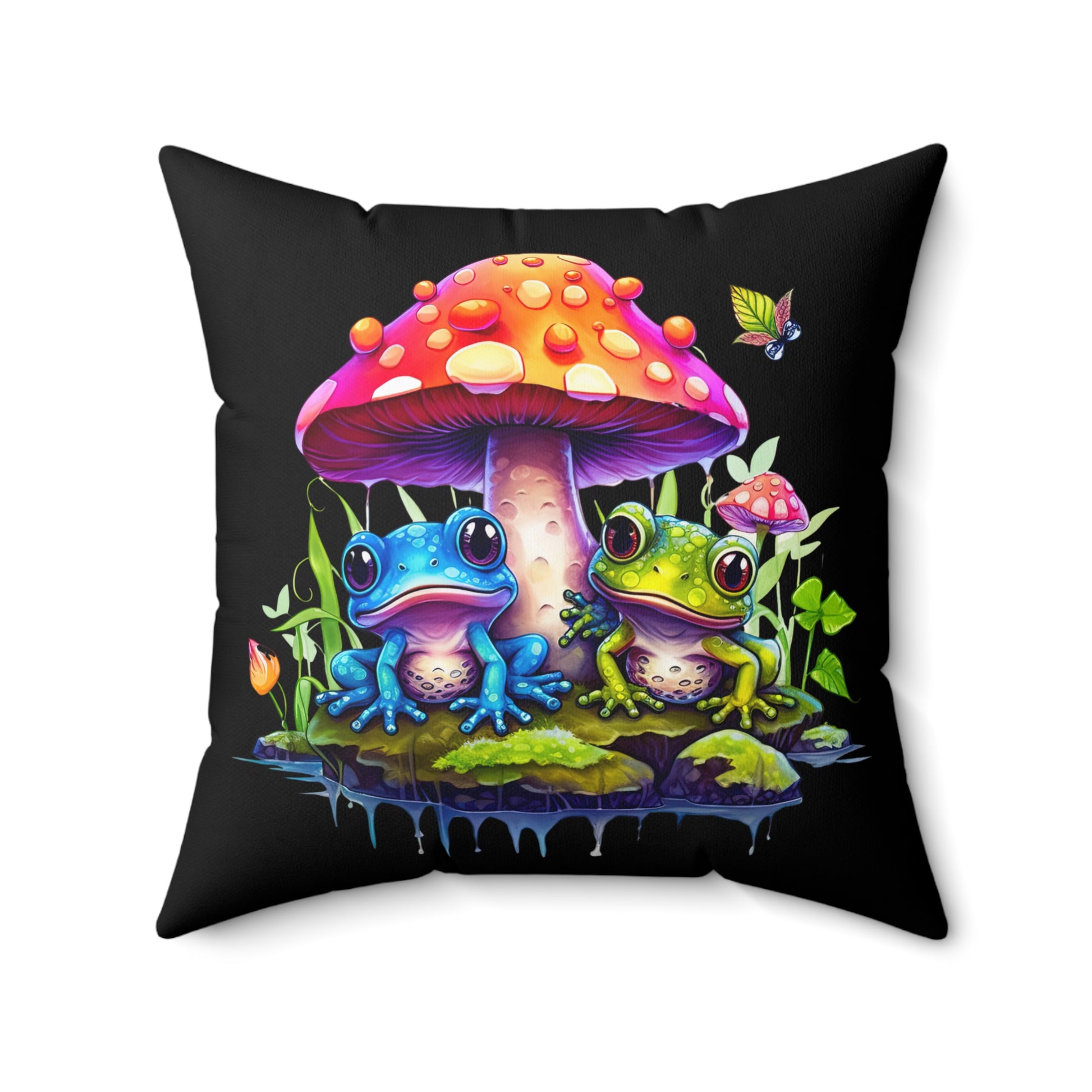 Decorative Spun Polyester Square Pillow, Stylish Mushroom with Frogs Decor for Home or Office, Great Gift Idea for Any Occasion for Anyone