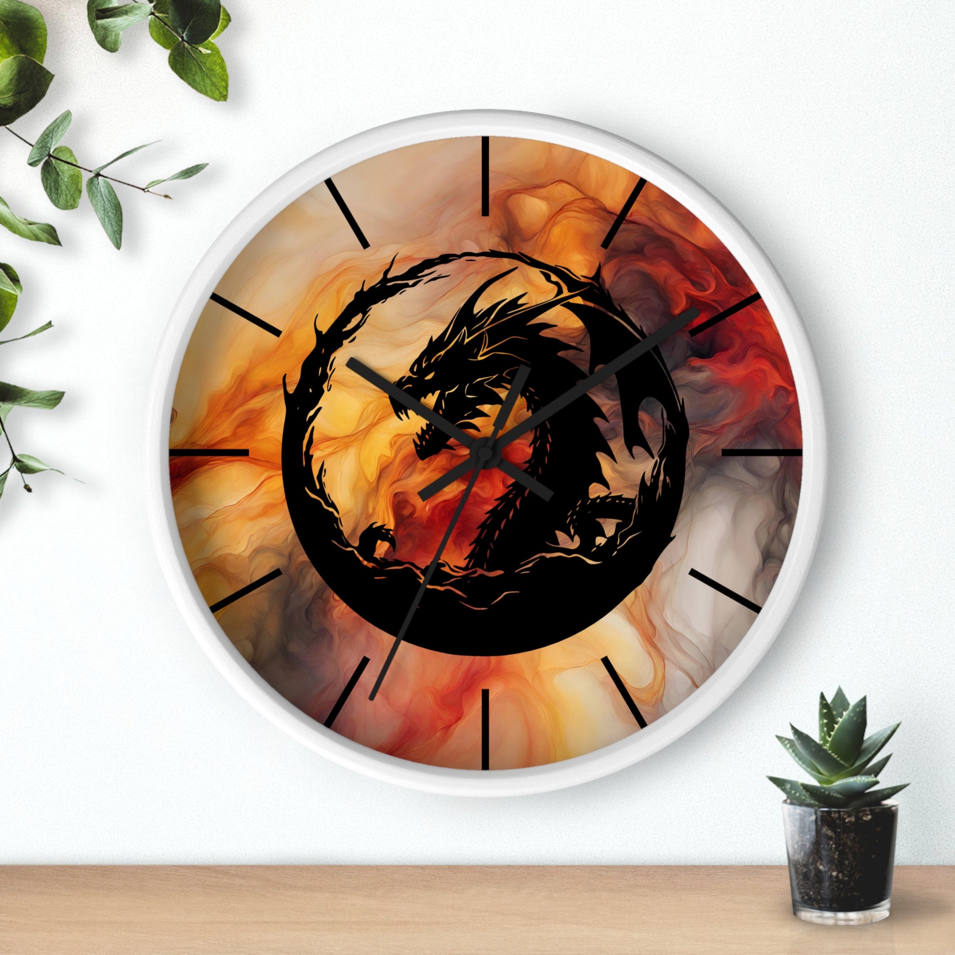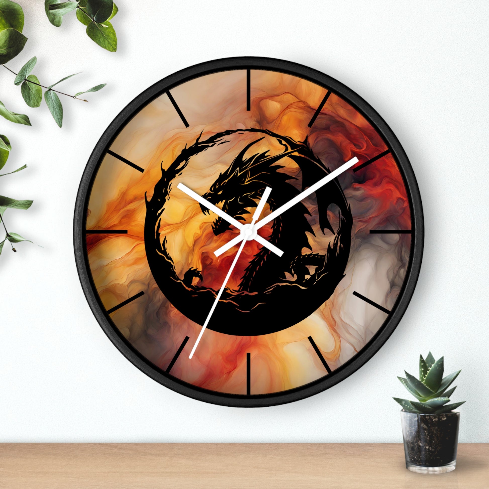 Whether you're decorating your living room, office, bedroom, game room, or fantasy-themed space, this dragon wall clock adds mystique and dramatic flair. The stunning smoky background and powerful dragon design create a focal point that celebrates mythical beauty while serving the practical purpose of keeping time. It's both decorative art and functional timepiece!
