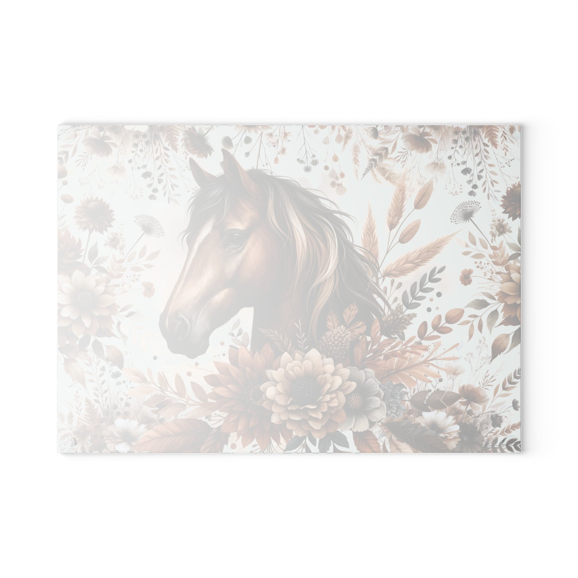 Equestrian Floral Glass Cutting Board - Perfect for Horse Lovers and Kitchen Decor