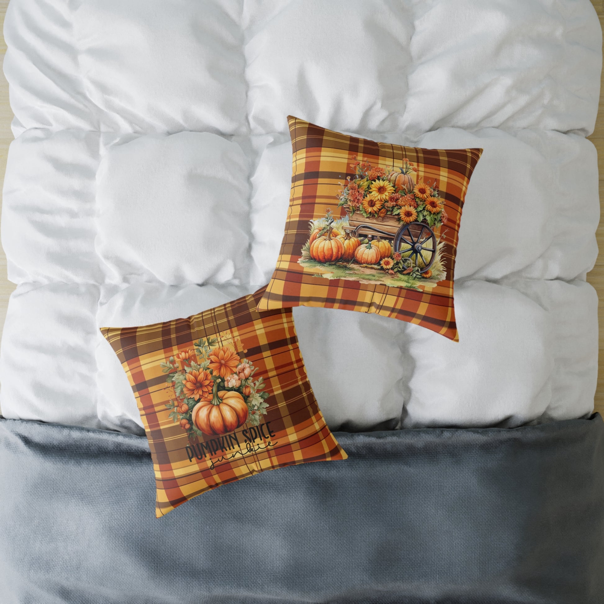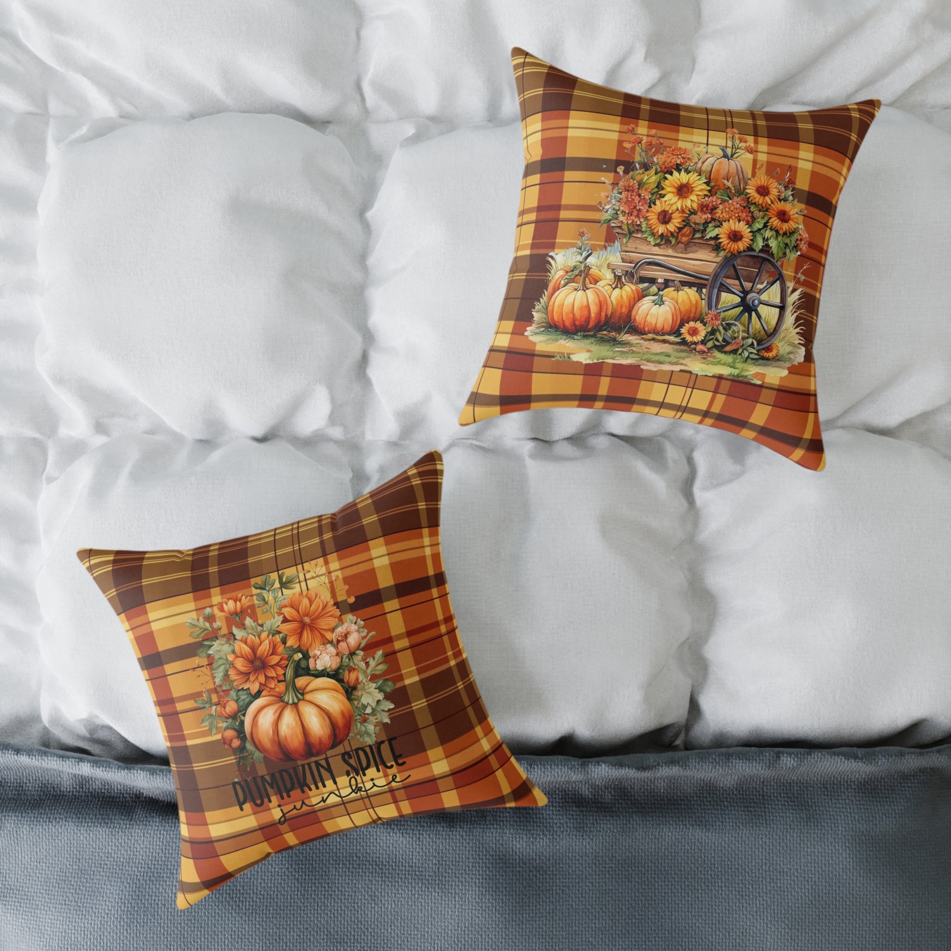 Fall Theme Square Poly Canvas Pillow, Beautiful Two-Sided Fall Pillow for Home or Office, Stylish Accent for Any Room, Perfect Fall Decor