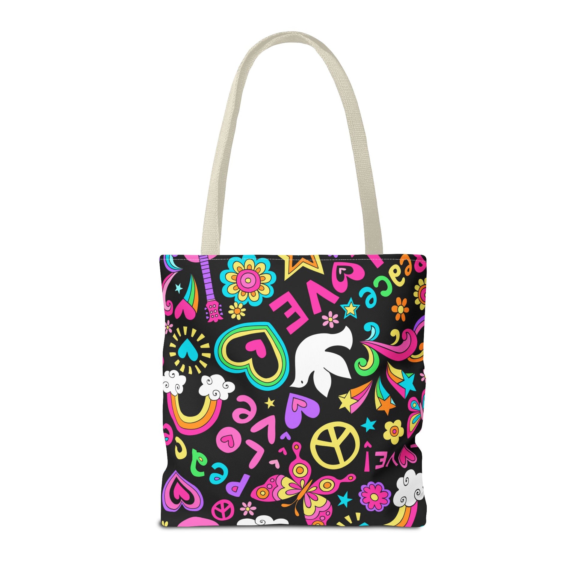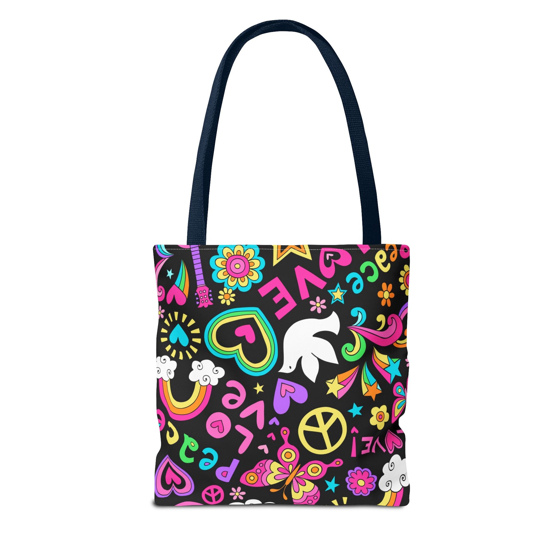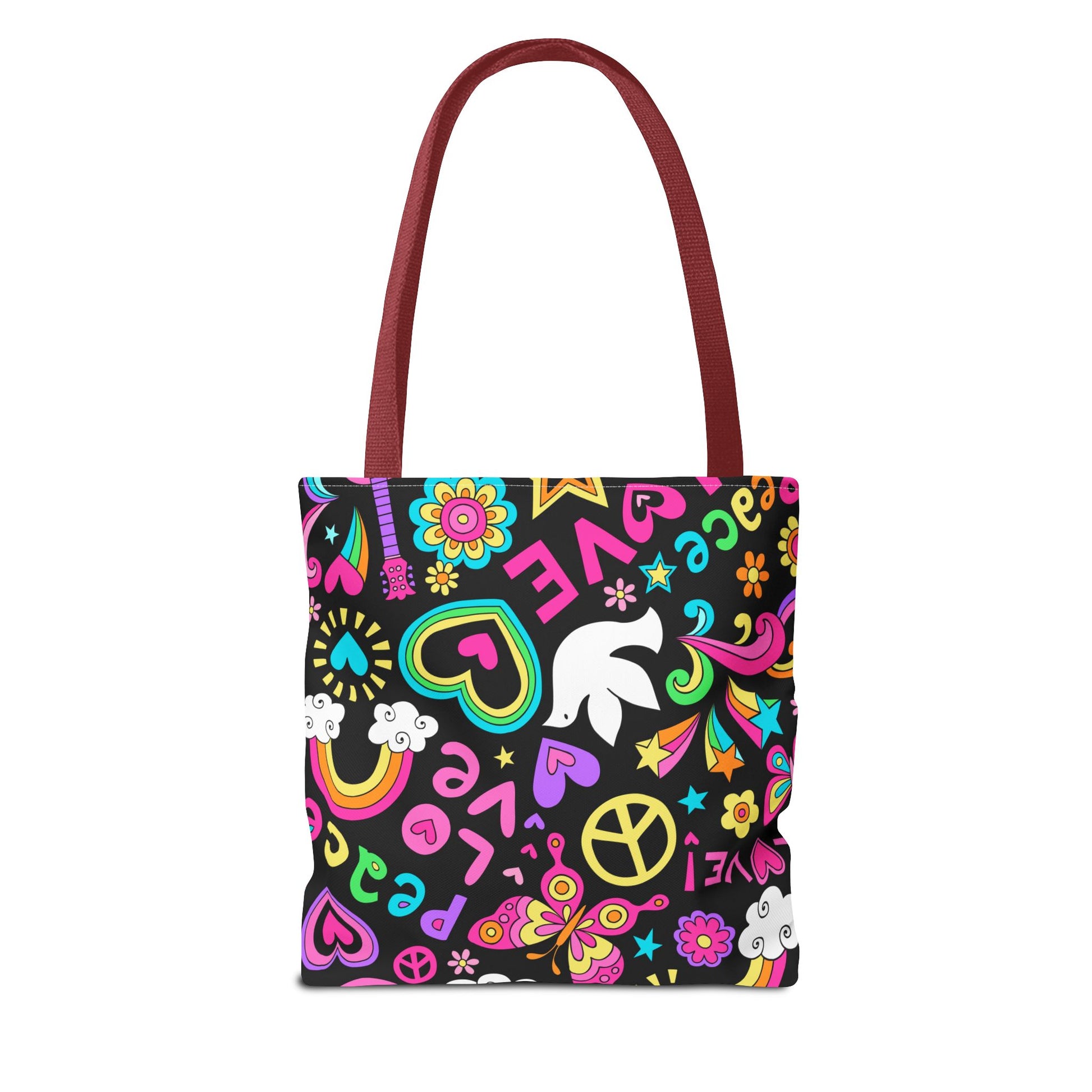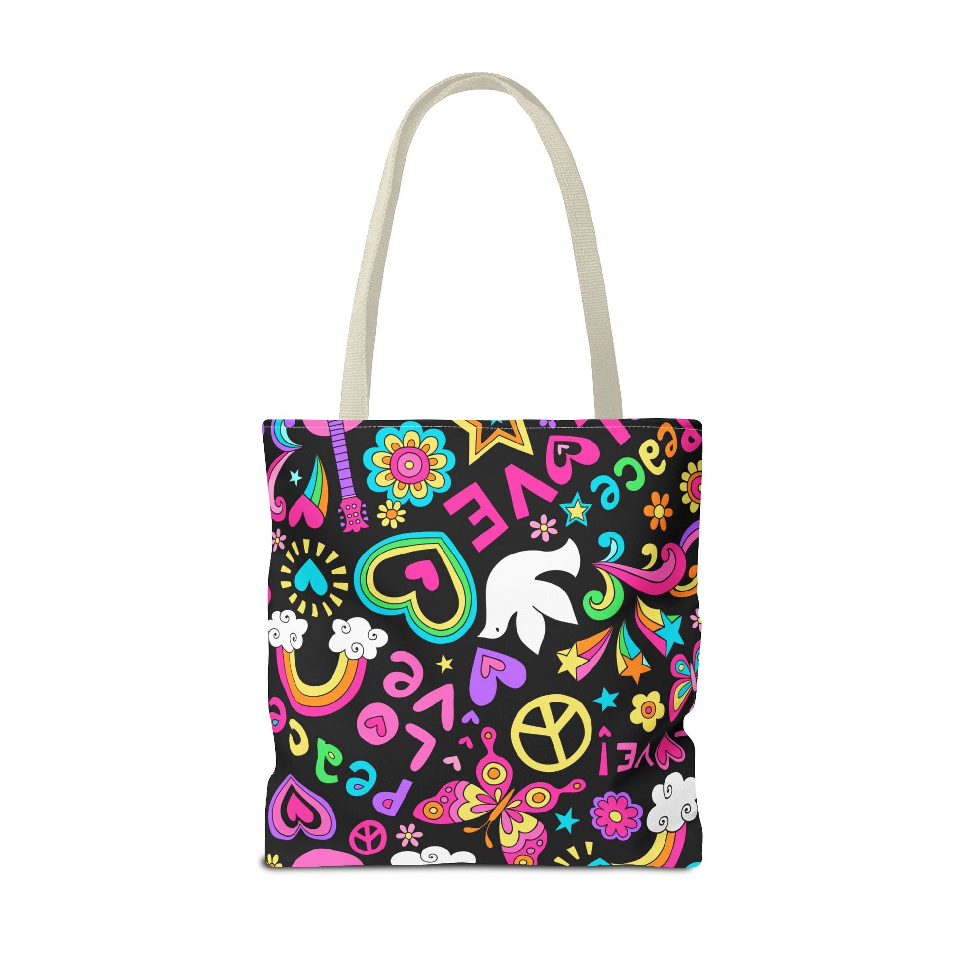 Fashionable Tote Bag (AOP), Stylish, Peace Lovers, Hippie Theme, Great Gift Idea for Birthdays, Holidays or Any Occasion for Anyone