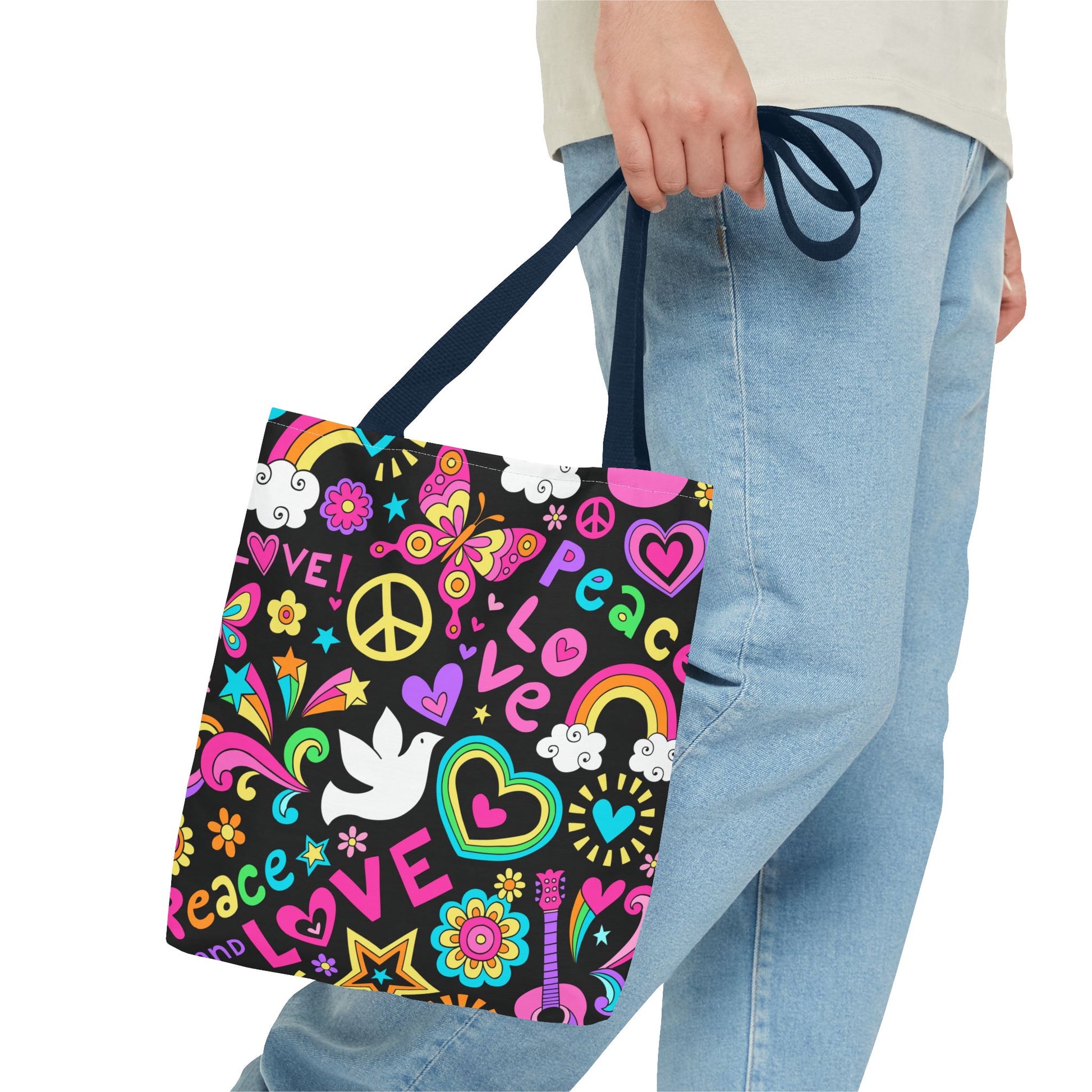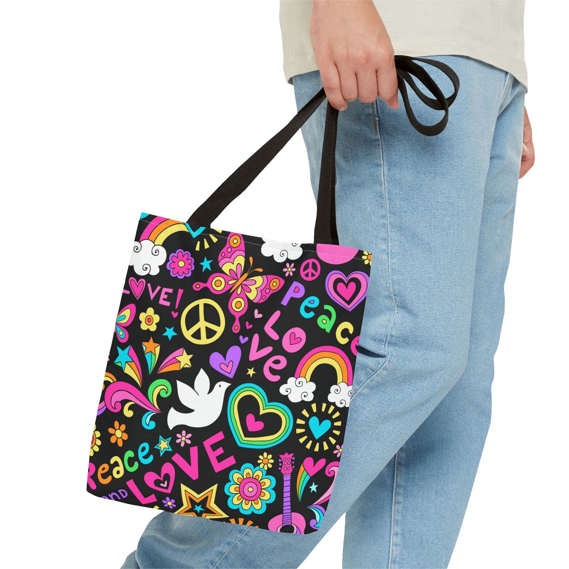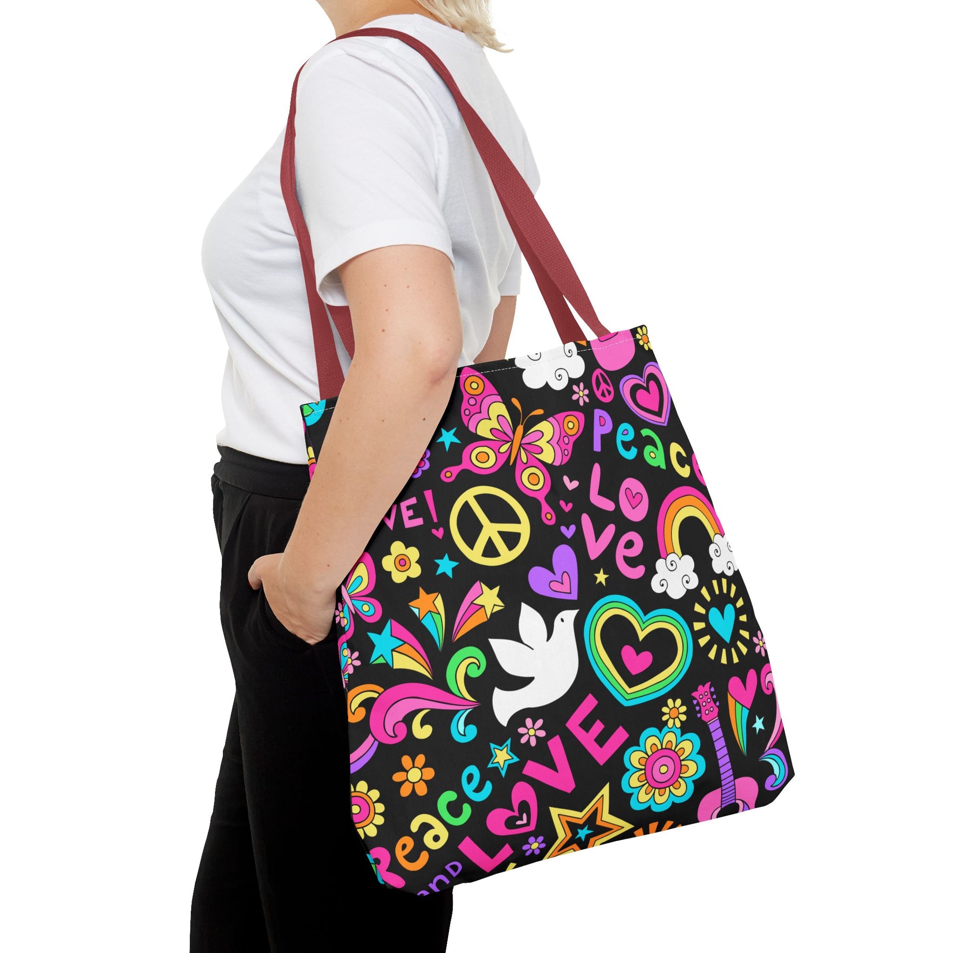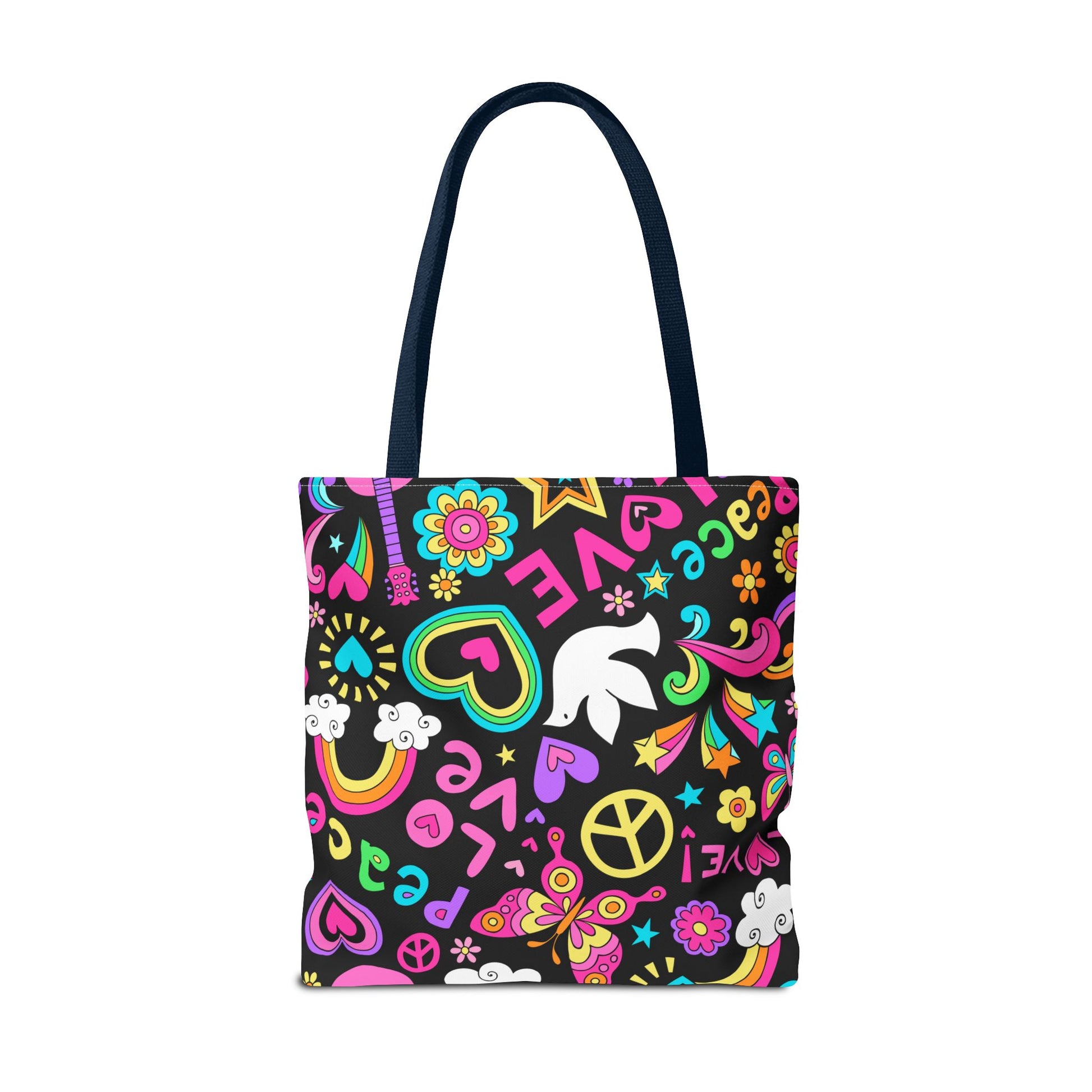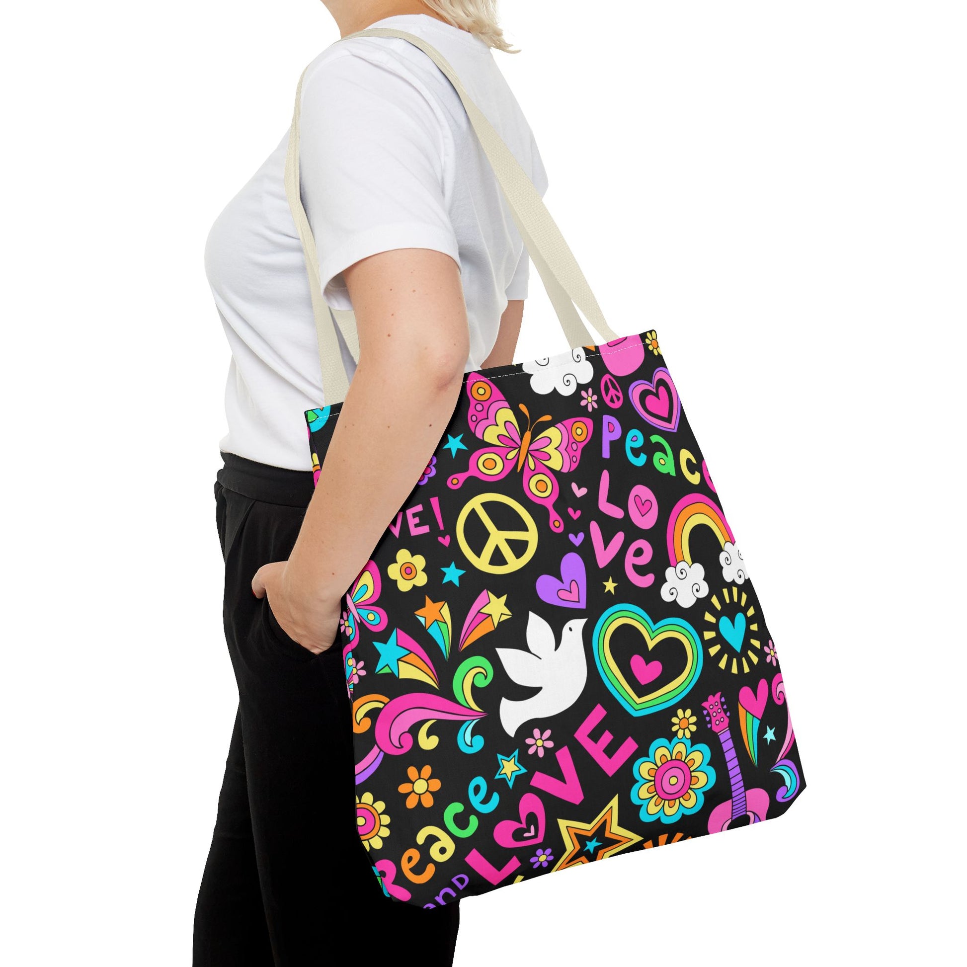 Fashionable Tote Bag (AOP), Stylish, Peace Lovers, Hippie Theme, Great Gift Idea for Birthdays, Holidays or Any Occasion for Anyone
