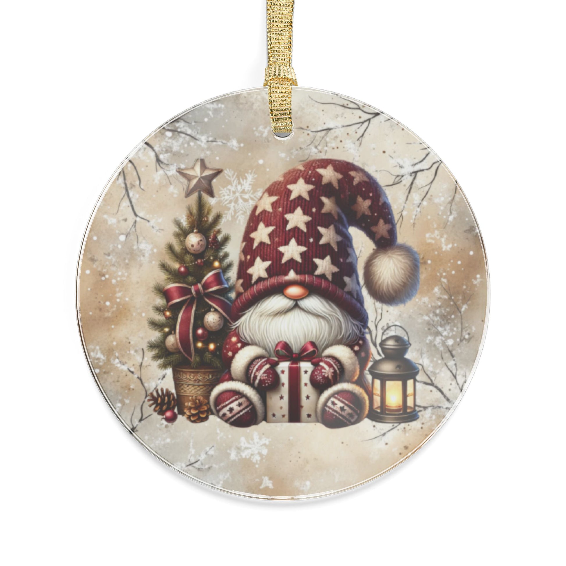 Festive Holiday Acrylic Ornaments - Cute Santa Gnome & Christmas Tree Design Decor
