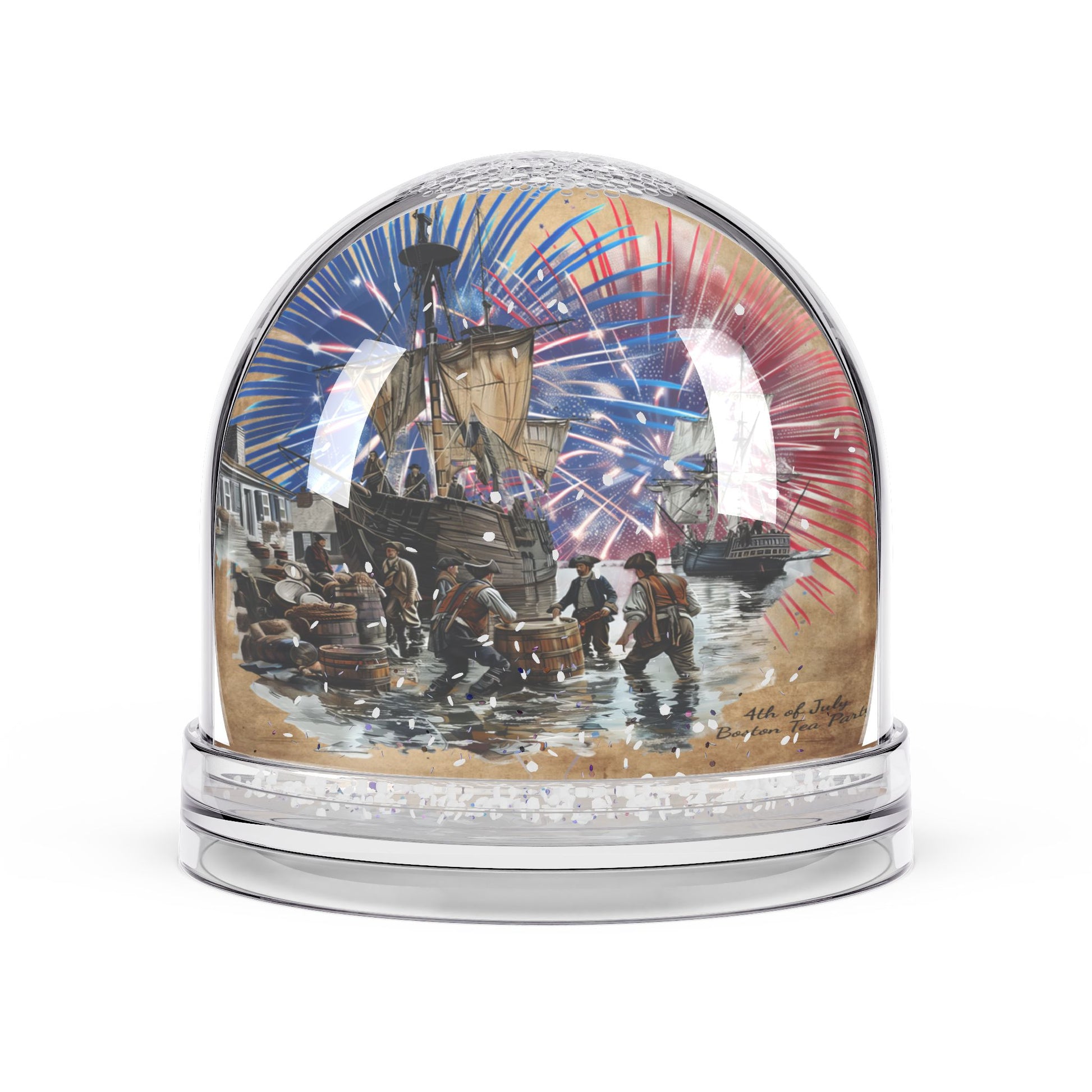 Fireworks Celebration Snow Globe - 4th of July Boston Tea Party