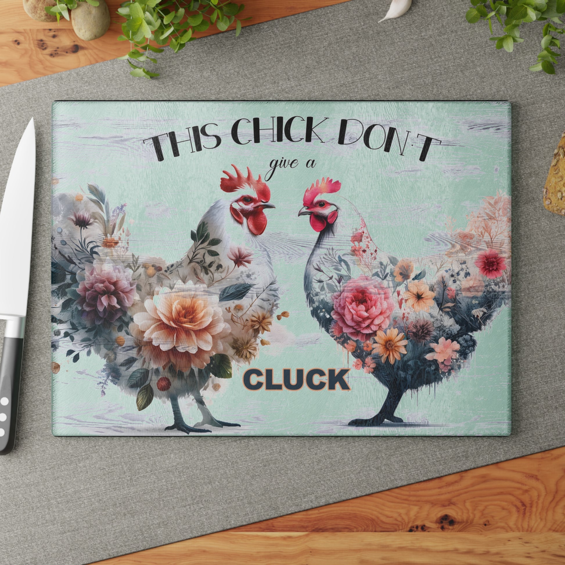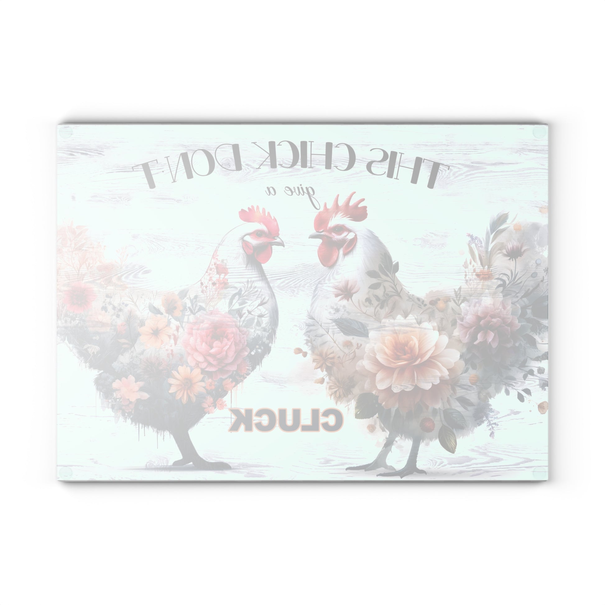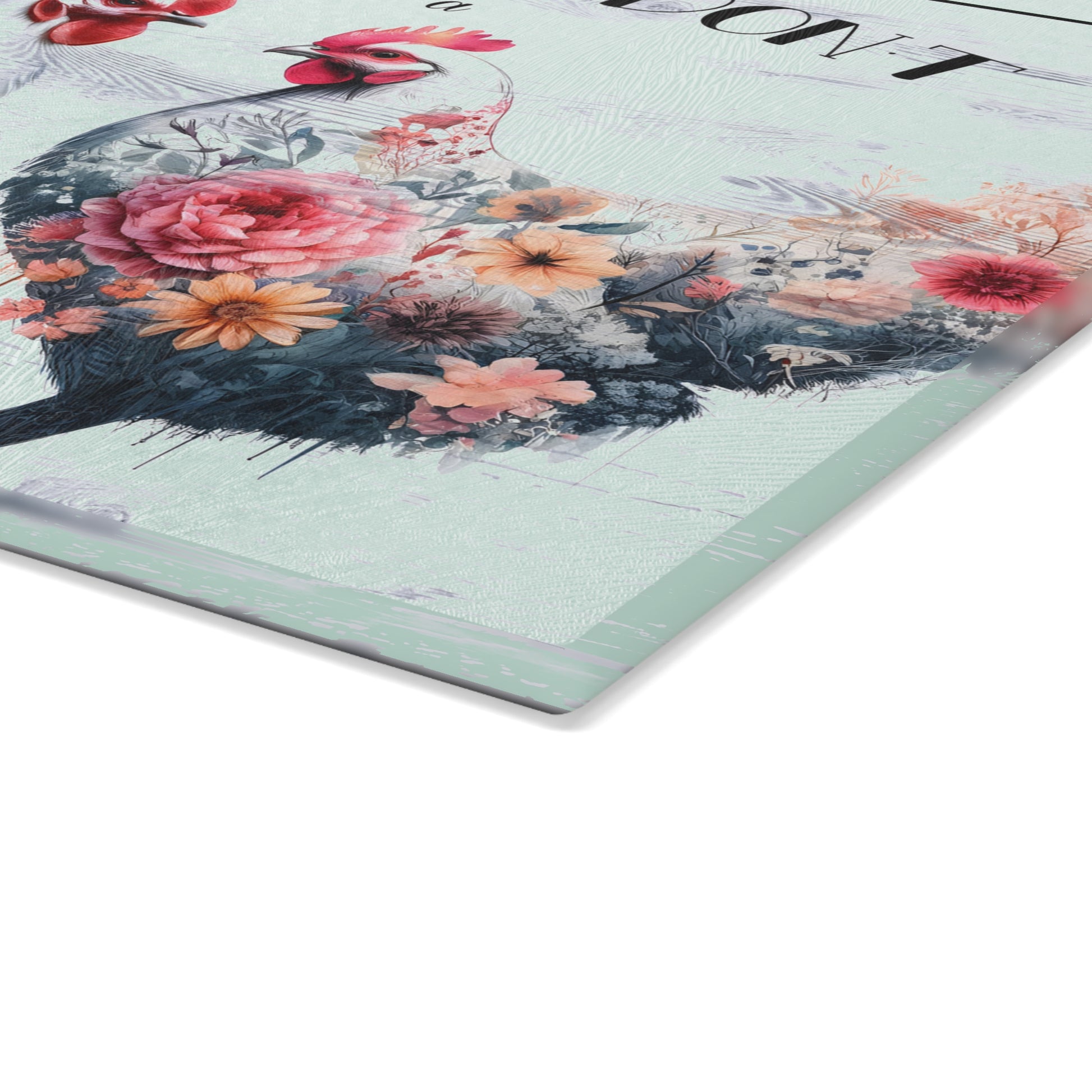 Floral Chicken Glass Cutting Board - Playful Kitchen Decor for Cooking Enthusiasts