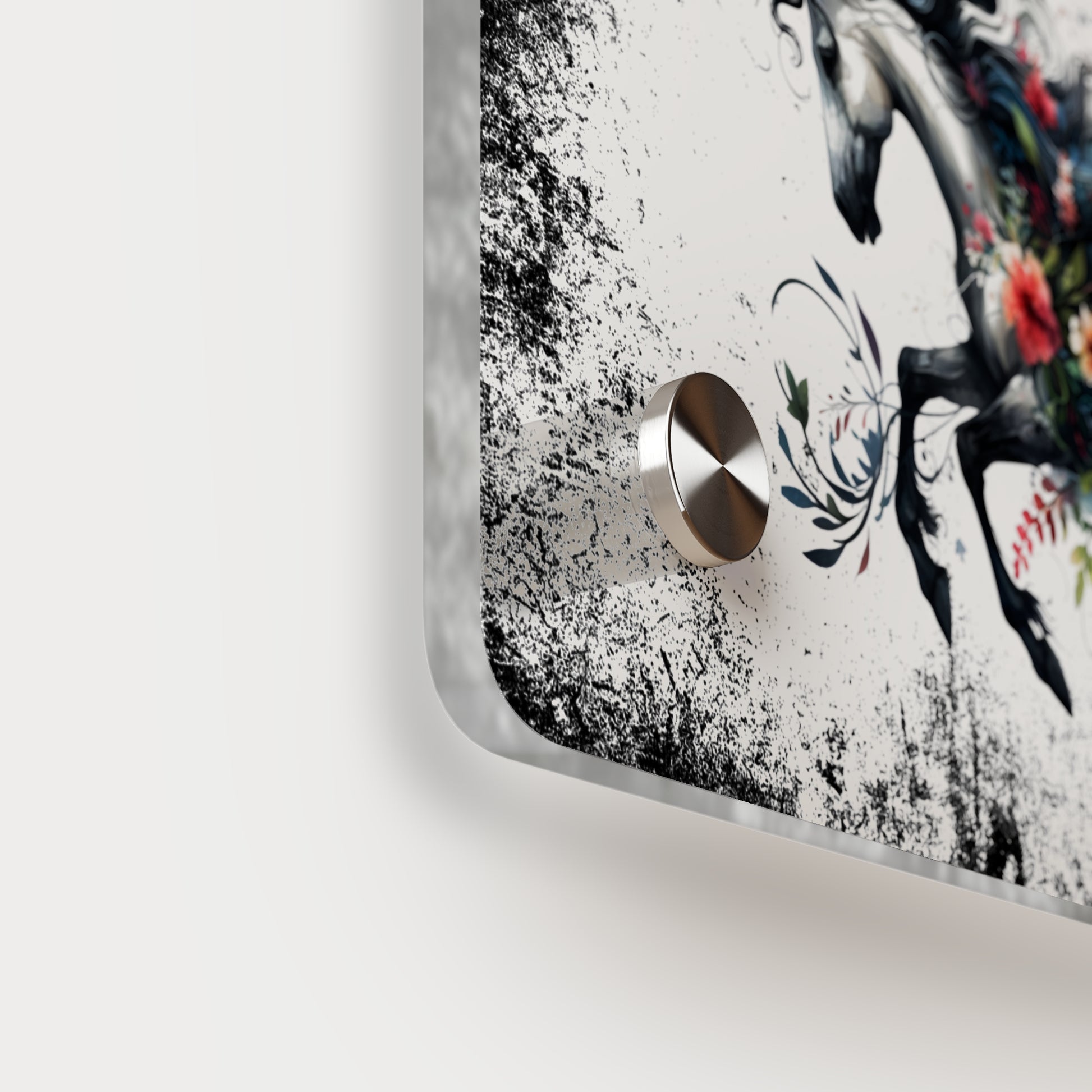 Floral Horse Acrylic Wall Art Panel - Modern Home Decor
