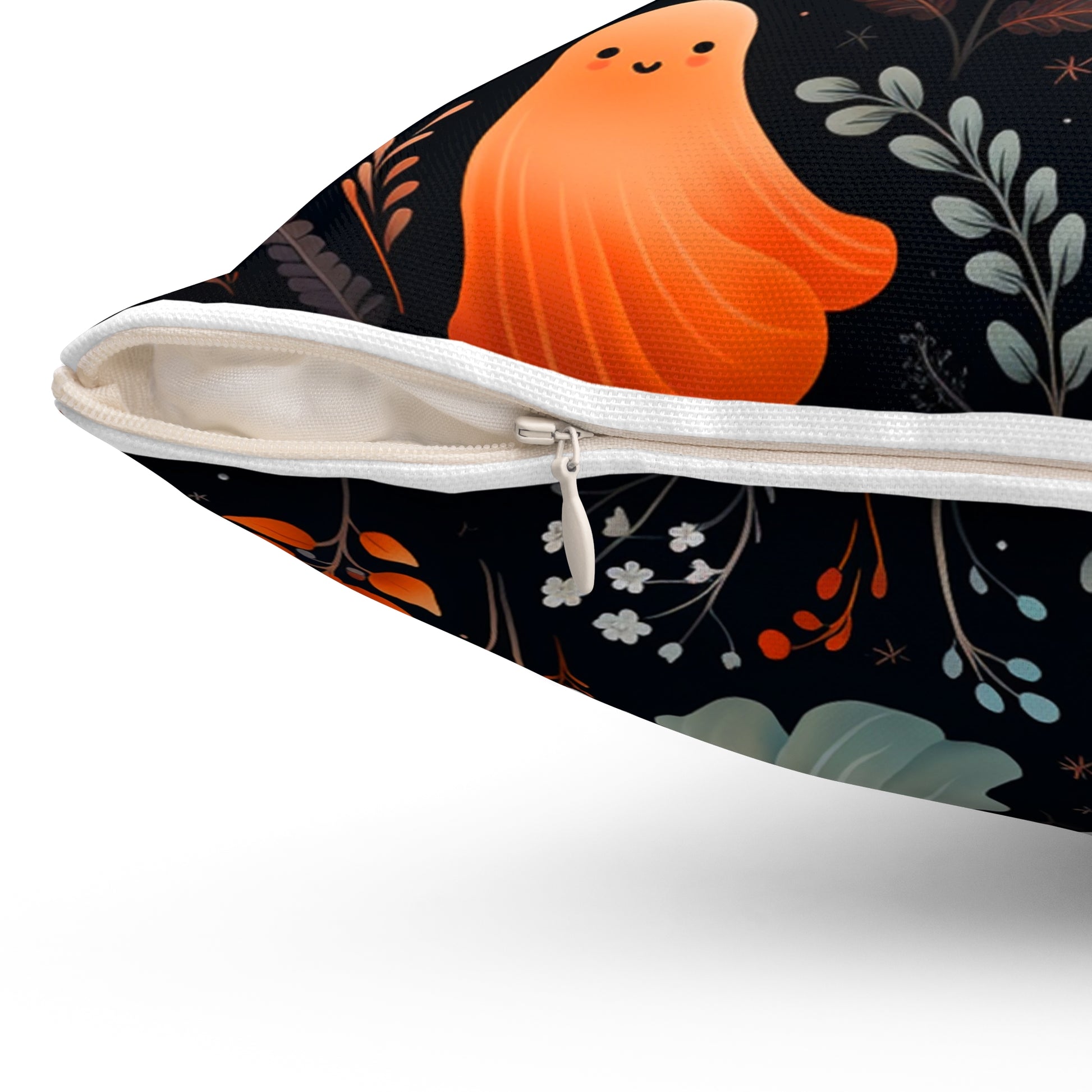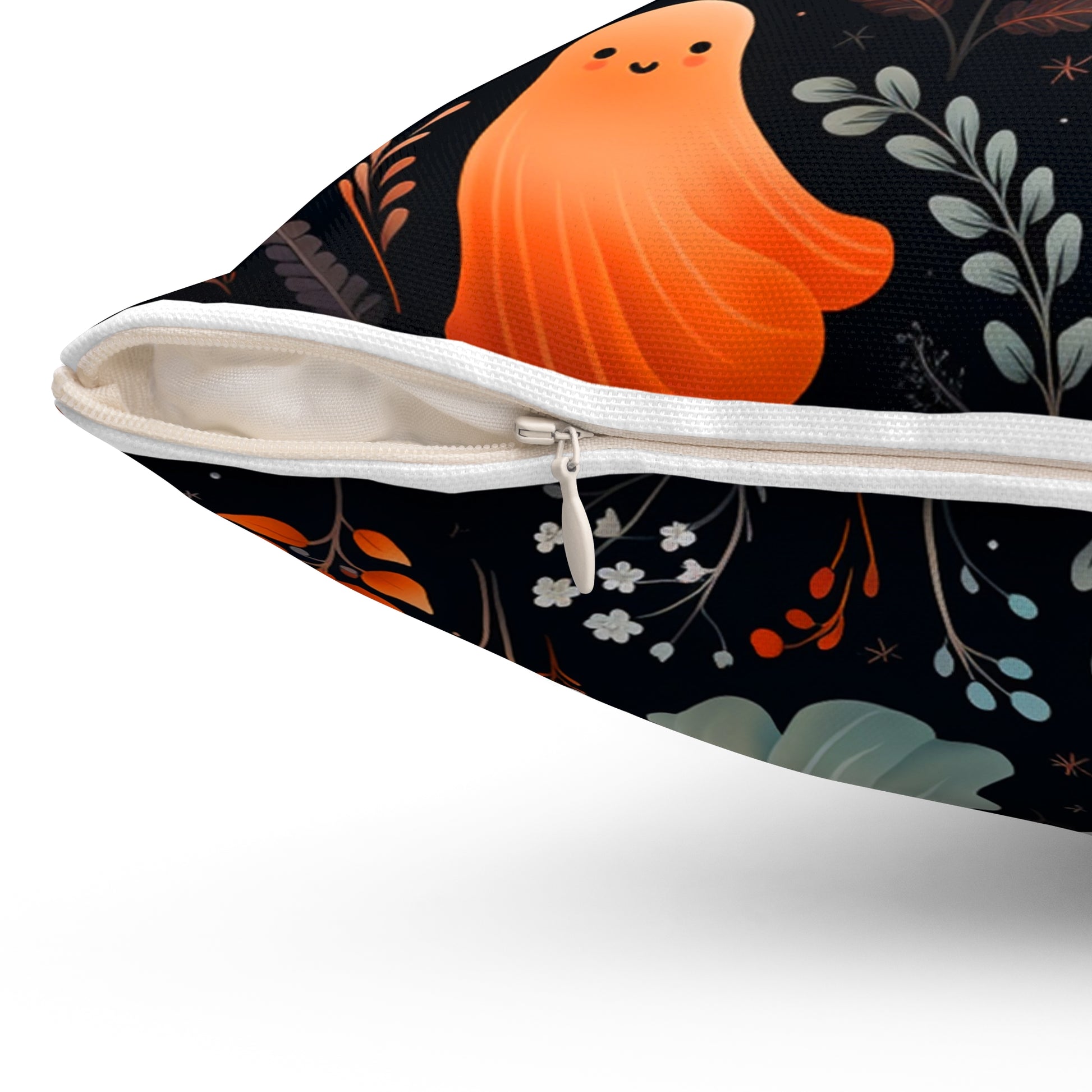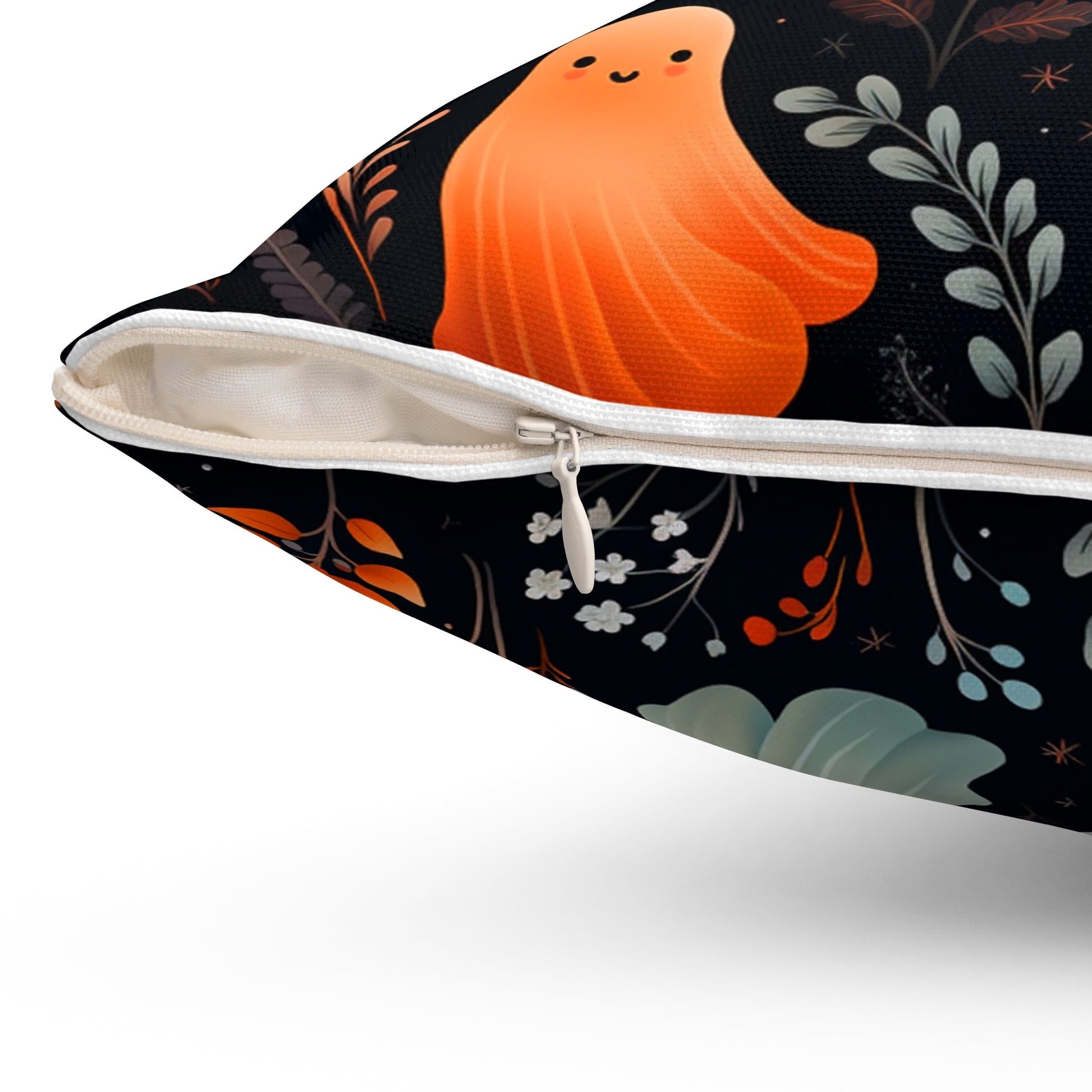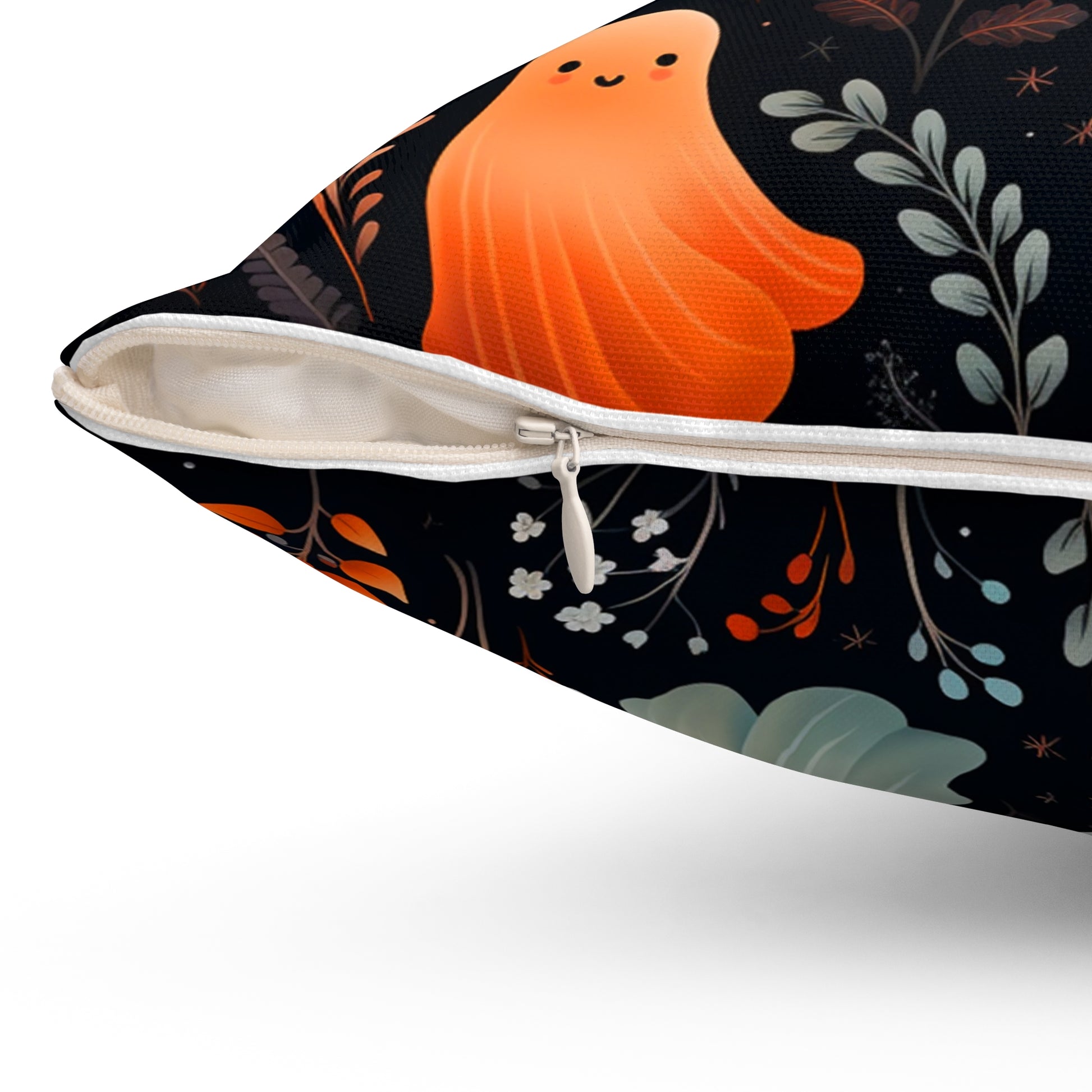 Friendly Ghosts And Floral Spun Polyester Square Pillow, Accent for Any Room, Beautiful Fun Festive Halloween Decor, Great Housewarming Gift Idea