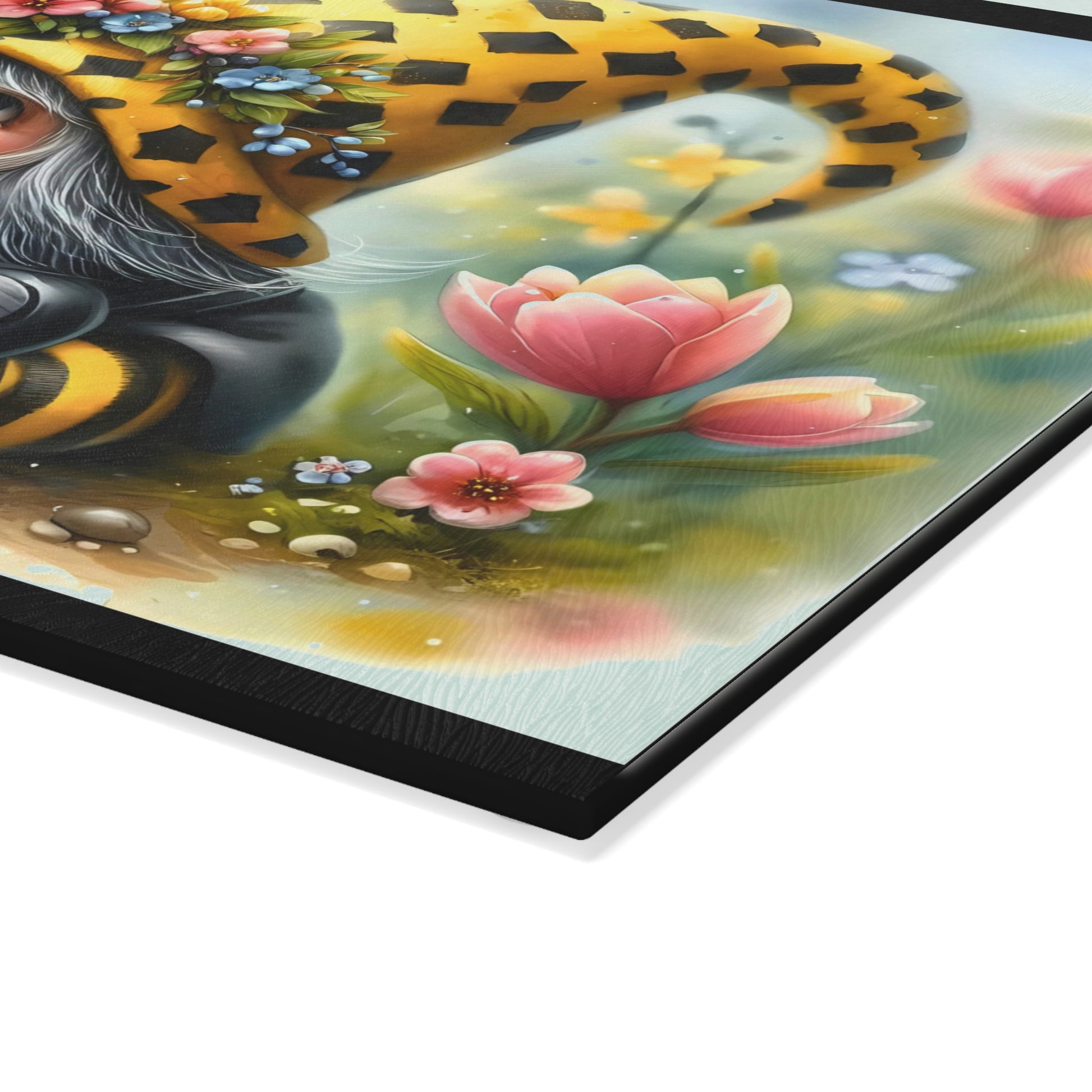 Glass Cutting Board — Cute Bee Gnome Floral Kitchen Cutting Board