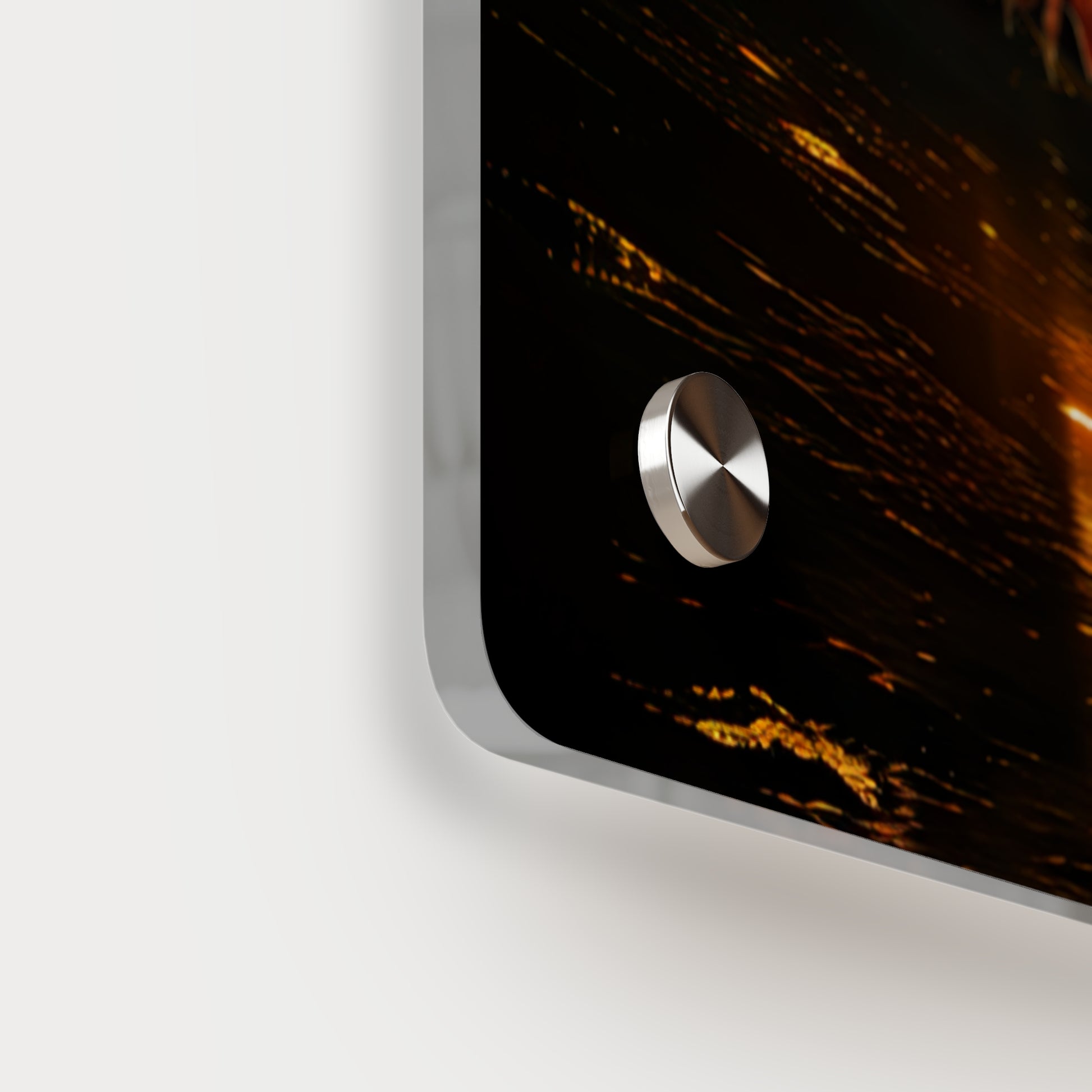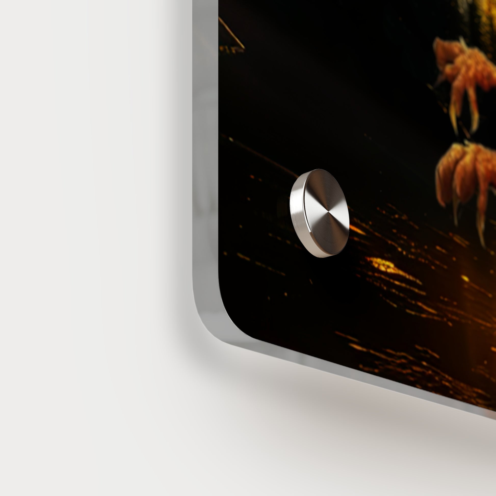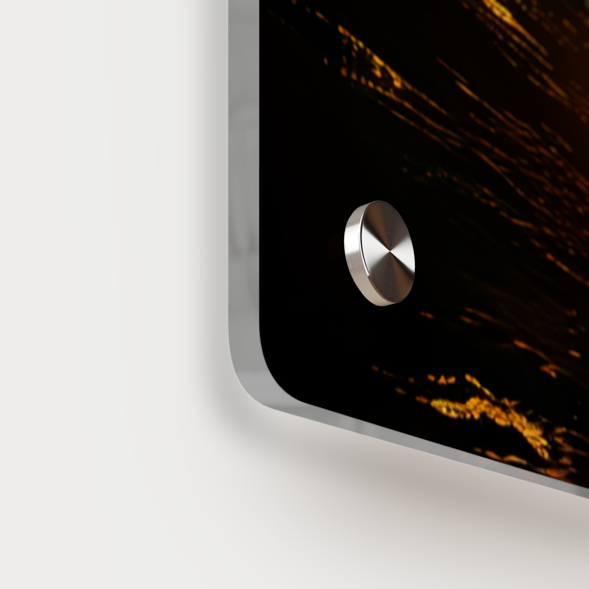 Acrylic art panels are a modern way to display beautiful and vibrant art that looks like it's embedded in clear glass. They have a clear, glossy acrylic surface and a white vinyl backing. Four silver stand-offs make it very easy to mount to the wall. Available panel sizes in horizontal, vertical and some square orientations.