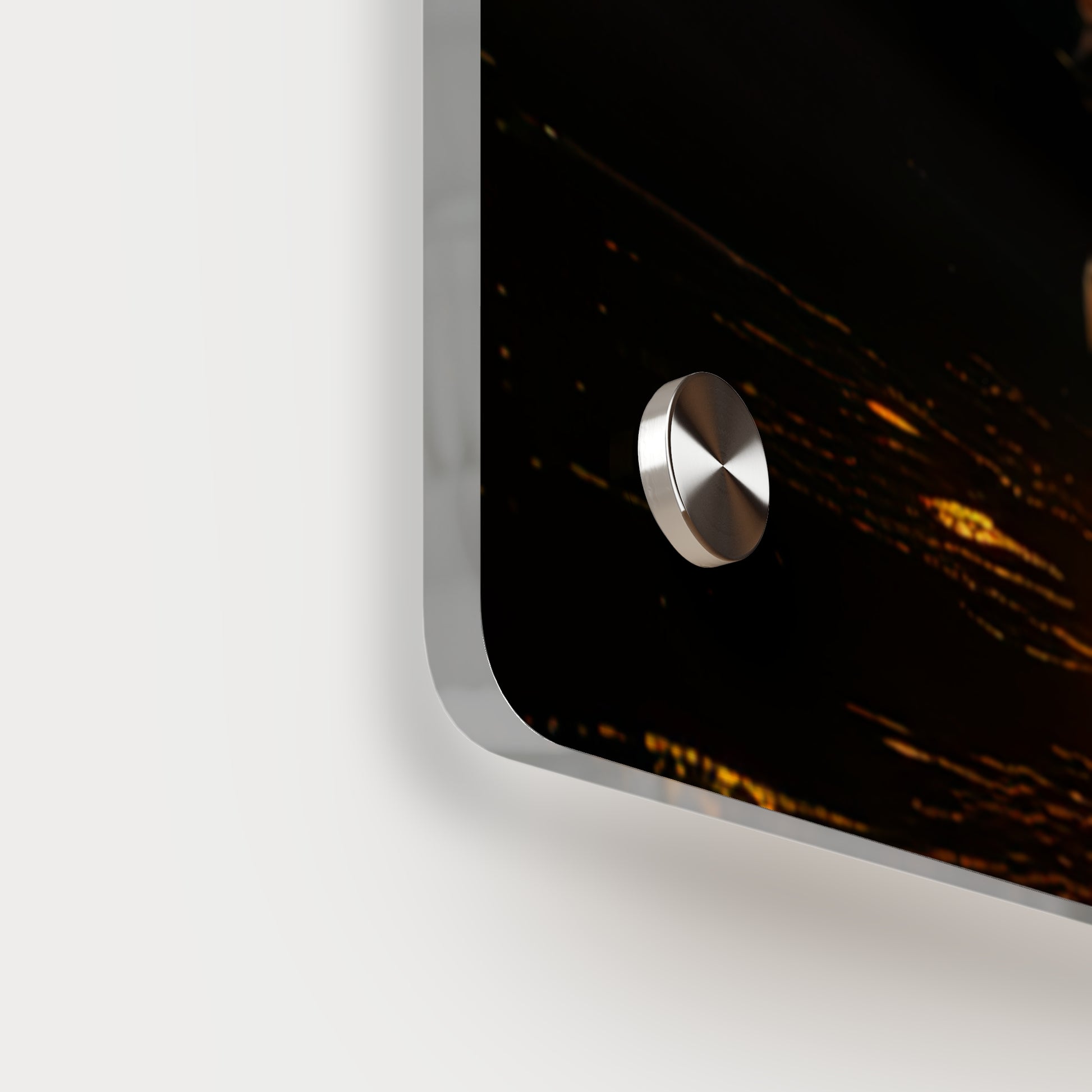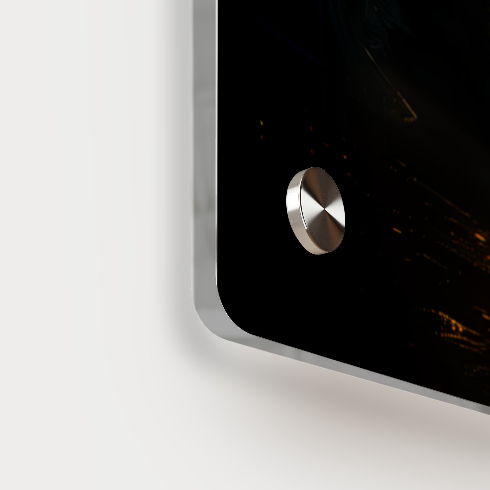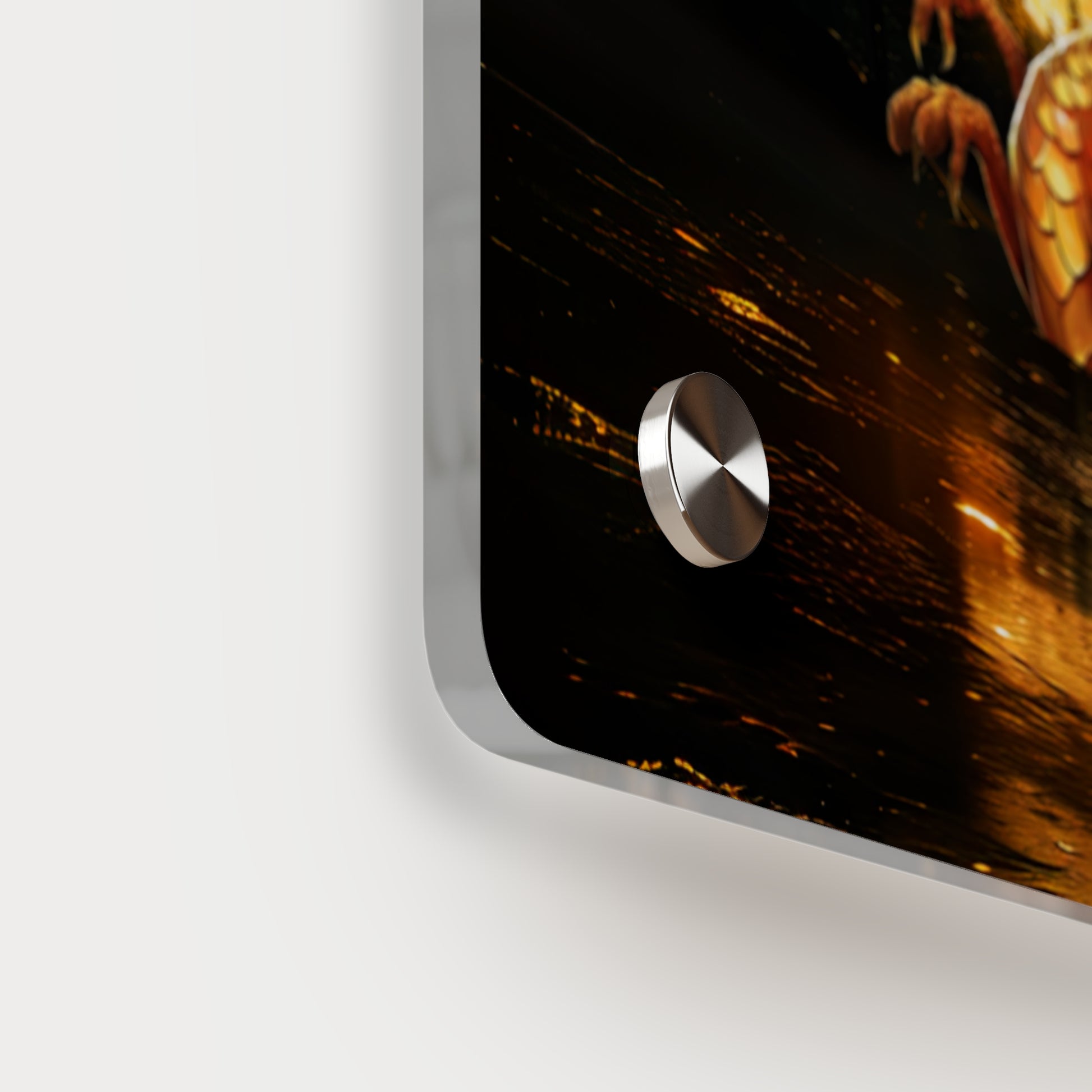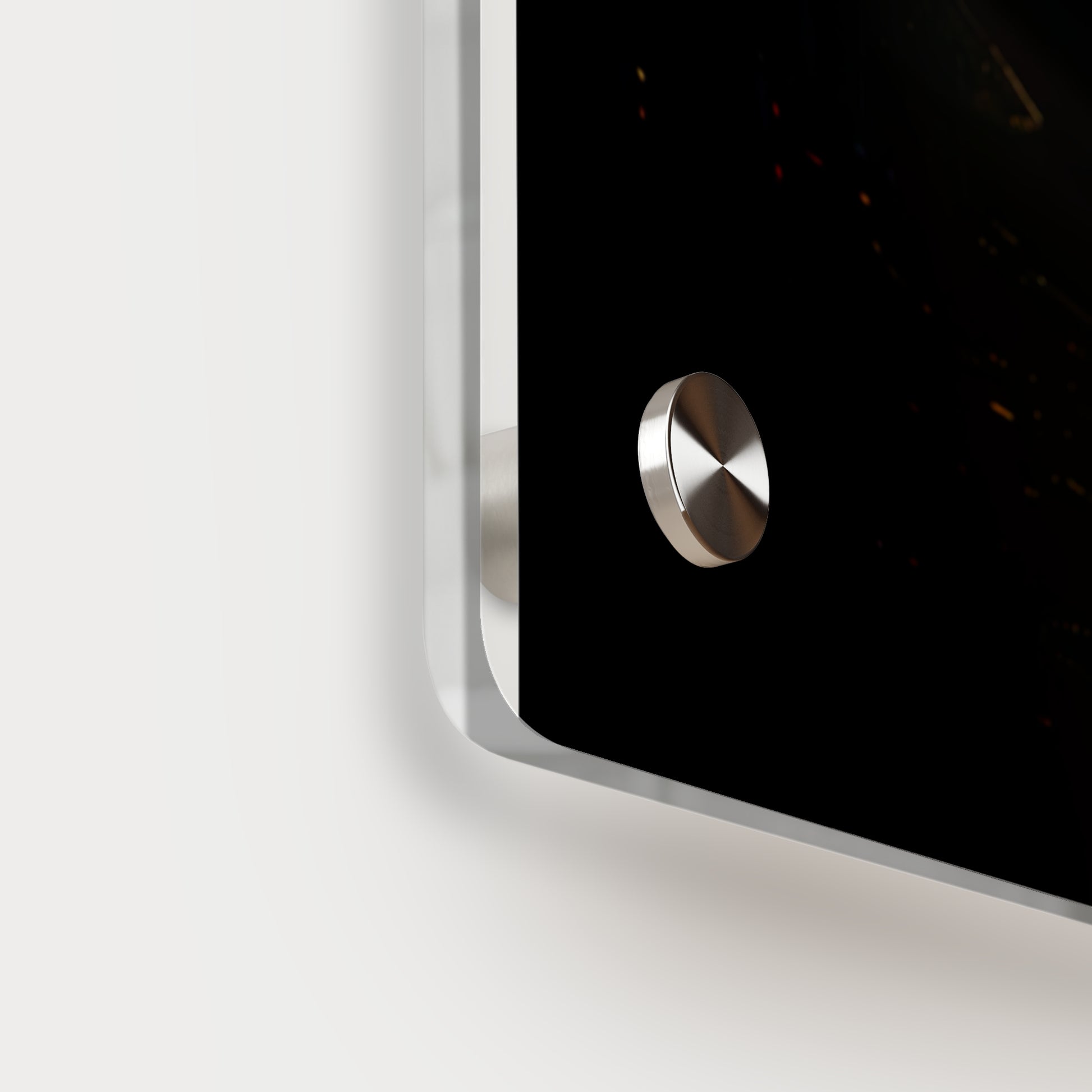 Acrylic art panels are a modern way to display beautiful and vibrant art that looks like it's embedded in clear glass. They have a clear, glossy acrylic surface and a white vinyl backing. Four silver stand-offs make it very easy to mount to the wall. Available panel sizes in horizontal, vertical and some square orientations.