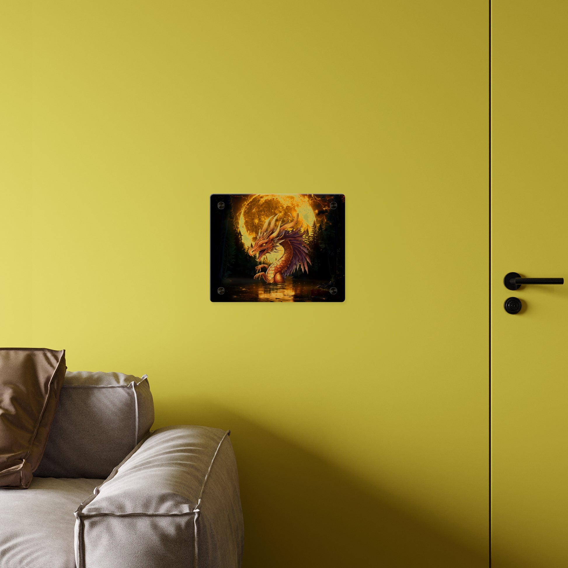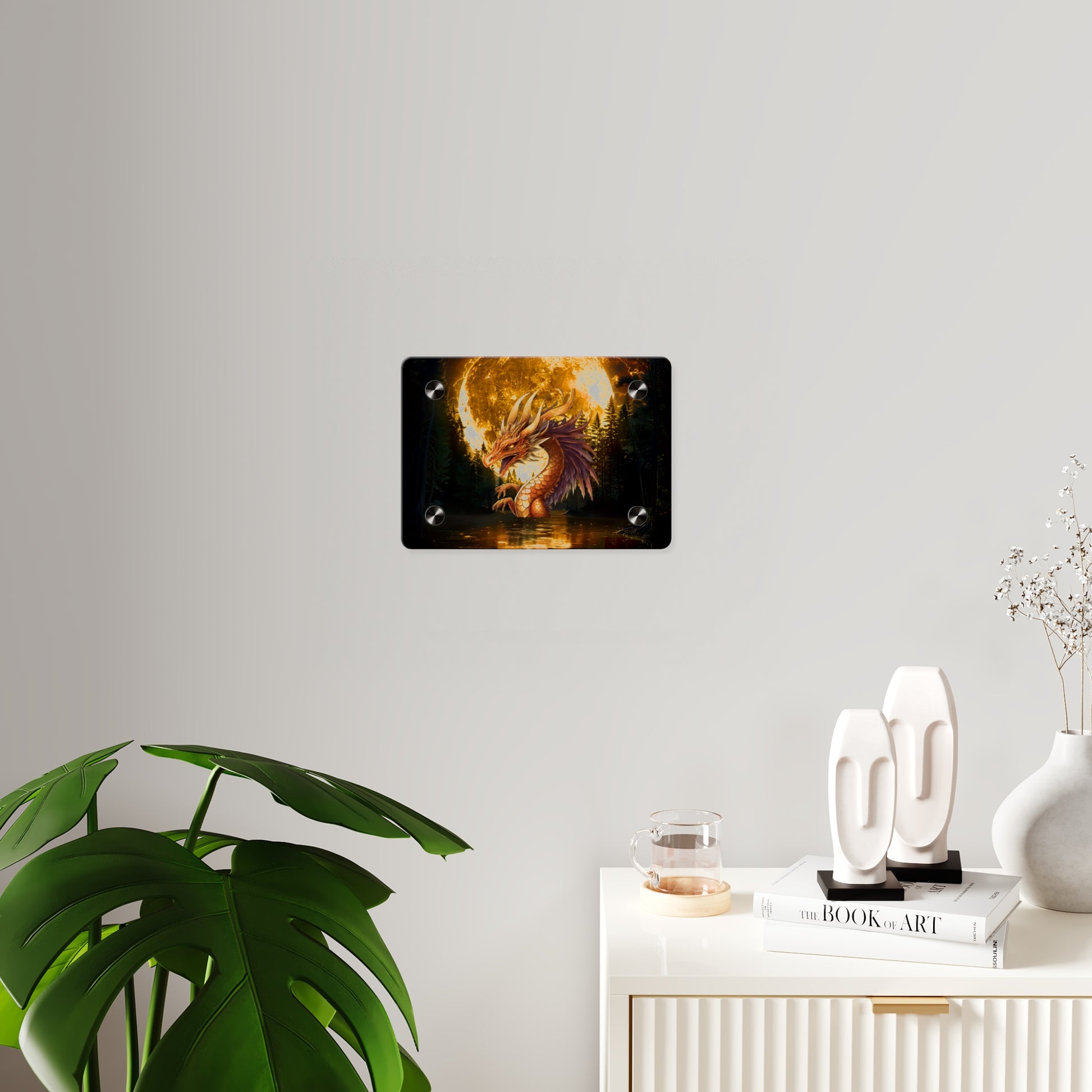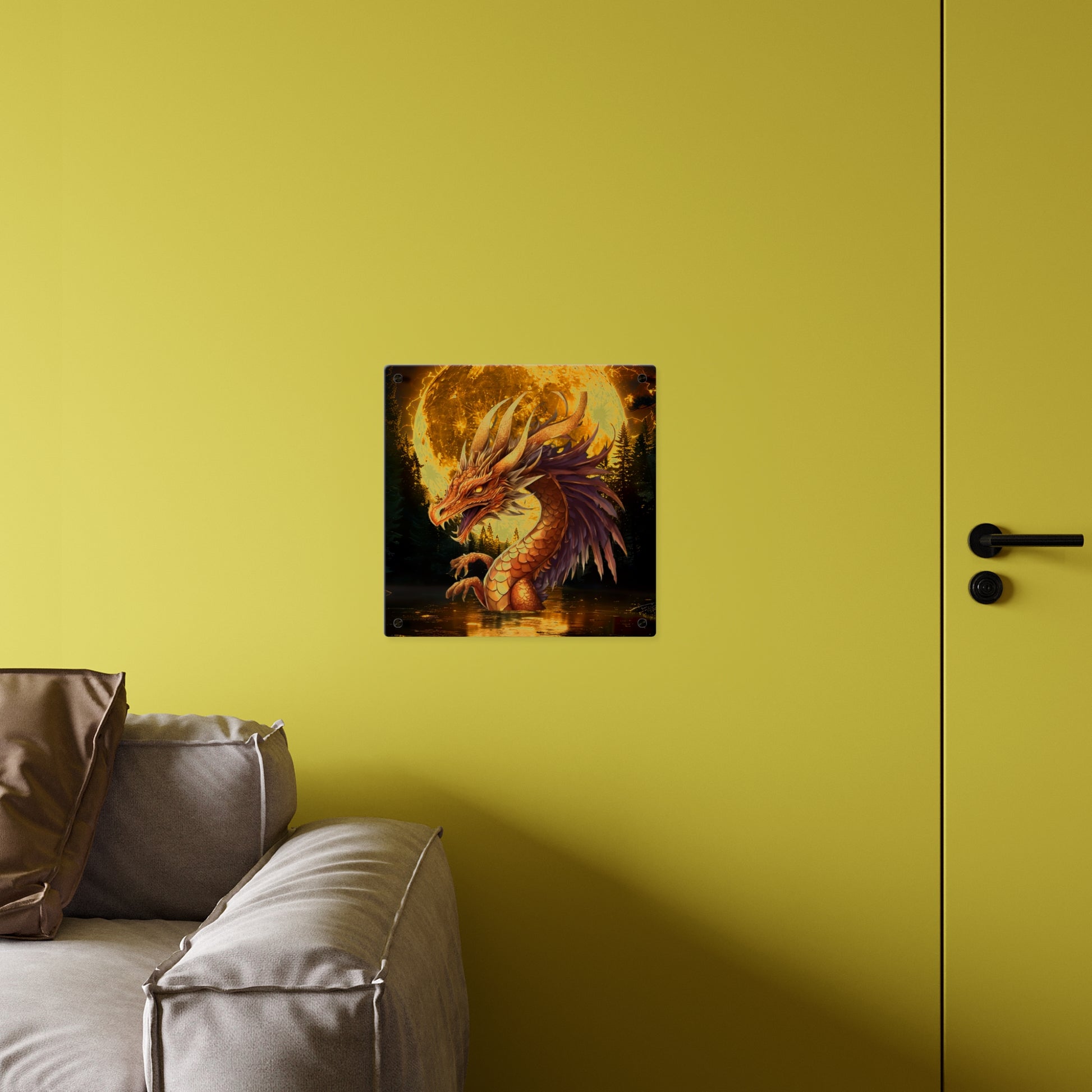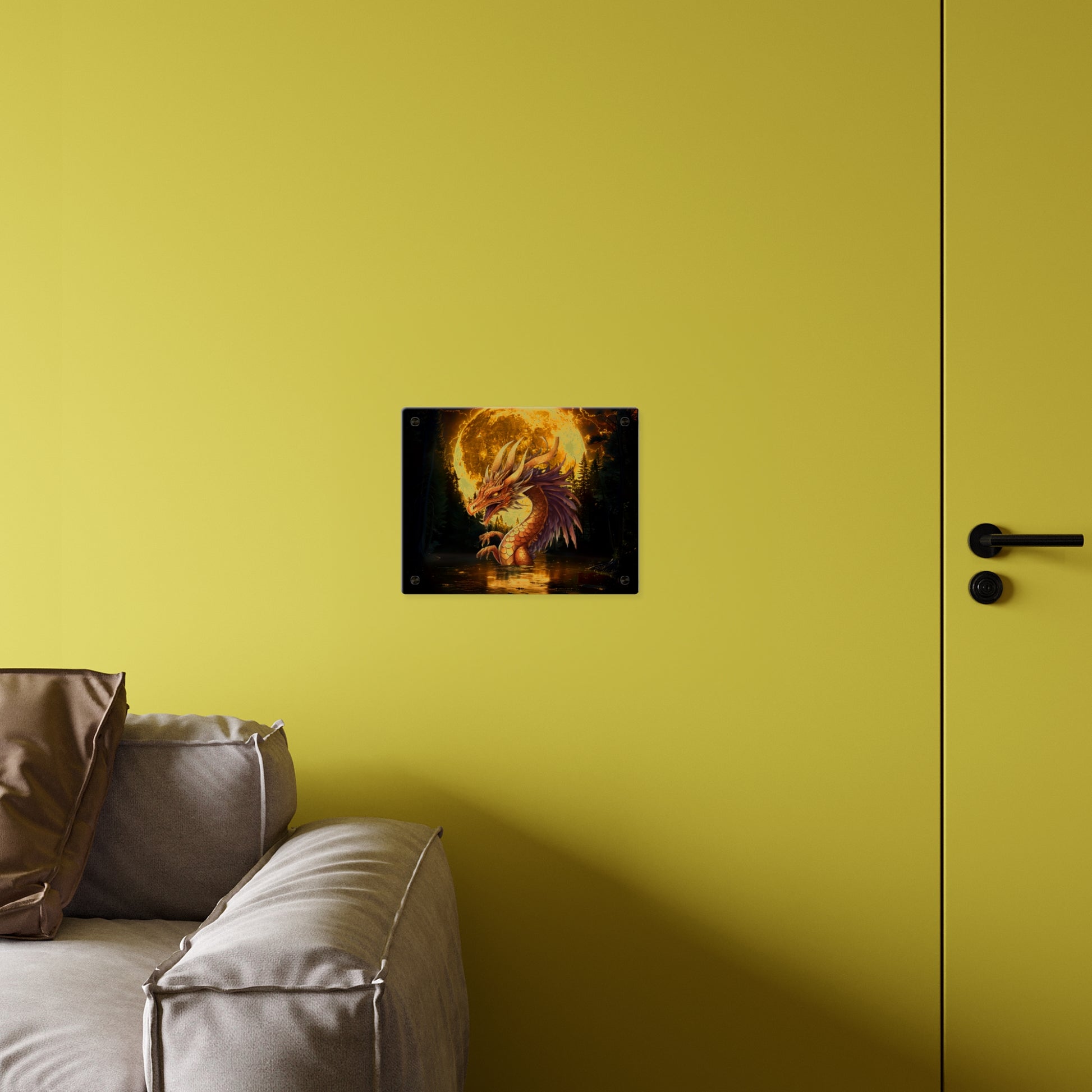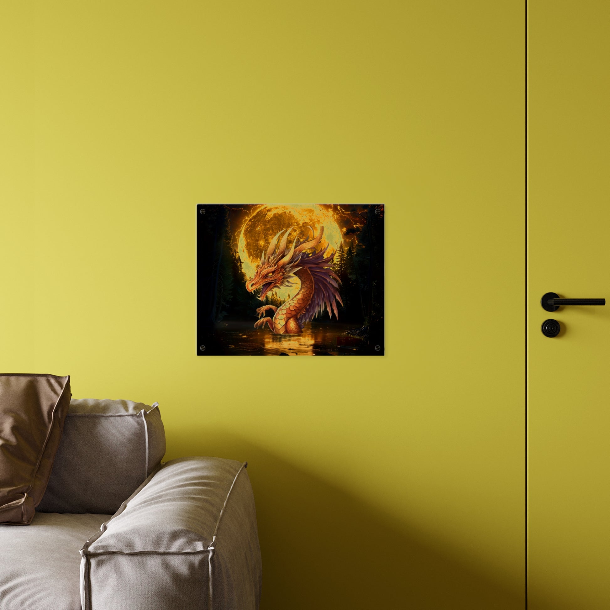 Gothic Theme Acrylic Wall Art Panel, Purple Dragon with Moon Background, Dragon Lovers, For Anyone, Accent for Any Room
