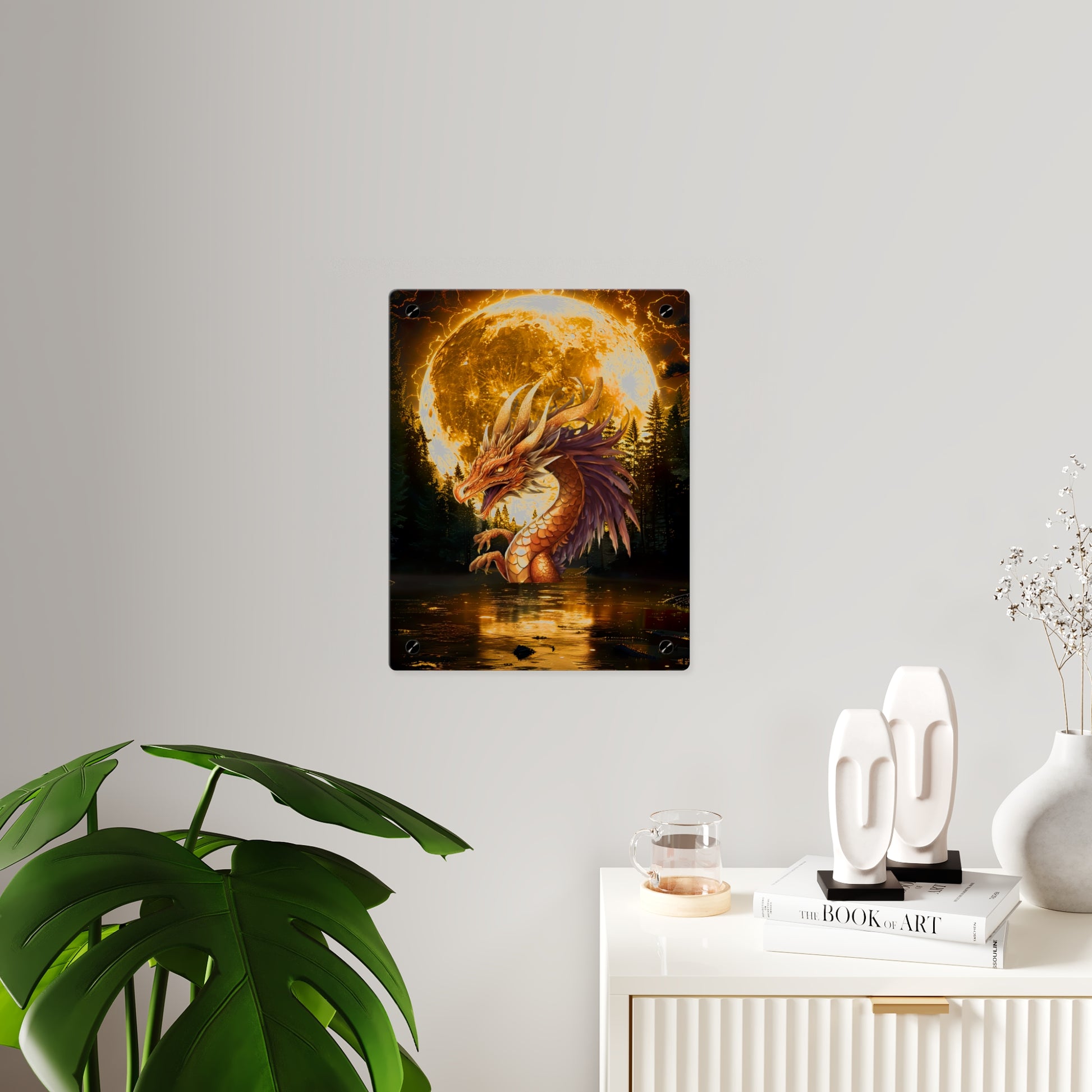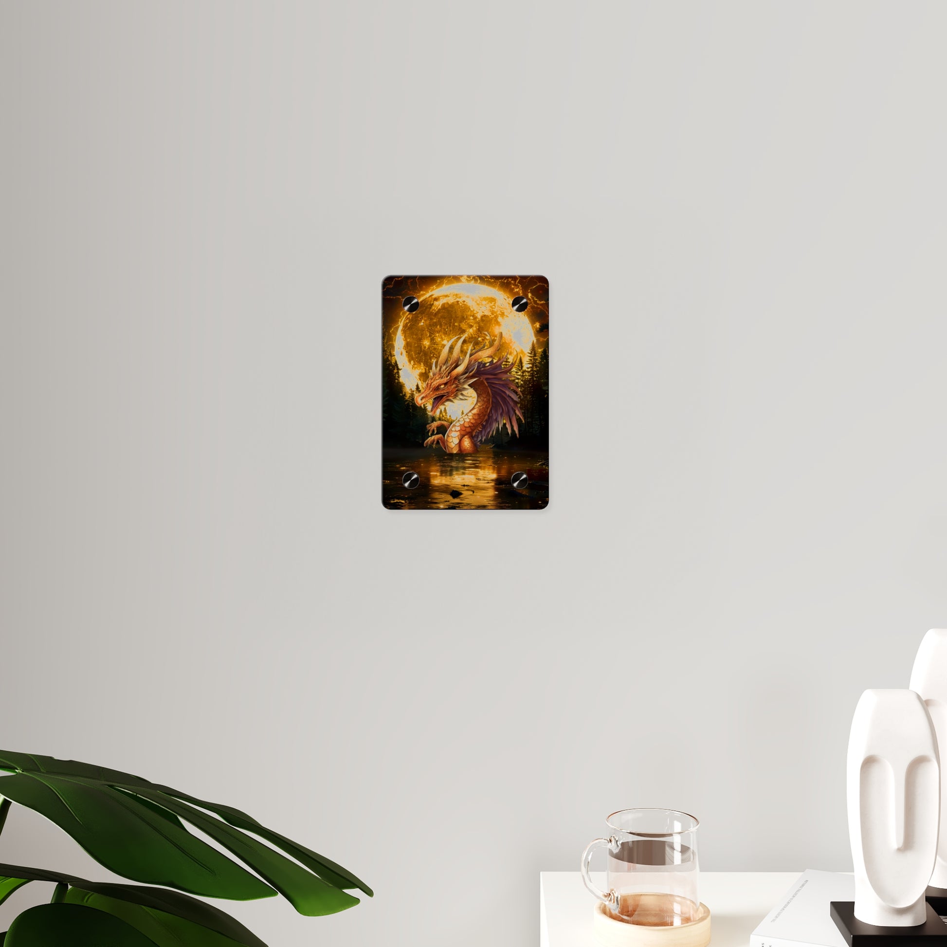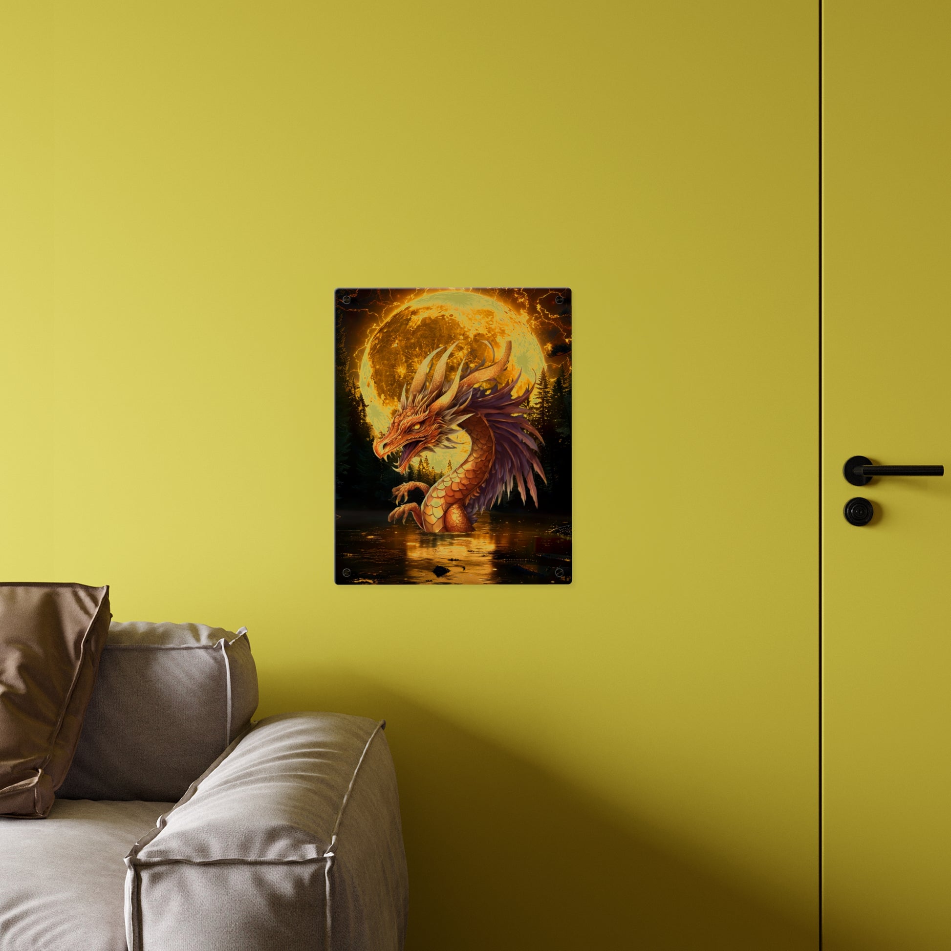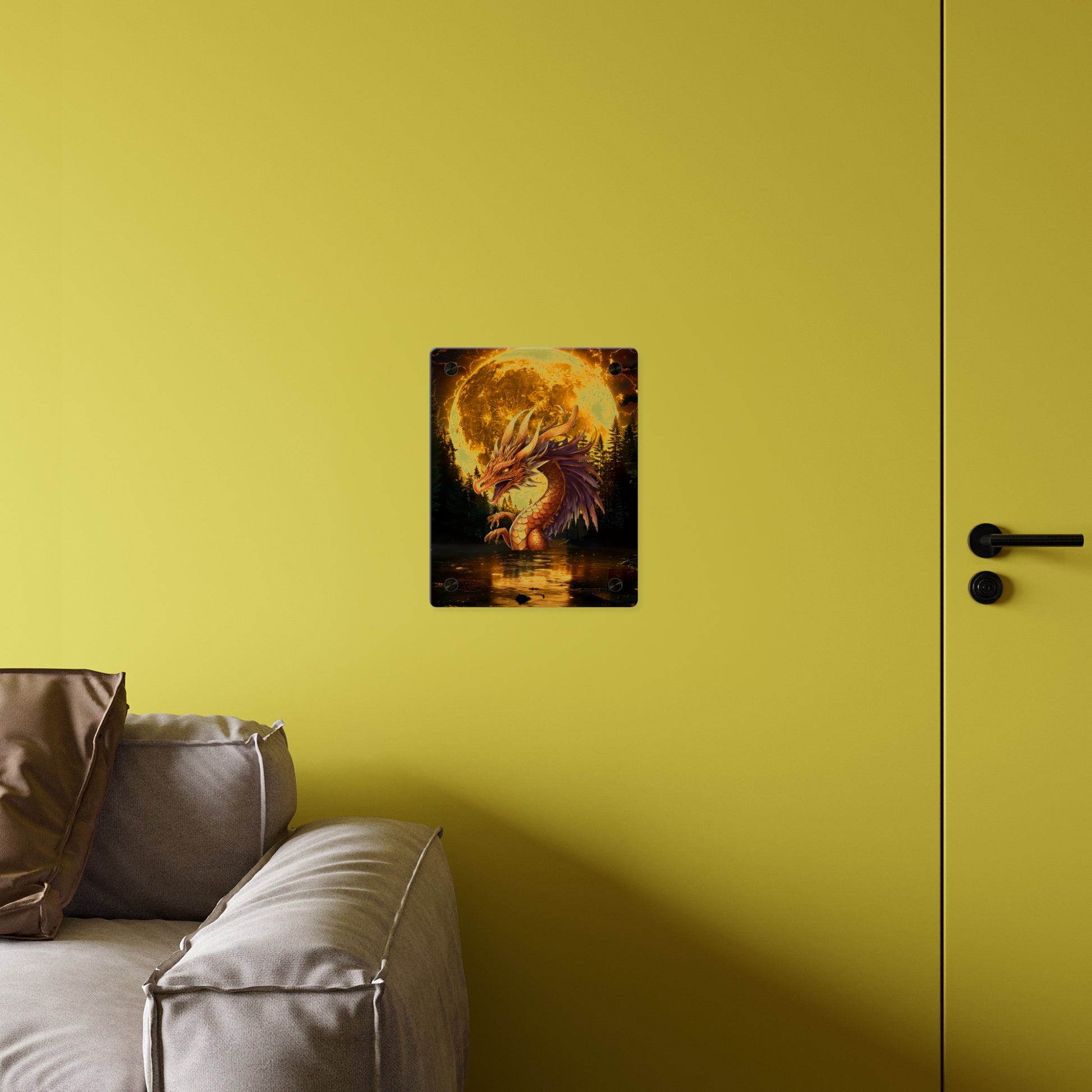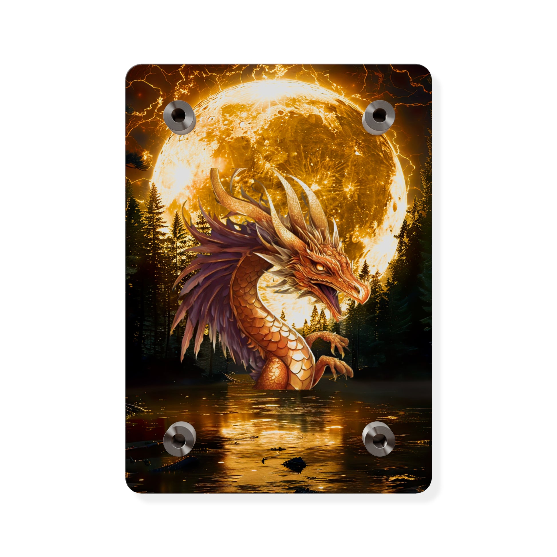 Gothic Theme Acrylic Wall Art Panel, Purple Dragon with Moon Background, Dragon Lovers, For Anyone, Accent for Any Room