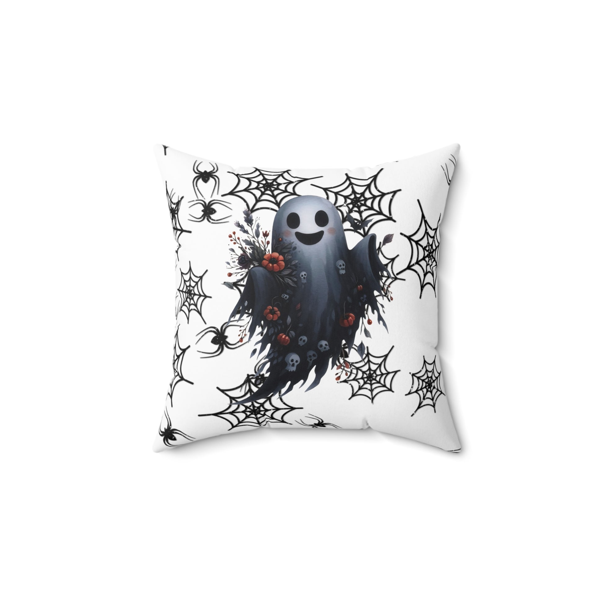Introducing a delightful and whimsical Spun Polyester Square Pillow that embodies the playful spirit of Halloween! Adorned with a cheerful ghost surrounded by intricate cobwebs, this pillow brings a fun and festive atmosphere to any space. Perfect for adding a touch of seasonal charm to your home, it effortlessly blends comfort with seasonal decor. Ideal for those who love to celebrate Halloween or decorate for fall, this pillow is a wonderful addition to your living room, bedroom, or even as a cozy touch for Halloween parties. It also makes for a delightful gift for friends and family who appreciate unique home accents that spread joy during the spooky season.