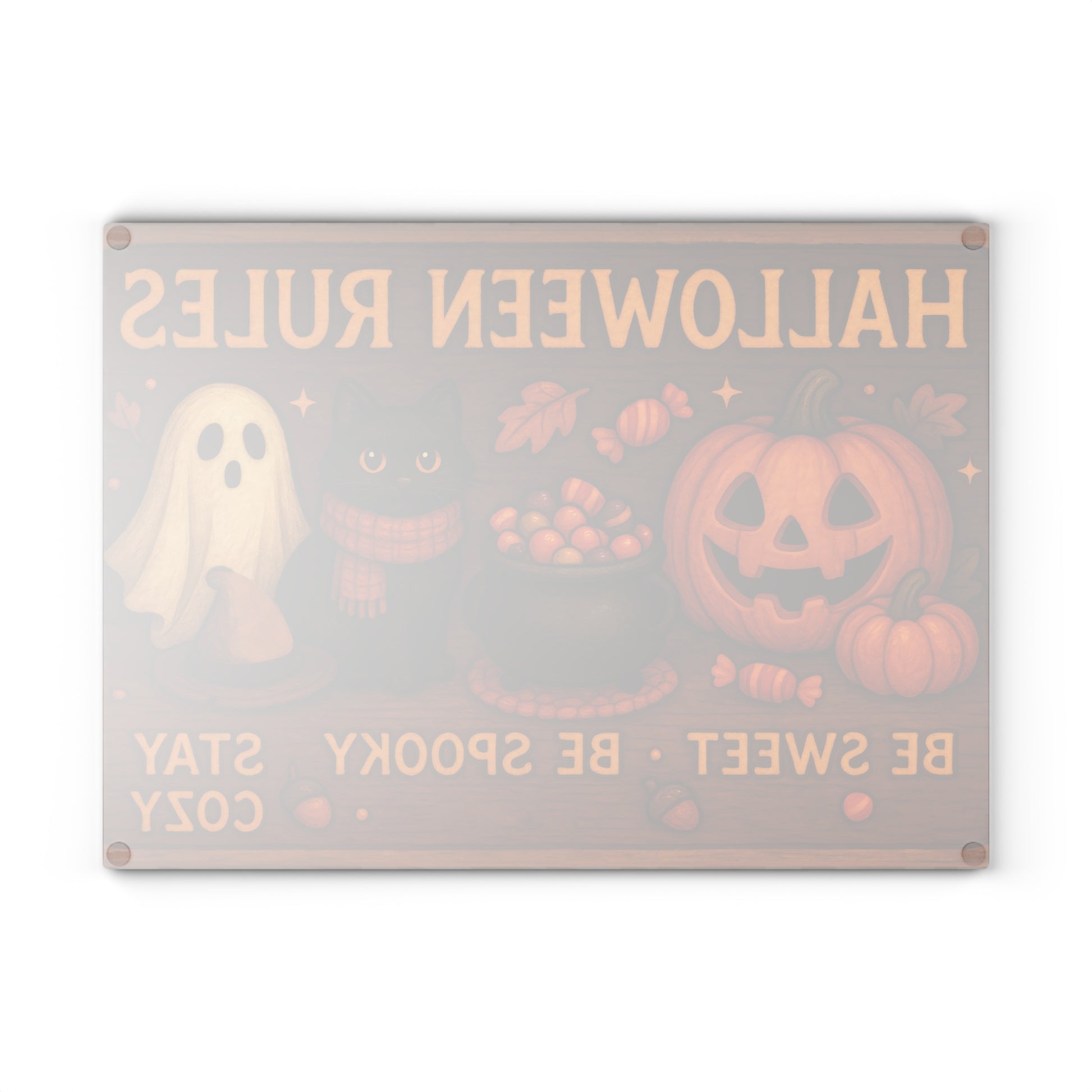 Halloween Rules Glass Cutting Board - Be Sweet, Be Spooky, Stay Cozy