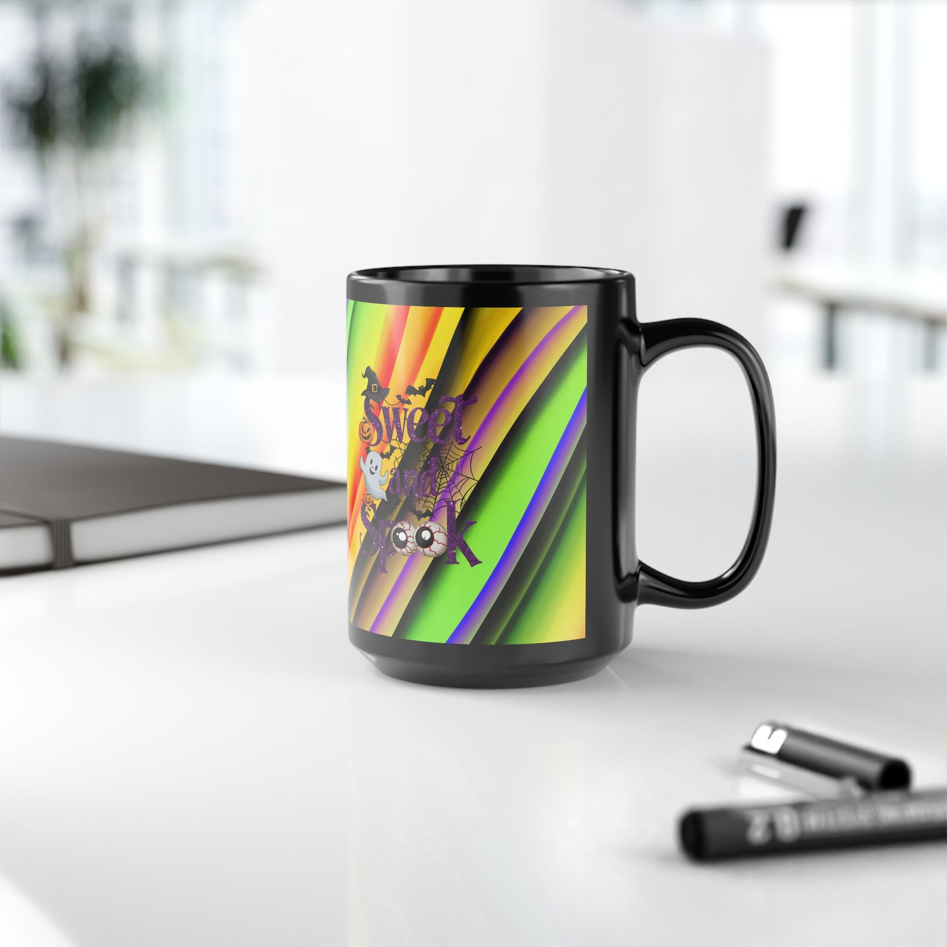 Halloween Theme Black Mug (11oz, 15oz), Cute Halloween Expression, Halloween lovers, Coffee, Tea, Hot Chocolate Lovers, Great Gift Idea for Anyone