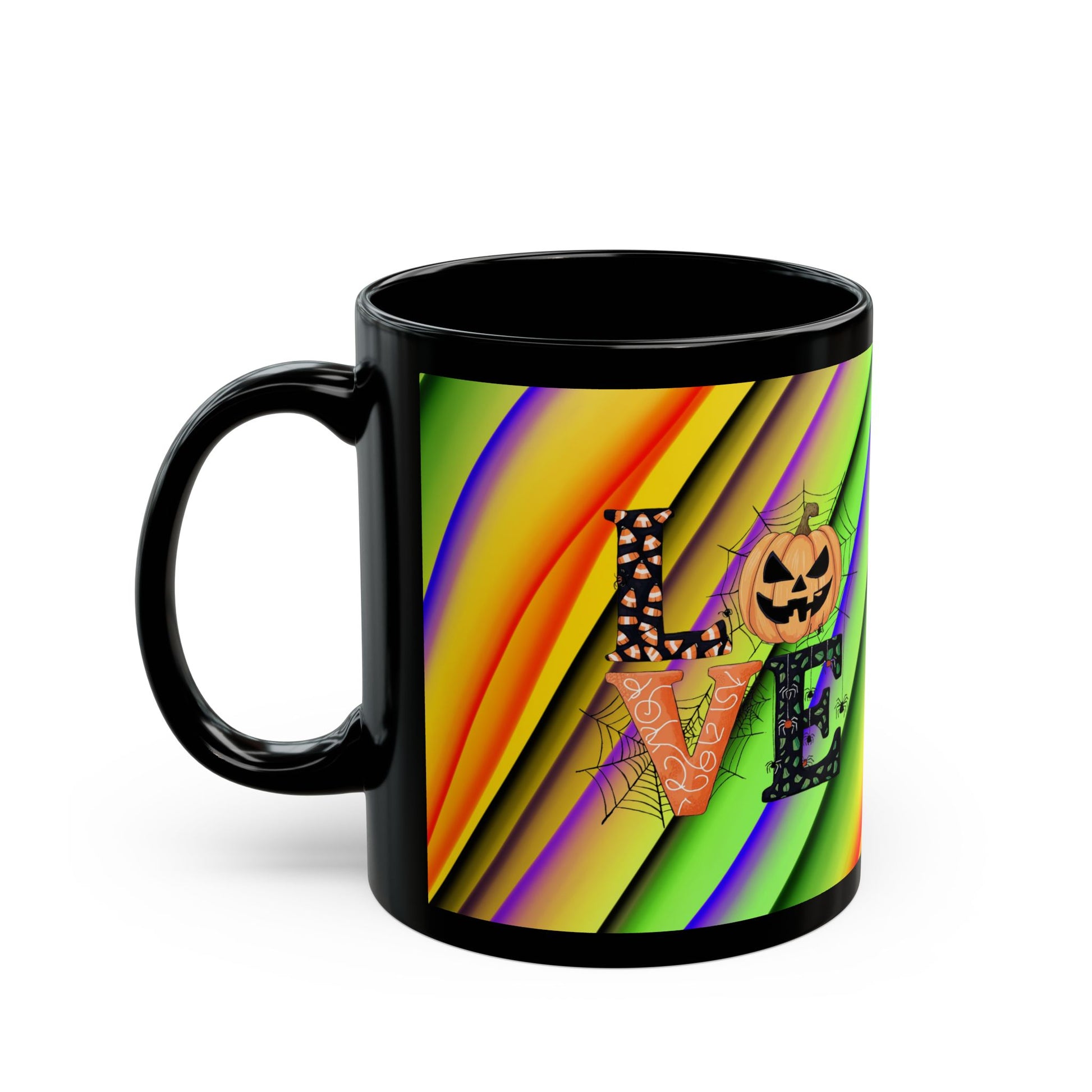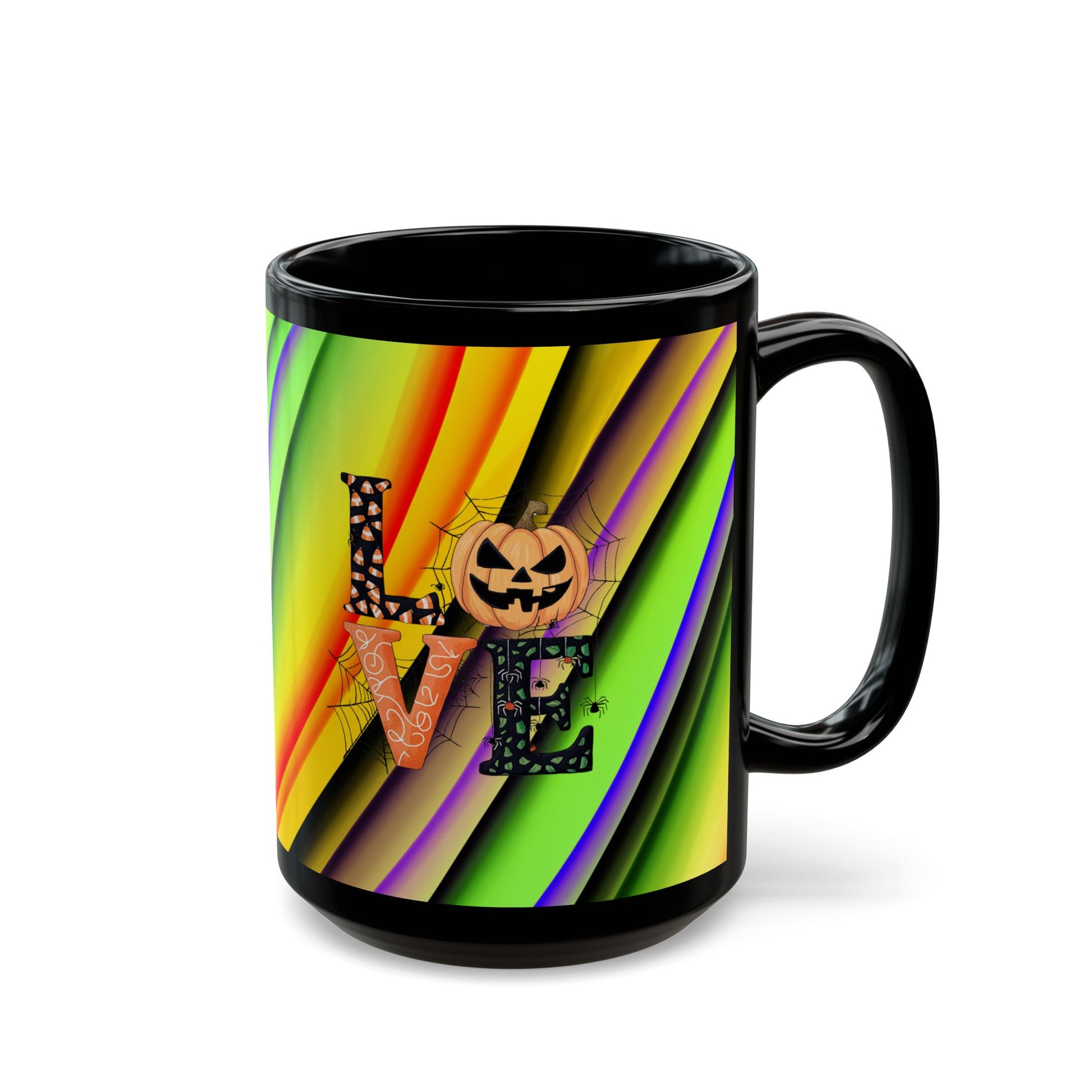 Halloween Theme Black Mug (11oz, 15oz), Cute Halloween Expression, Halloween Lovers, Coffee, Tea, Hot Chocolate Lovers, Great Gift Idea for Anyone