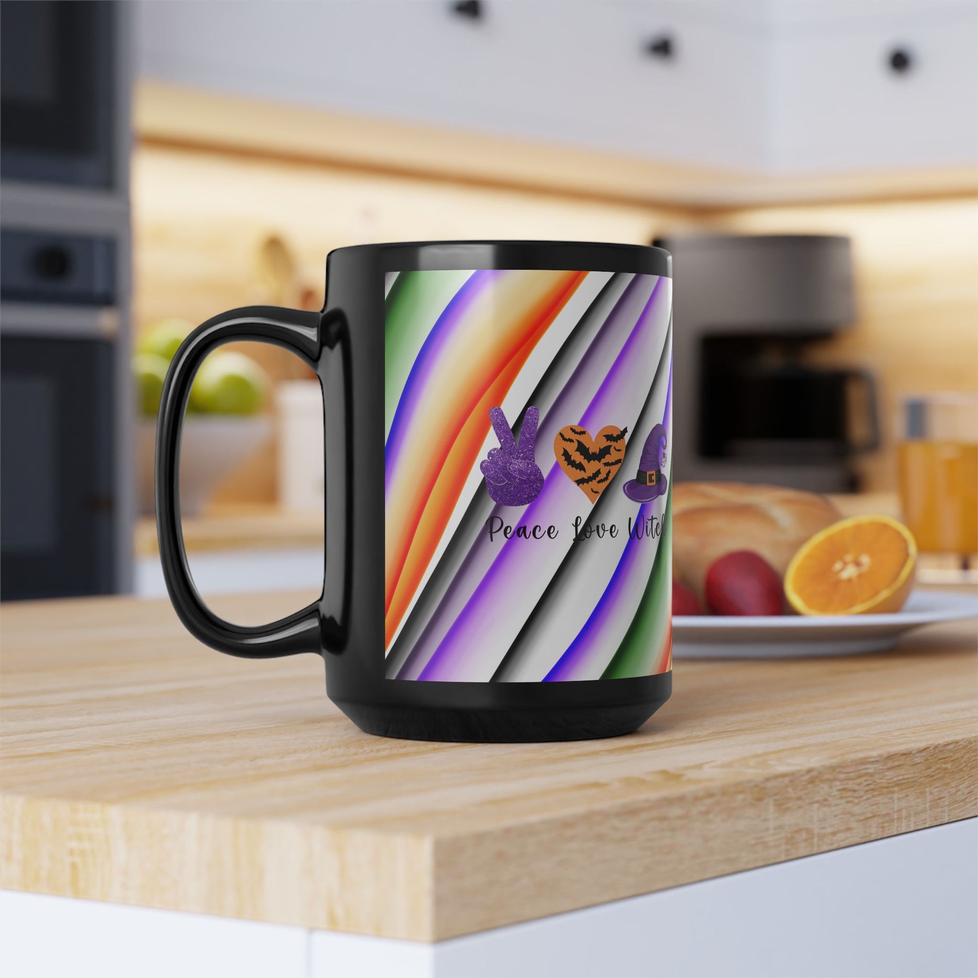 Halloween Theme Black Mug (11oz, 15oz), Peace Loving Halloween Lovers, Coffee, Tea, Hot Chocolate Lovers, Gift Idea for Any Occasion for Anyone