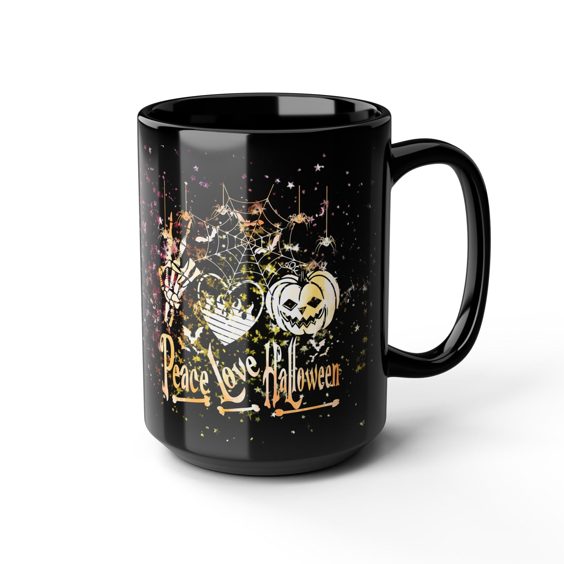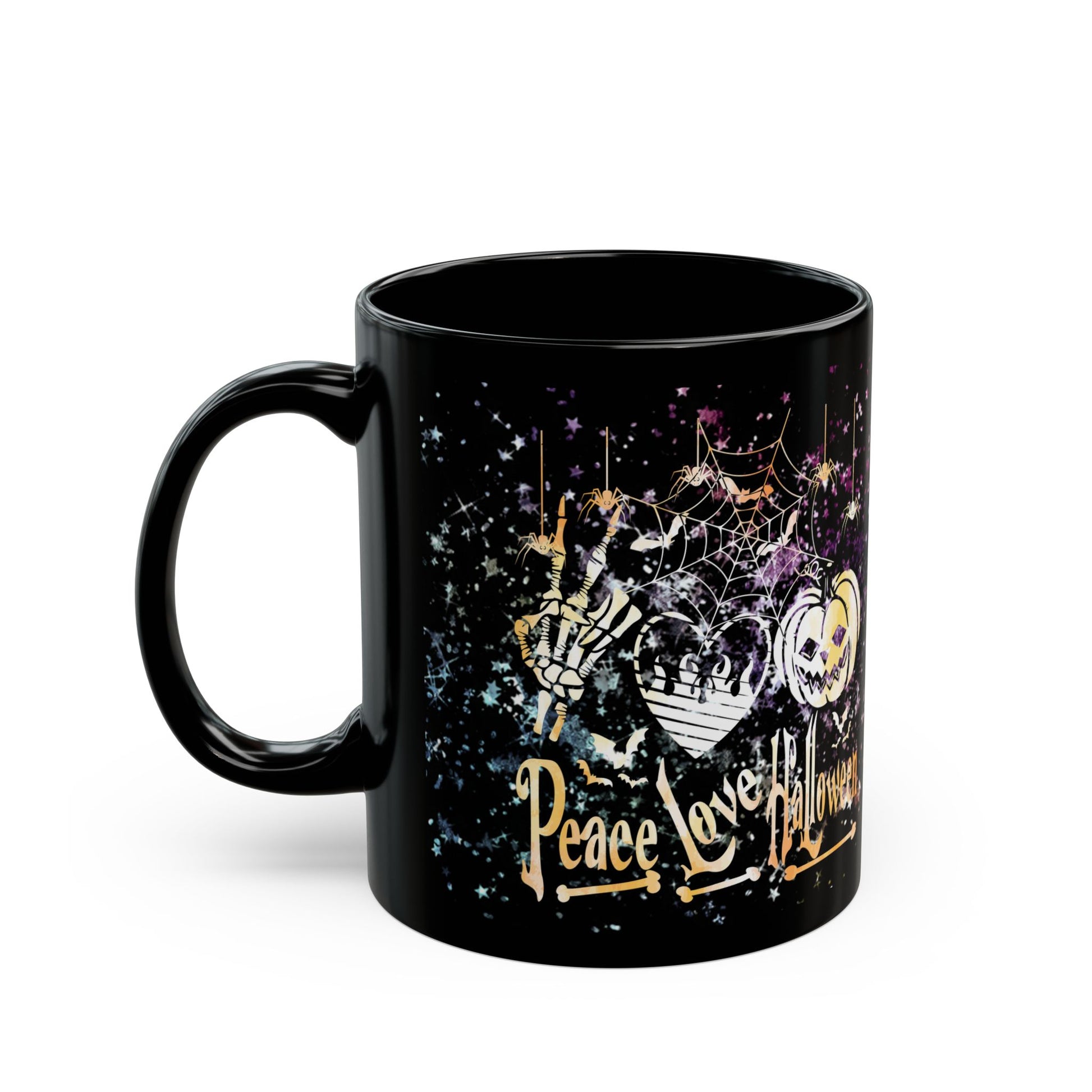 Halloween-Themed Black Mug | Peace Love Halloween Design, Spooky Coffee Cup, Fall Gift, Haunted House Decor, October Celebration