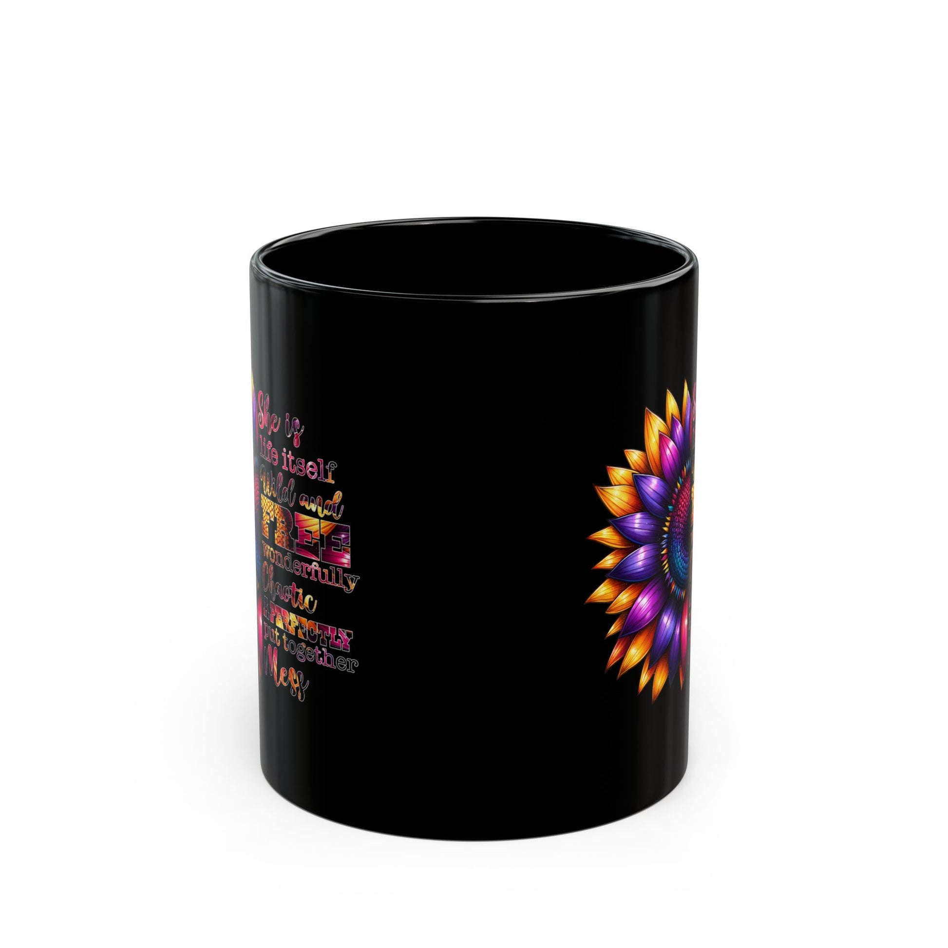 Inspirational Black Mug with Colorful Flower Design - Perfect Gift for Women