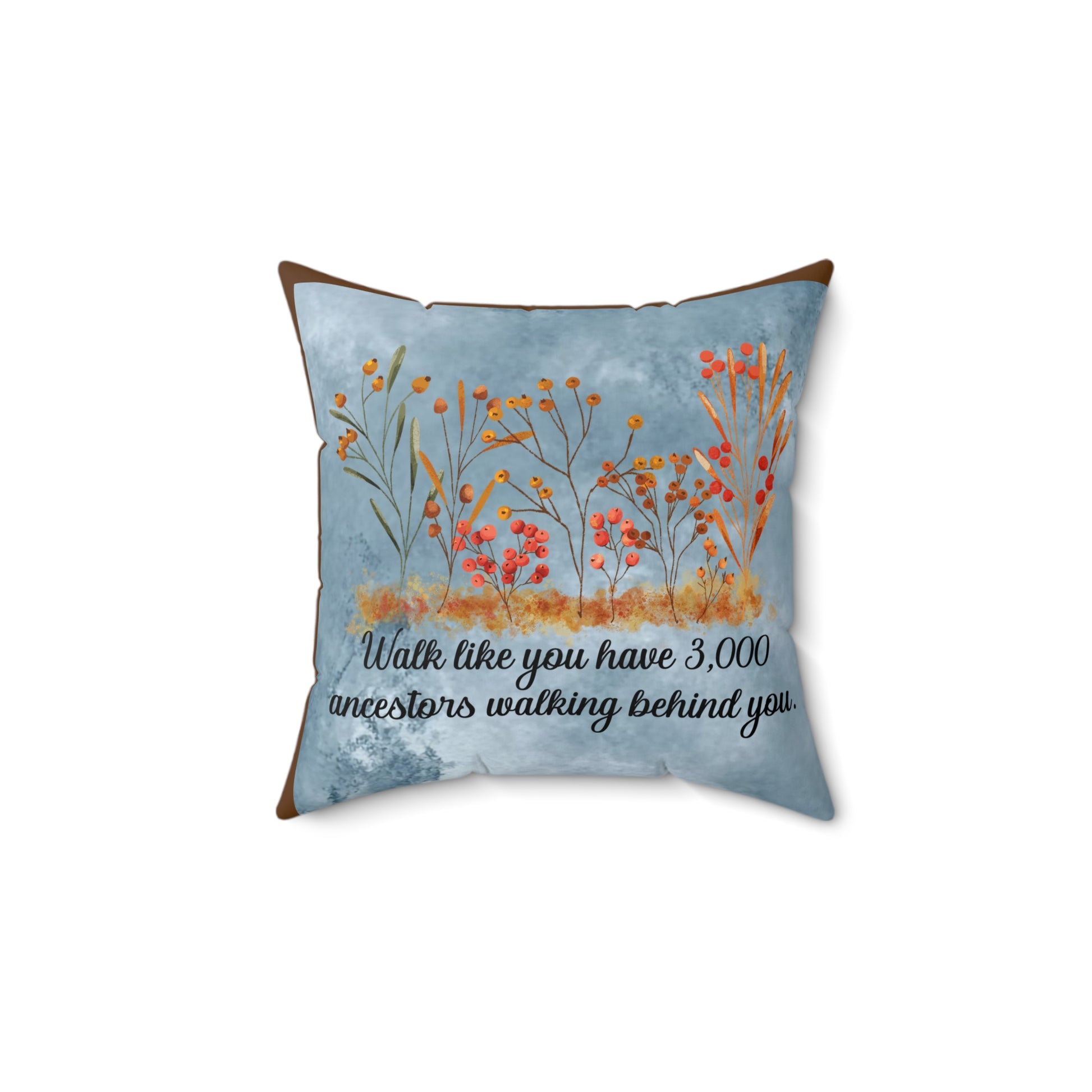Enhance your living space with this charming spun polyester square pillow. Featuring a beautiful floral design and an inspiring quote, this pillow offers a cozy and uplifting atmosphere. Its soft textures invite relaxation, making it perfect for lounging on the couch or adding a touch of personality to your bedroom. Ideal for those who appreciate meaningful decor, this pillow fits well in homes of thoughtful individuals and nature lovers. It's a wonderful gift for housewarmings, birthdays, or any occasion that calls for a thoughtful touch. Bring warmth to your home decor while celebrating your heritage and the spirit of those who came before you.