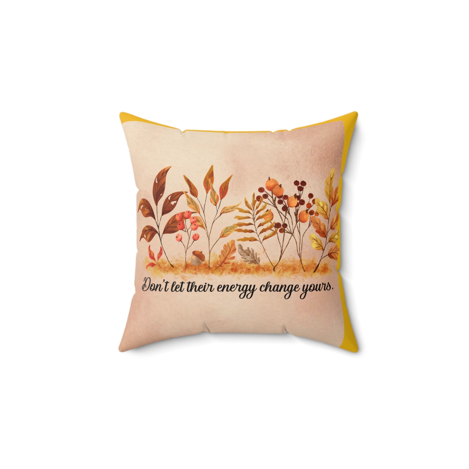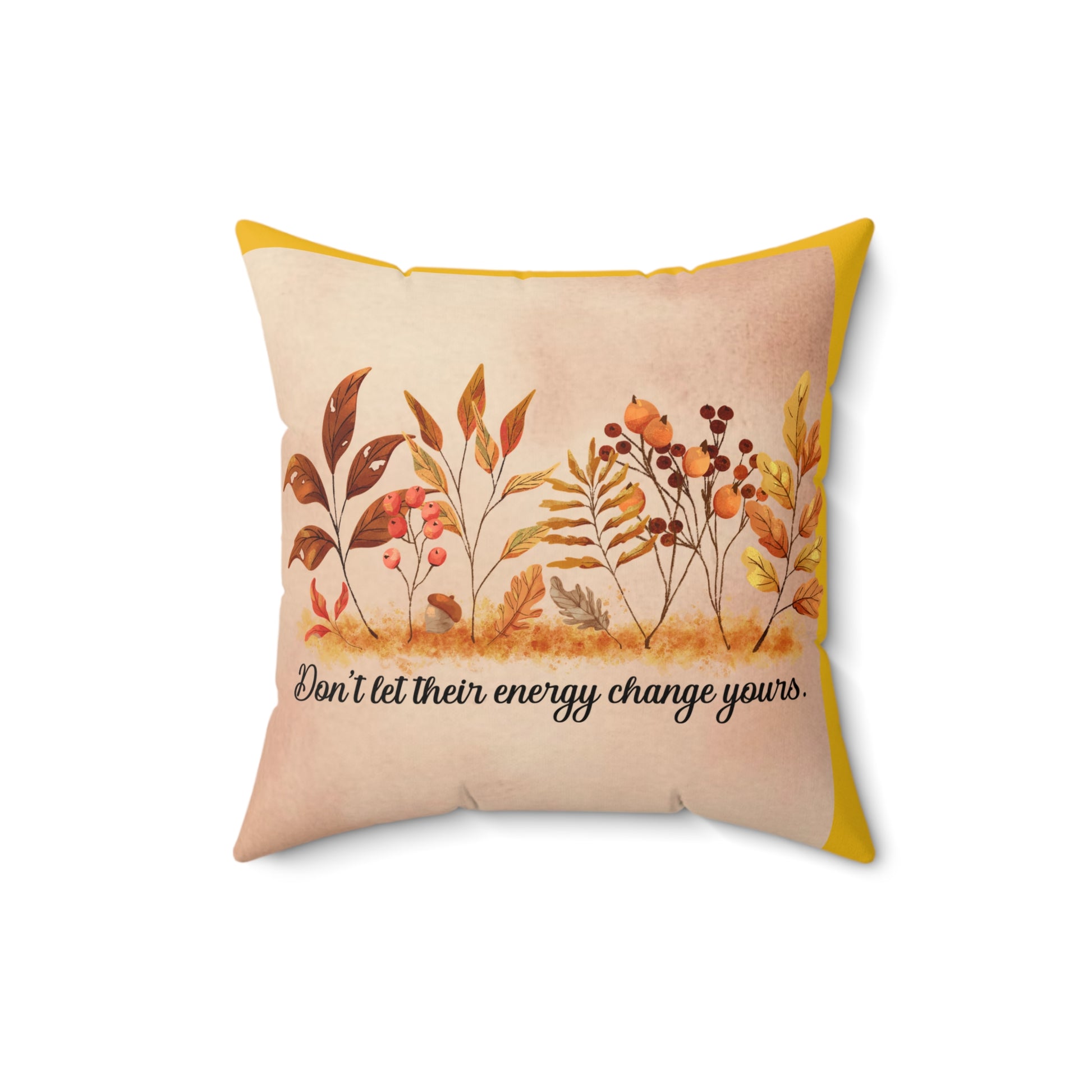 Elevate your home decor with this stylish Spun Polyester Square Pillow. Featuring a beautiful floral design paired with an empowering quote, it adds a touch of positivity and warmth to any space. The inviting vibe of this pillow makes it perfect for cozy living rooms or serene bedrooms, ensuring a calming atmosphere wherever it's placed. Ideal for those who appreciate thoughtful art and want to inspire positivity in their surroundings, this pillow is a lovely gift option for friends and family during holidays, housewarmings, or any special occasion. Whether you're decorating your home for fall festivities or simply looking to brighten up your space year-round, this unique pillow is sure to stand out.