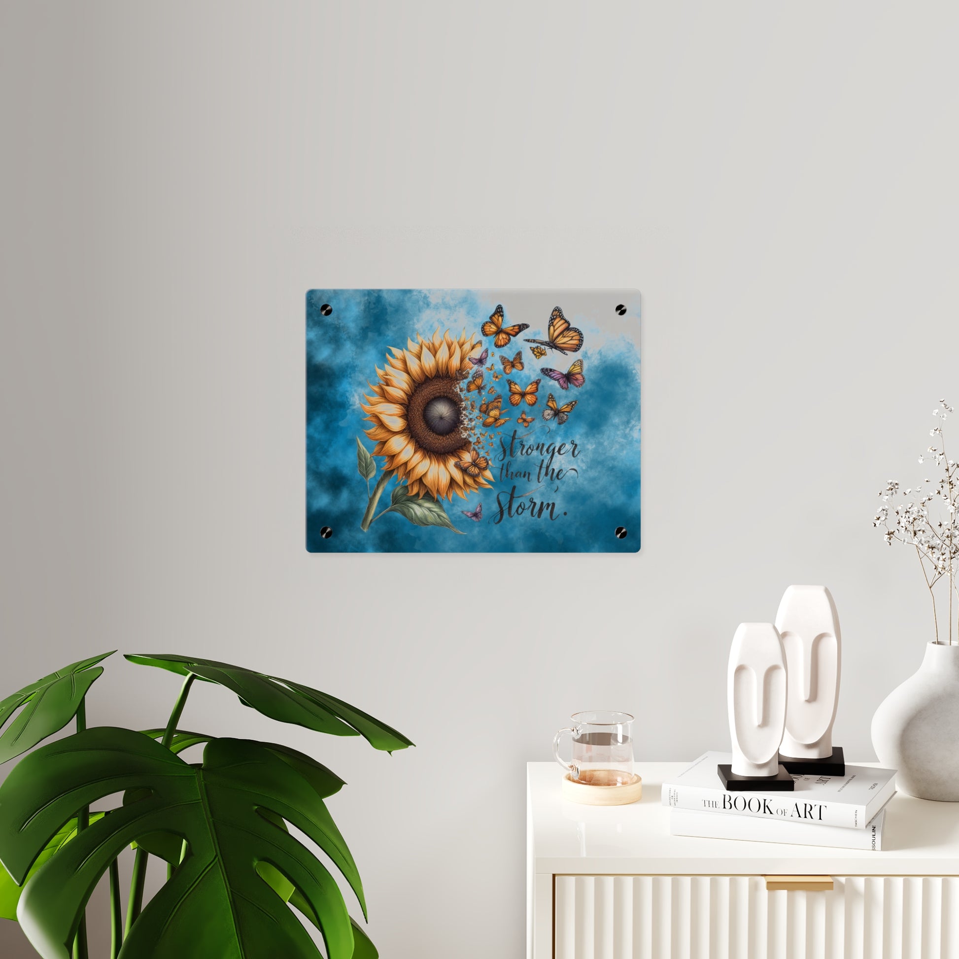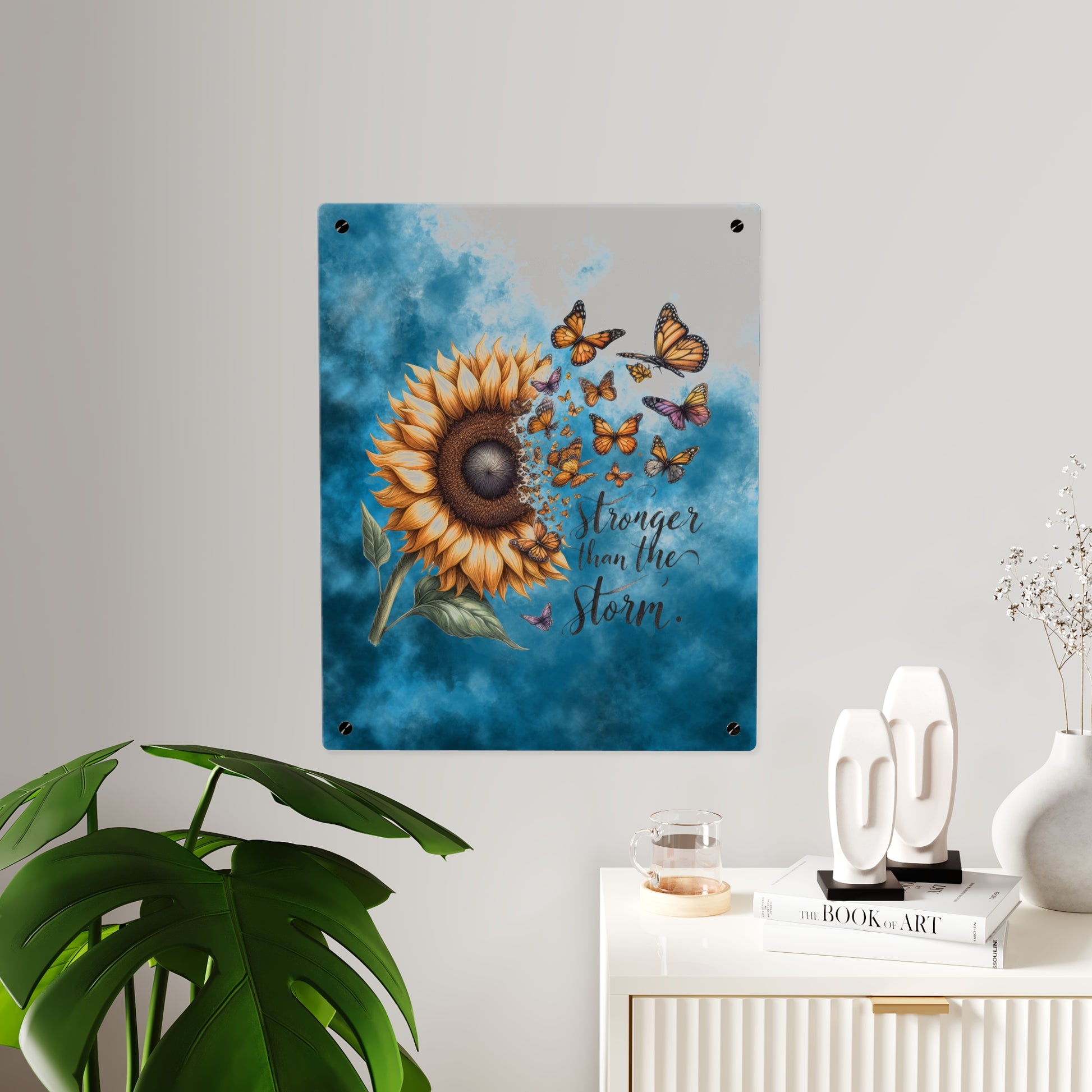 Inspirational Sunflower Acrylic Wall Art Panel - "Stronger Than The Storm"