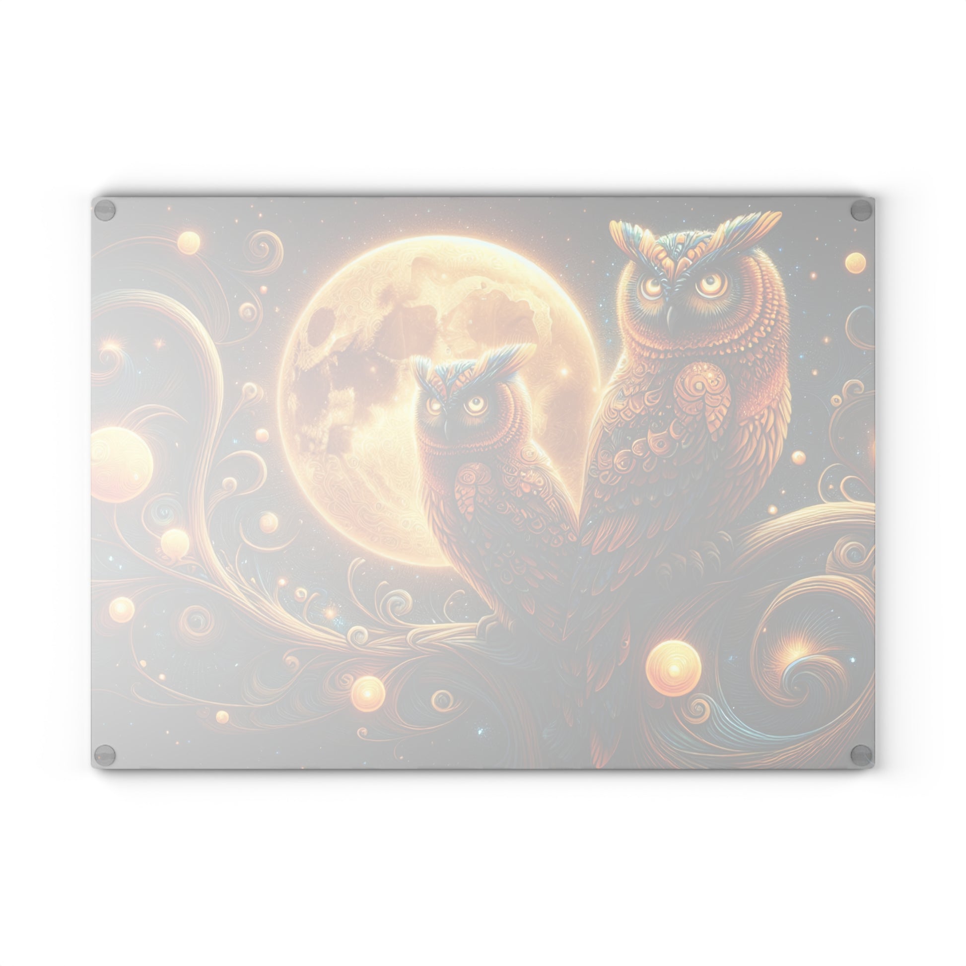 Owl Moonlit Glass Cutting Board - Artistic Kitchen Decor