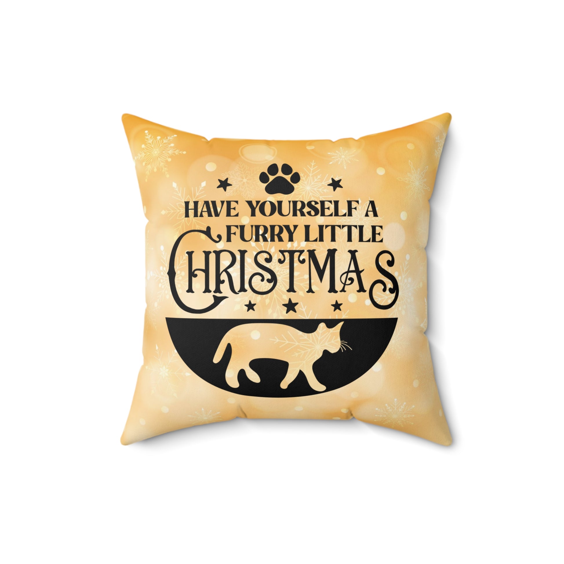 Pet Cat Christmas Theme Spun Polyester Square Pillow, Animal Lovers, CatLover's Christmas Decor, Christmas Quote Cat Accent for Home or Office