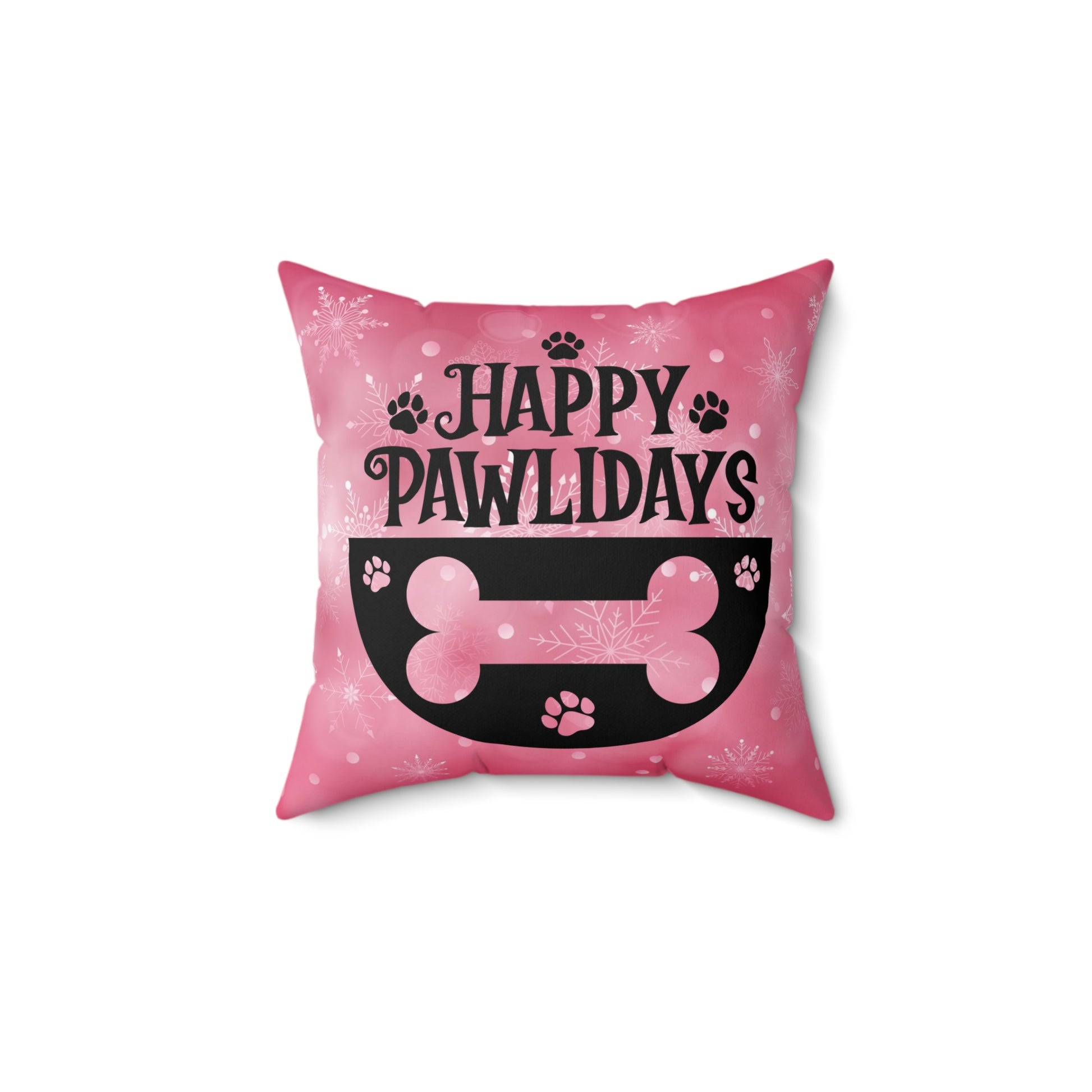 Pet Dog Holiday Theme Spun Polyester Square Pillow, Animal Lovers, Pet Dog Lover's Holiday Decor, Pet Holiday Quote, Decor for Home or Office