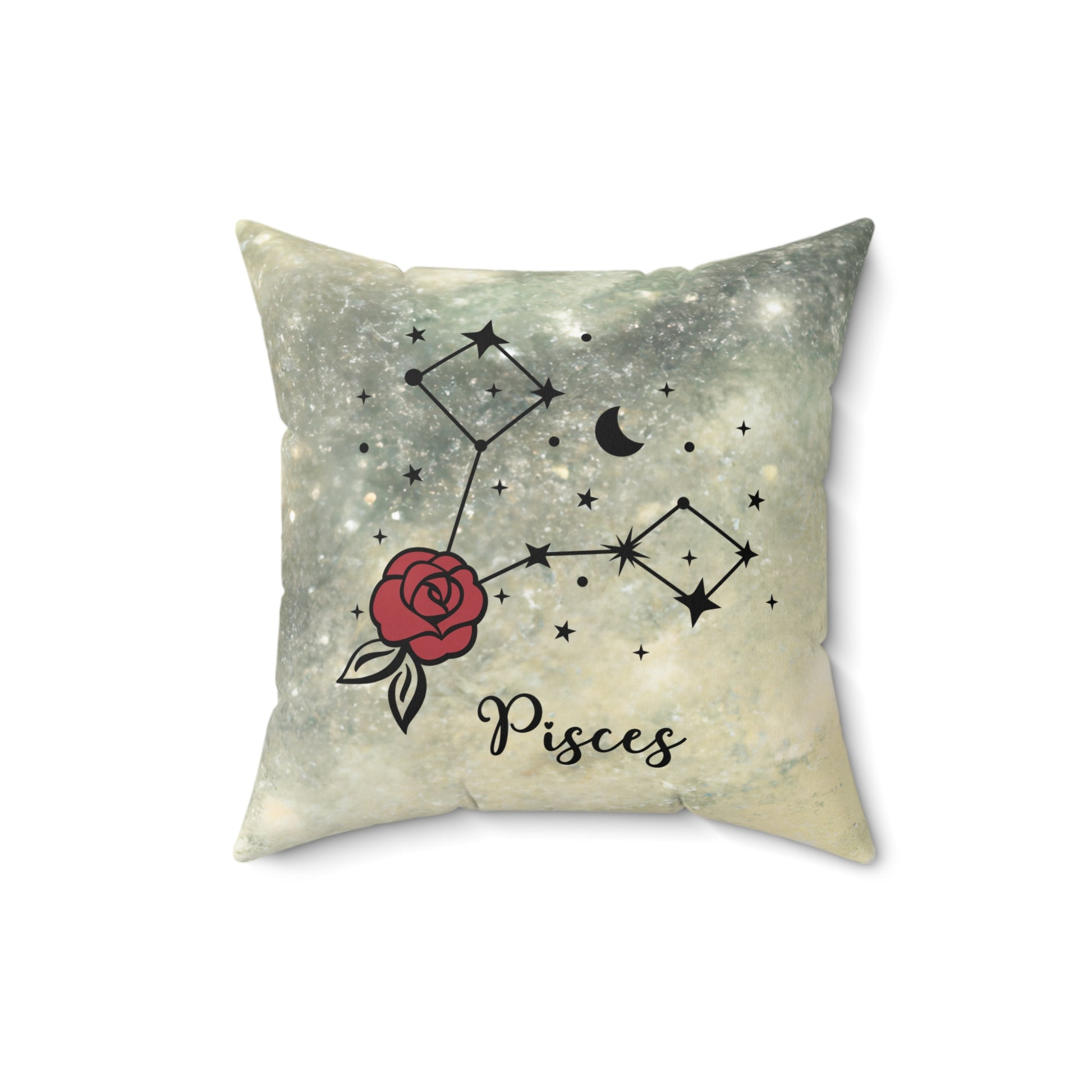 Transform your living space with this delightful throw pillow that exudes charm and personality. Featuring a whimsical design depicting the Pisces constellation intertwined with a beautiful rose, this pillow invites warmth and creativity into any room. Perfect for adding a touch of astrological flair, it fits seamlessly in cozy nooks or as a statement piece on your sofa or bed. Ideal for astrology enthusiasts, this pillow makes an excellent gift for birthdays, housewarmings, or holidays like the new year, encouraging a sense of nostalgia and connection with the cosmos. Embrace your unique style and express your identity with this enchanting piece!