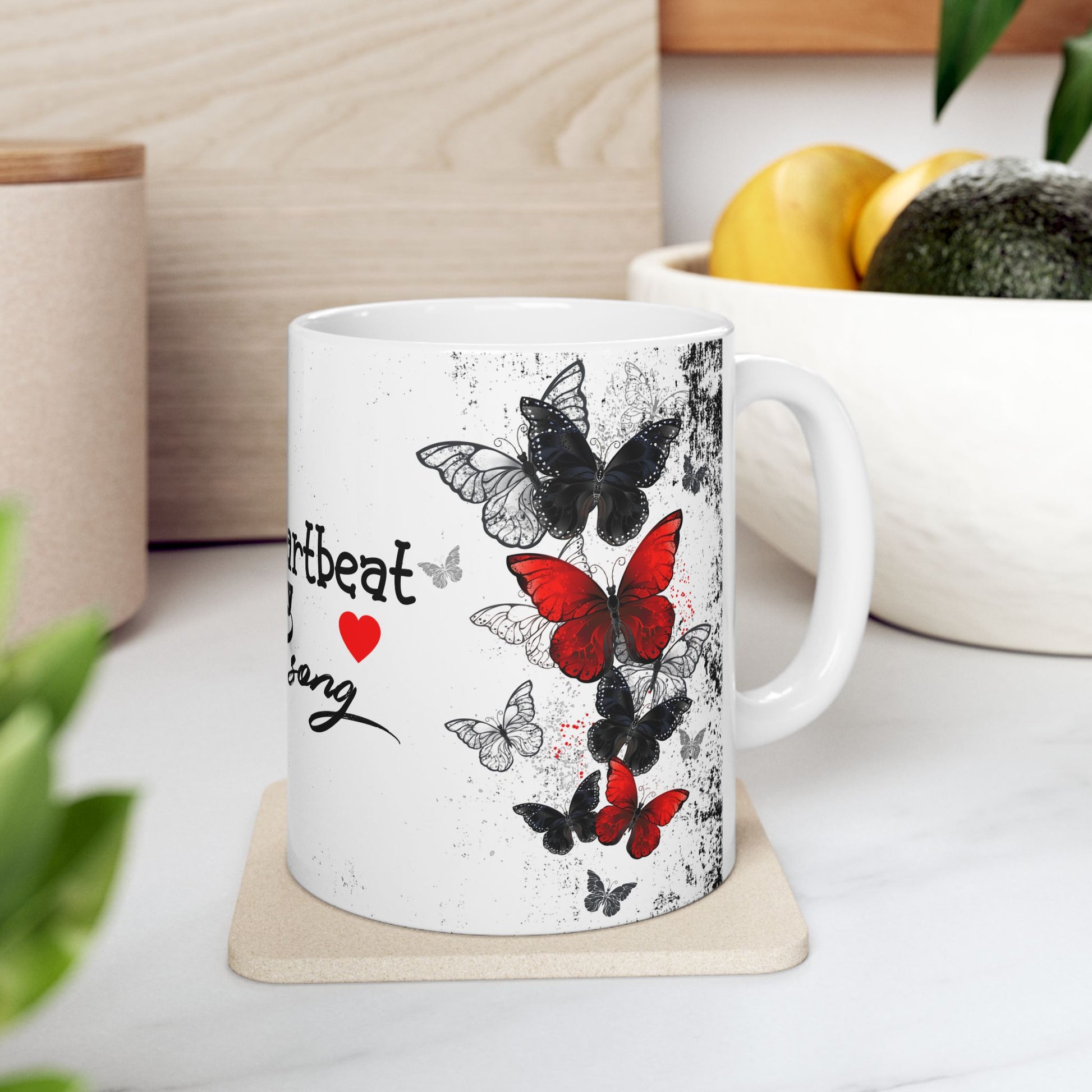 Romantic Heartbeat With Butterflies Ceramic Mug – “Your Heartbeat Is My Favorite Song” Gift