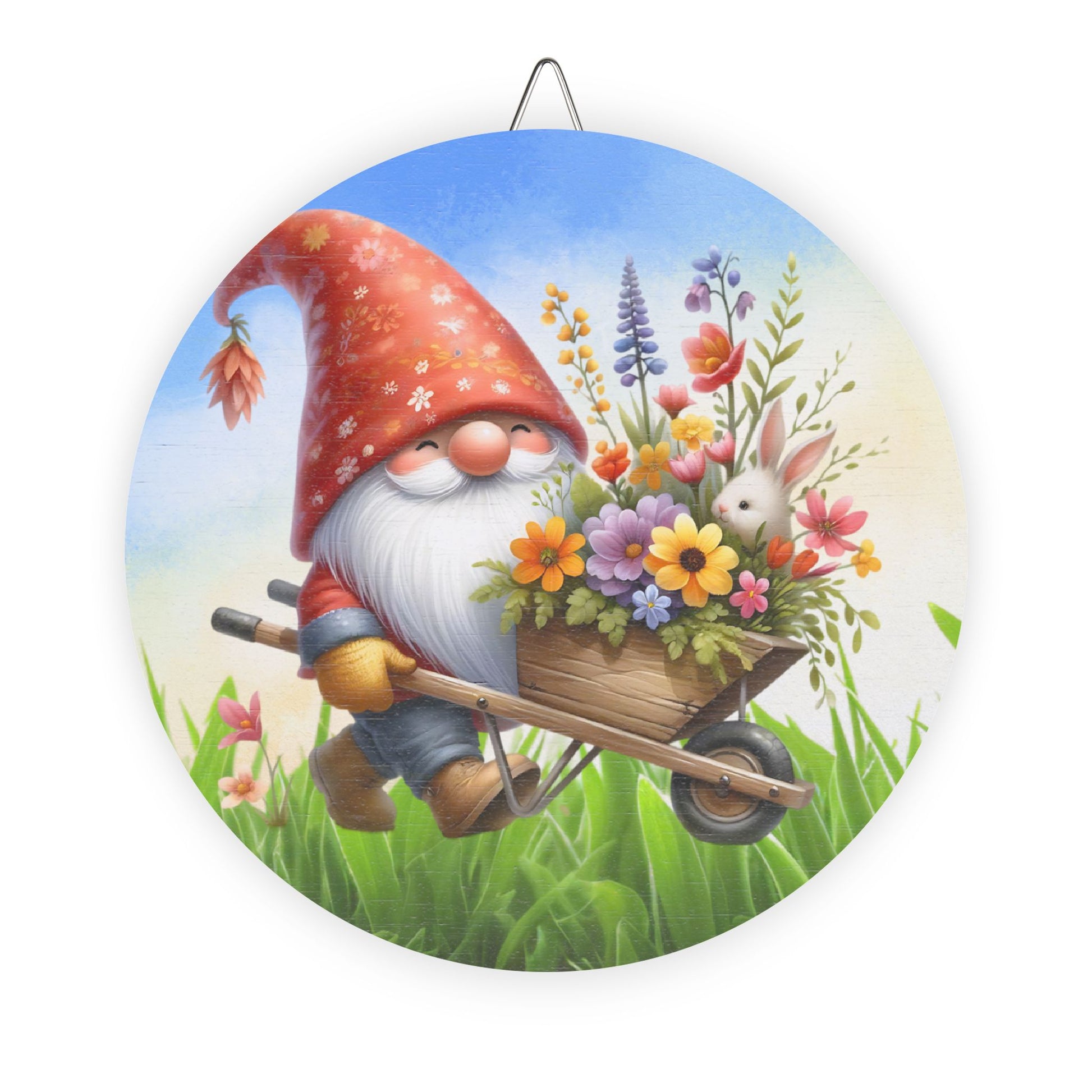 Add a touch of whimsy to your garden with this charming gnome wood sign featuring a wheelbarrow. This sign exudes a playful and magical vibe, perfect for garden enthusiasts and those who love unique decor. Ideal for decorating your garden, patio, or outdoor space. Relevant for spring, summer, gardening enthusiasts, and those who love gnomes.