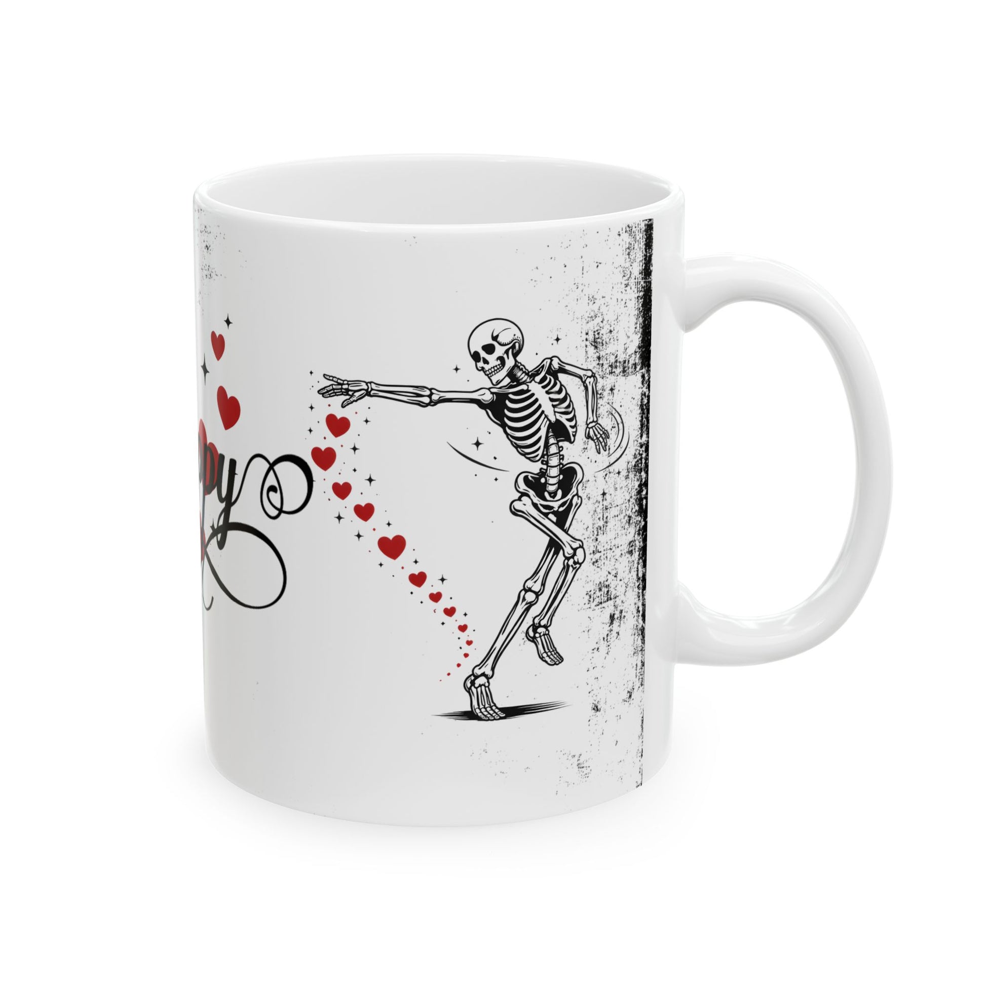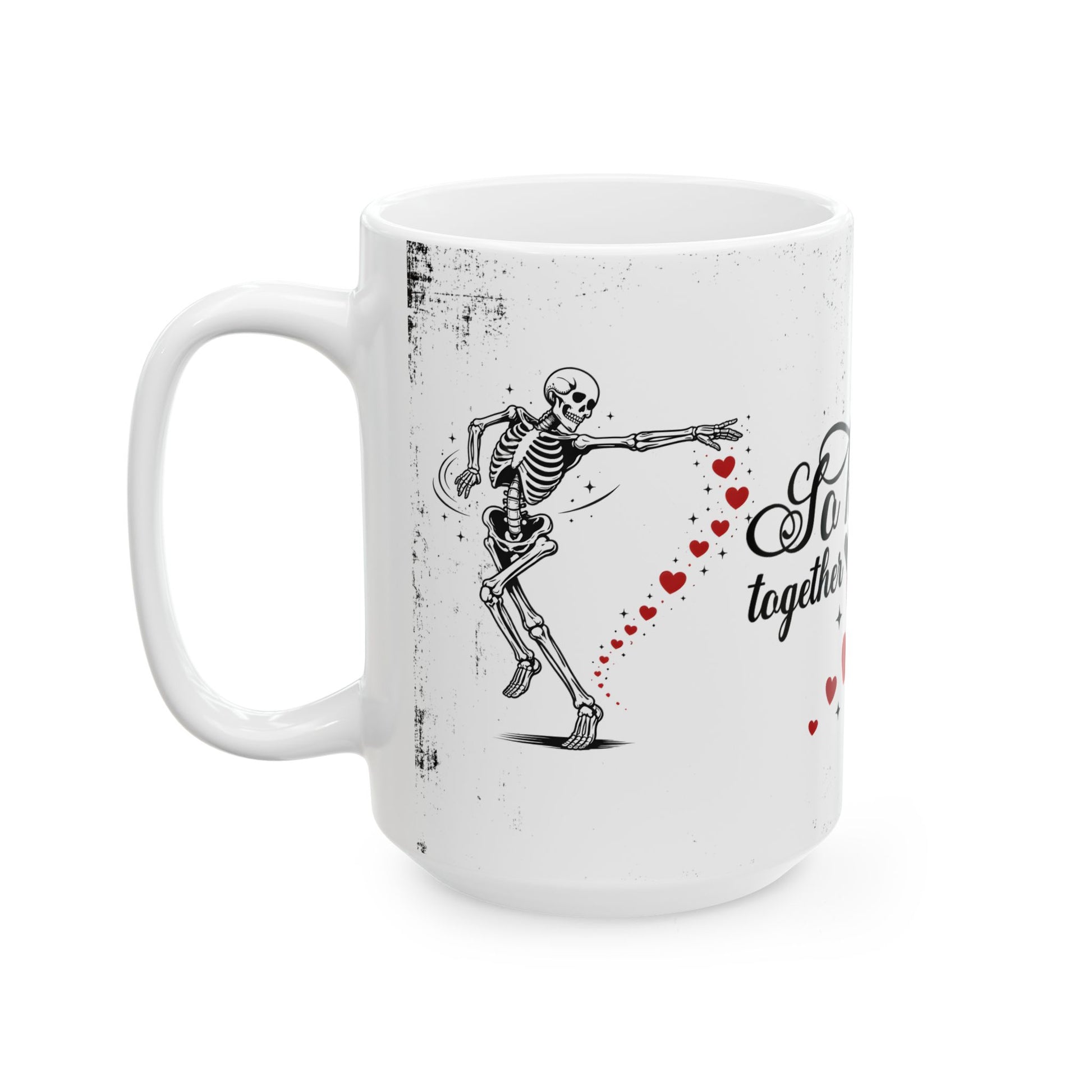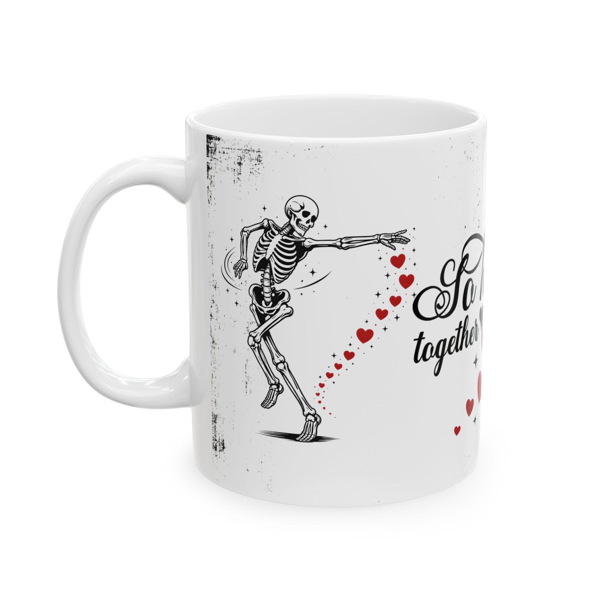 Mug — “So Happy Together” Romantic Skeleton Ceramic Coffee Mug with Hearts (11oz & 15oz)