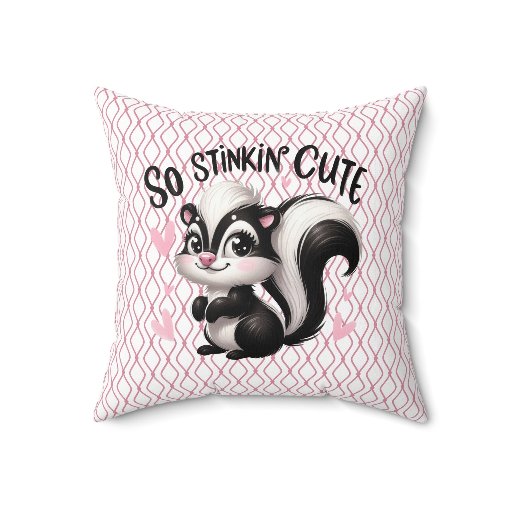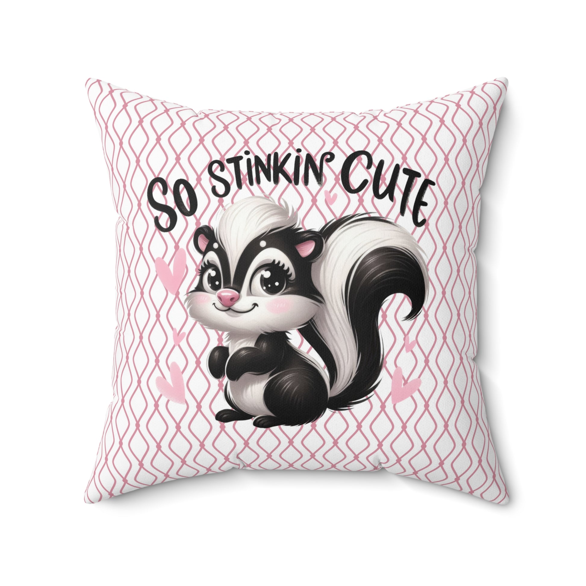 Add a fun and whimsical touch to your home decor with this charming square pillow. Featuring an adorable skunk illustration, this pillow effortlessly brings a playful vibe to any room. Perfect for brightening up a cozy living space, it invites smiles and complements a variety of styles, from playful kid's rooms to casual living areas. Ideal for animal lovers, this pillow makes a delightful gift for birthdays, housewarming parties, or holidays like Easter and Valentine's Day. Enhance your decor with this lovely piece that not only looks great but also feels inviting!