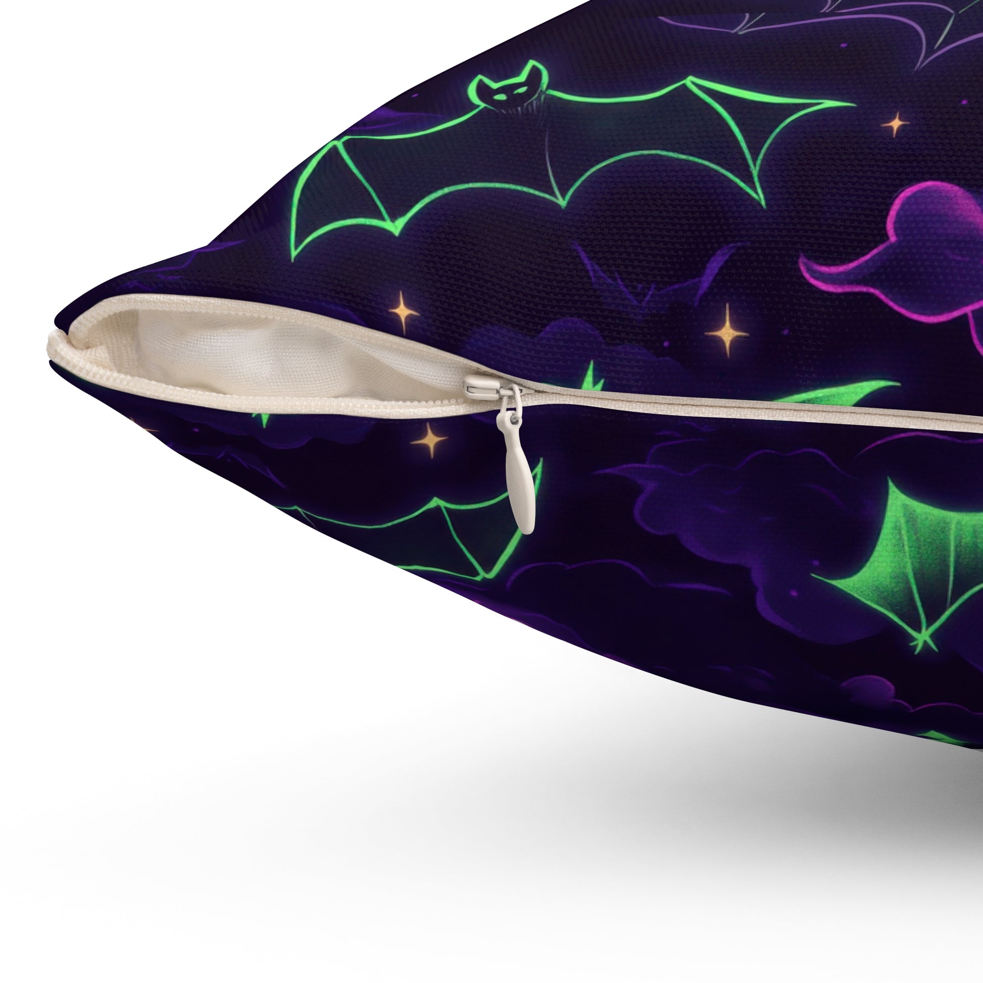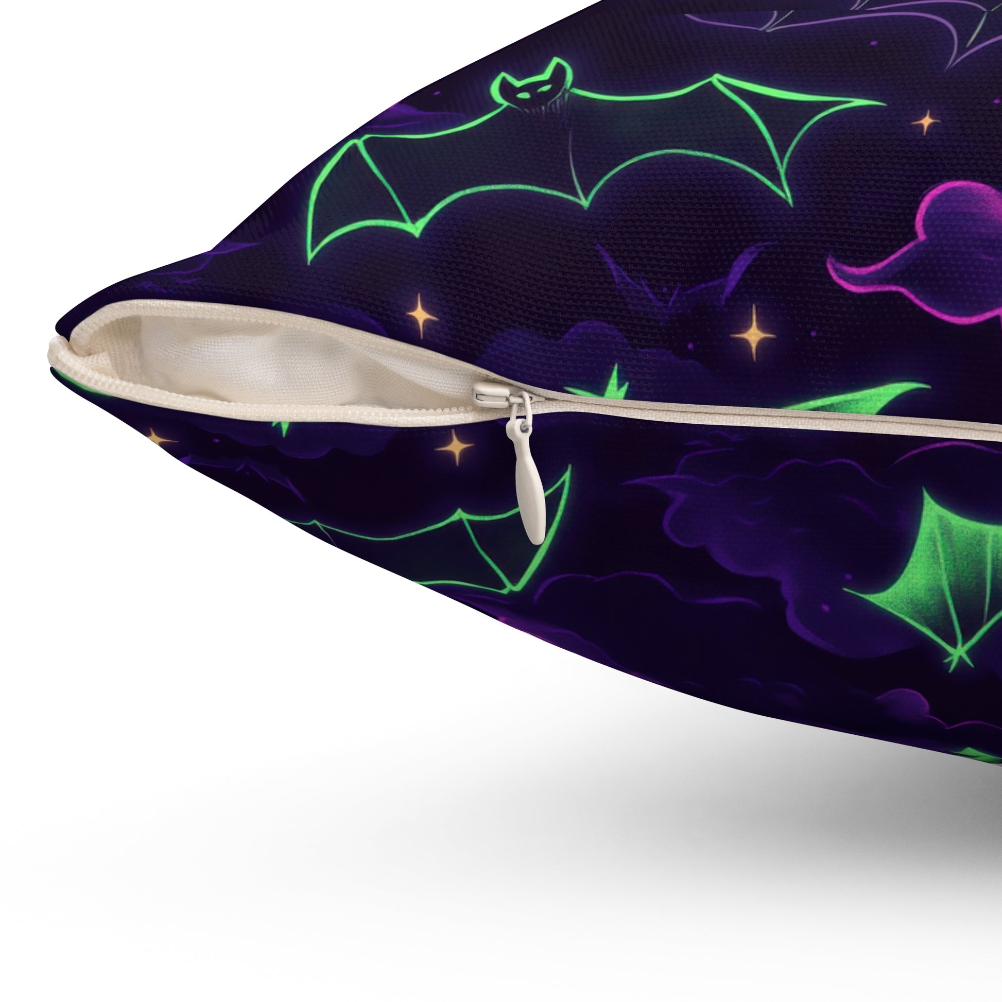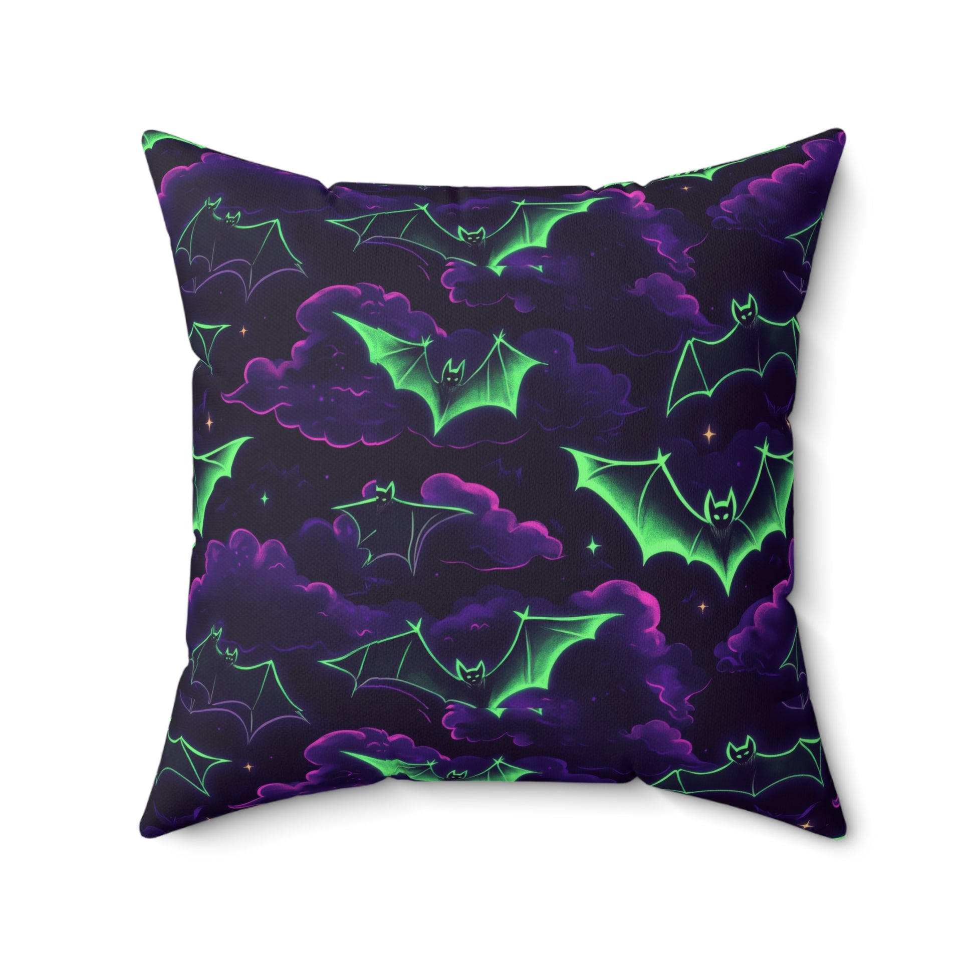 Transform your living space with this enchanting Spun Polyester Square Pillow, designed to bring a cozy and whimsical vibe to any room. Adorned with a playful bat and cloud pattern in vibrant hues, it adds a touch of fun and creativity to your decor. Perfect for those who love unique accents, this pillow is ideal for Halloween decor, spooky-themed parties, or simply adding charm to your couch or bed year-round. Gift it to friends who adore all things whimsical or use it yourself to celebrate the spooky season!