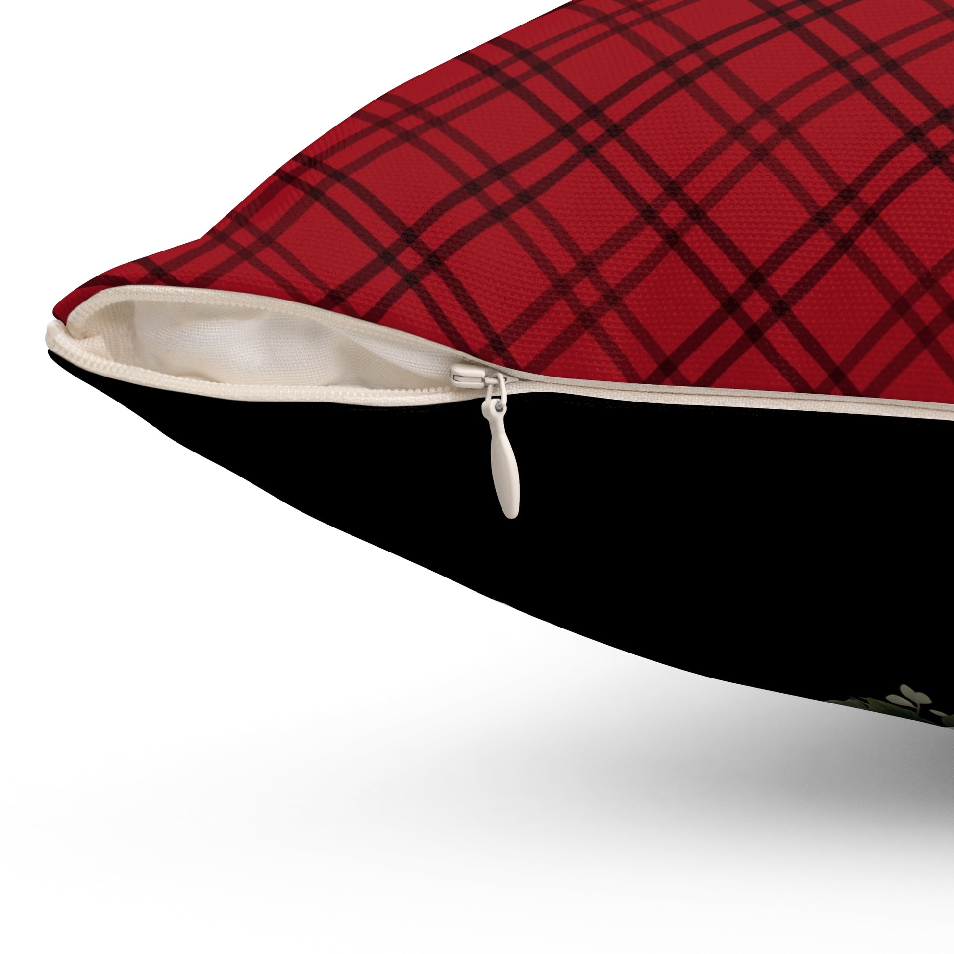 Spun Polyester Square Pillow - Christmas Plaid Heart Floral Design Accent Pillow, Holiday Decor for Any Room for Home or Office
