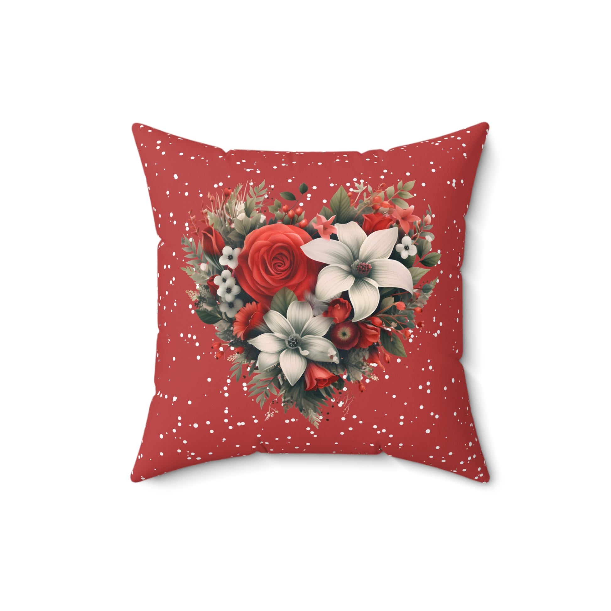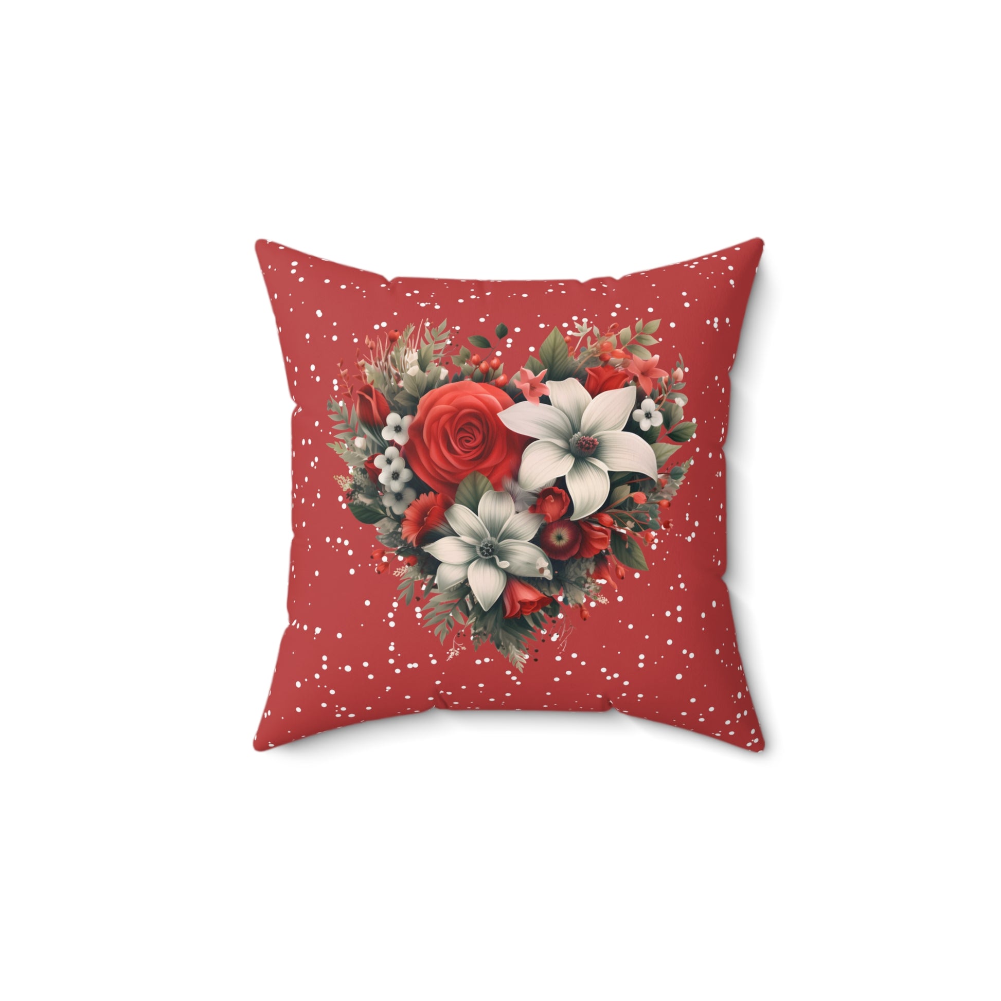 Spun Polyester Square Pillow features a Heart Shape Christmas Floral Design on One Side, Beautiful Accent for Home or Office