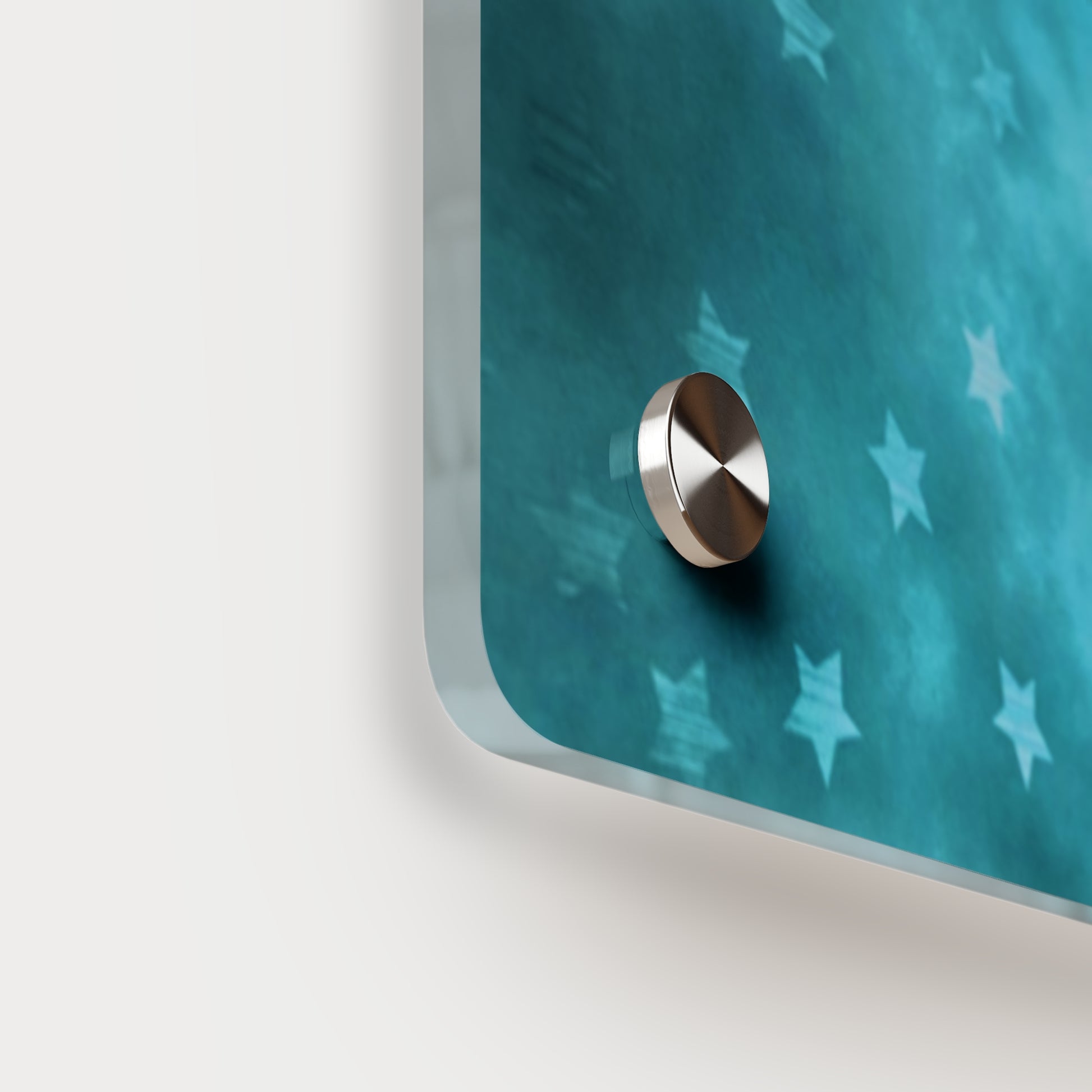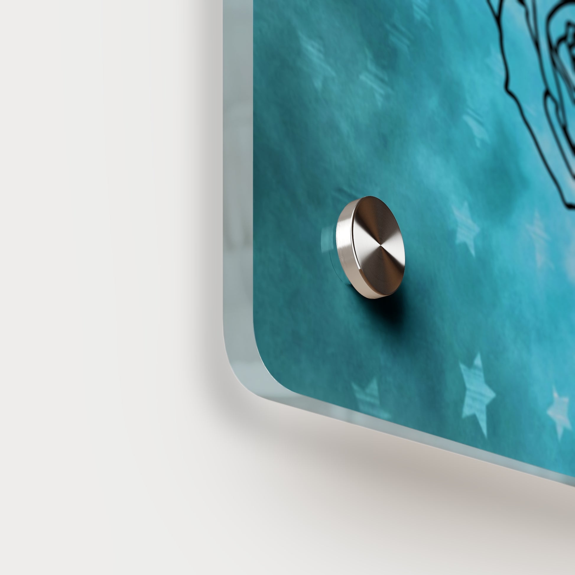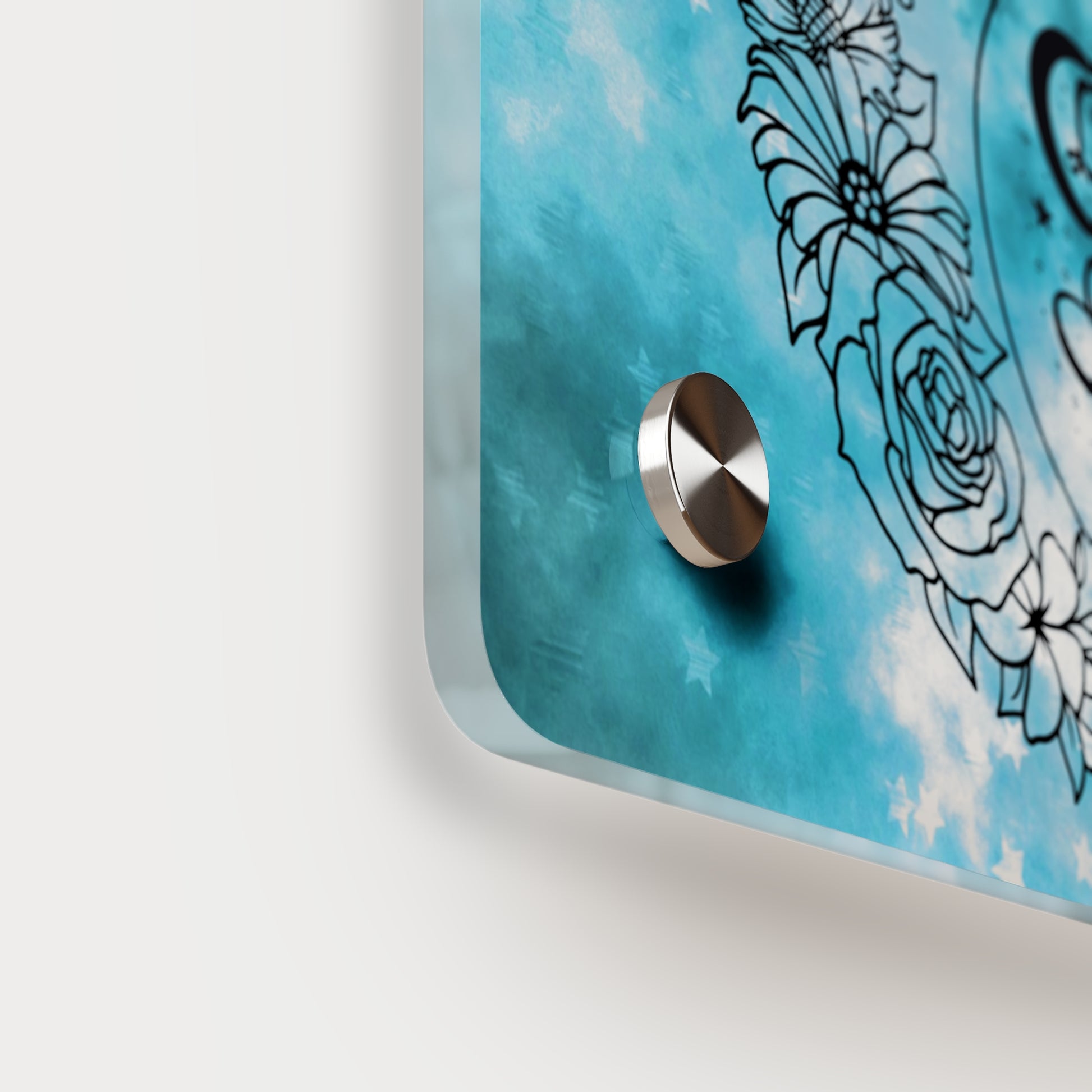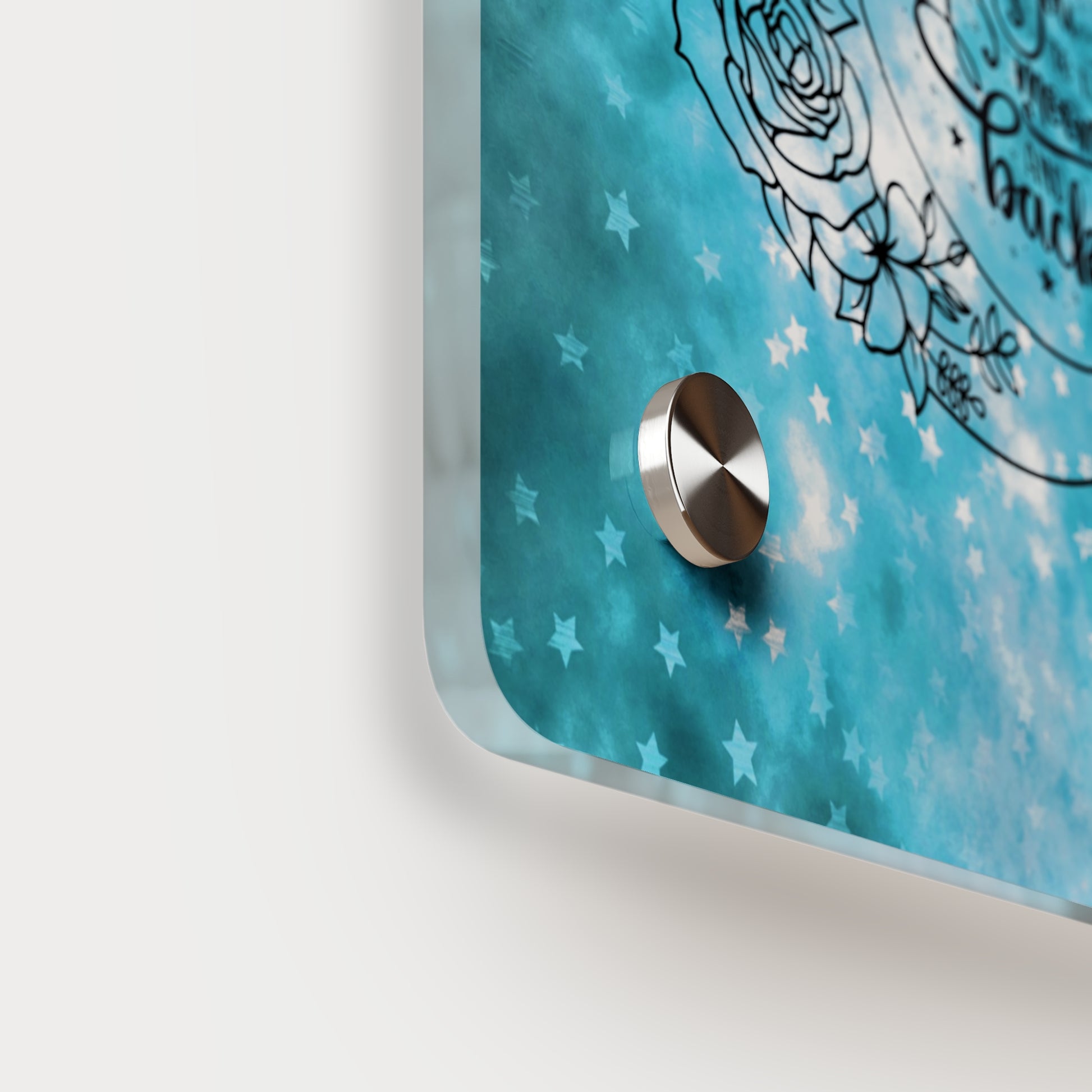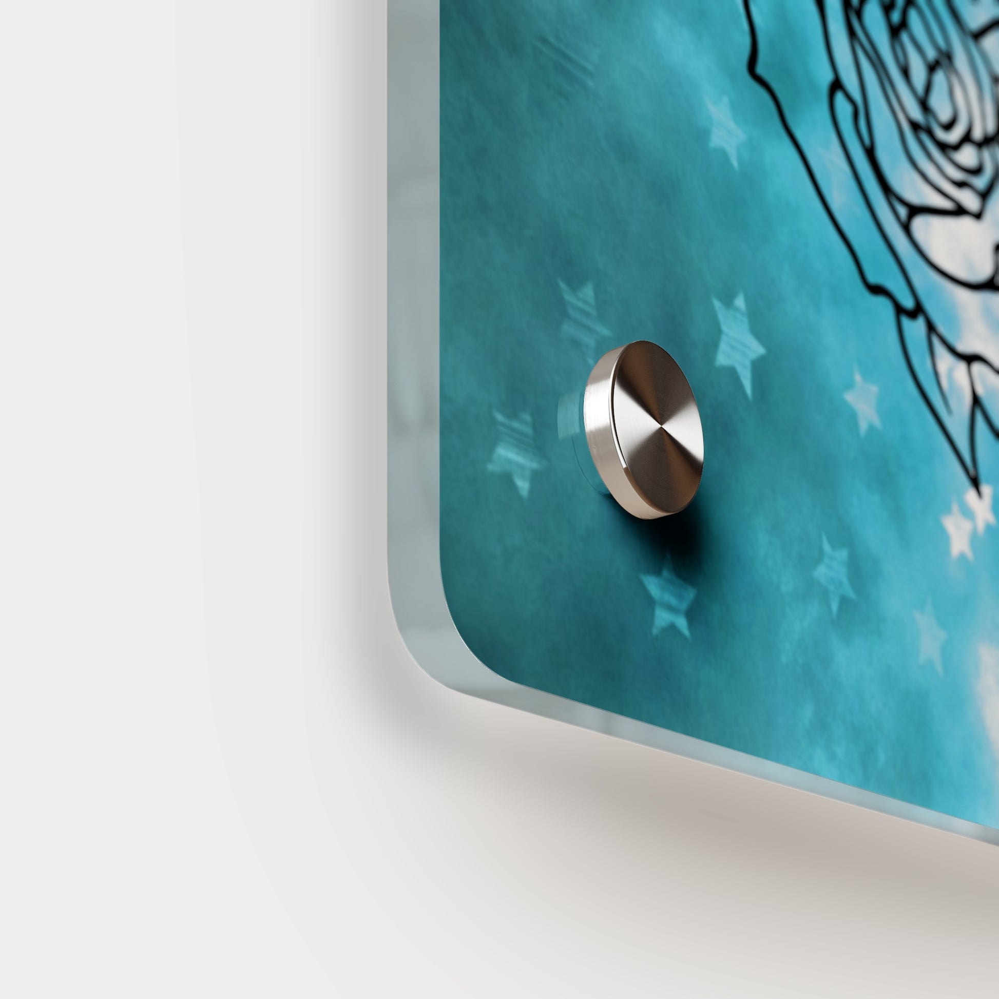 Acrylic art panels are a modern way to display beautiful and vibrant art that looks like it's embedded in clear glass. They have a clear, glossy acrylic surface and a white vinyl backing. Four silver stand-offs make it very easy to mount to the wall. Horizontal 7"x5" panel orientation.